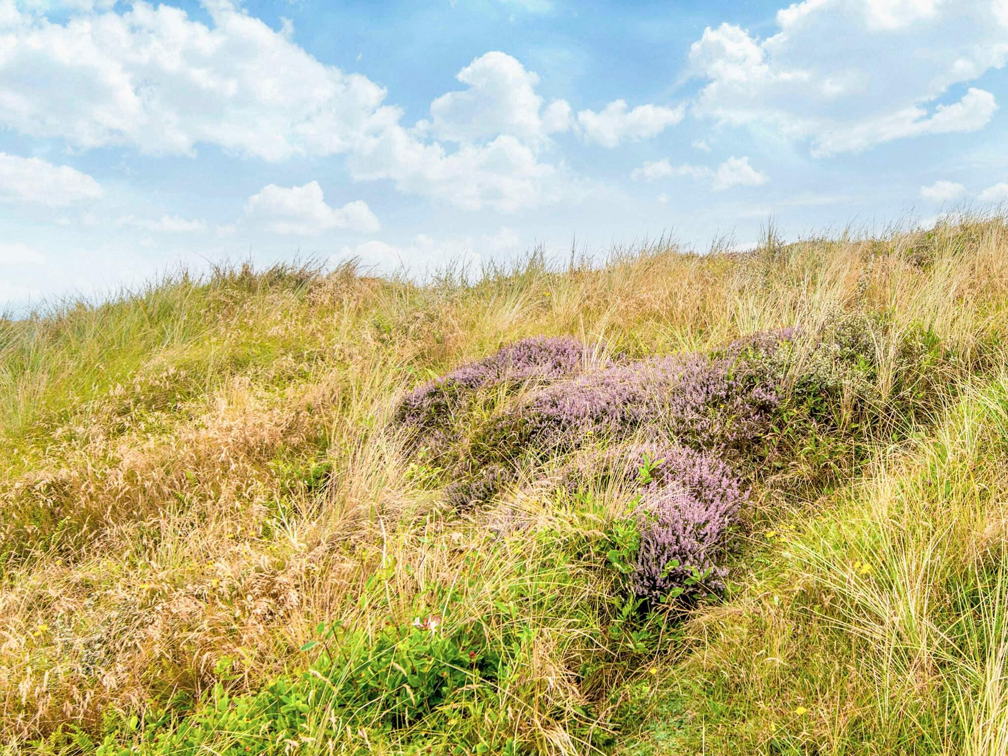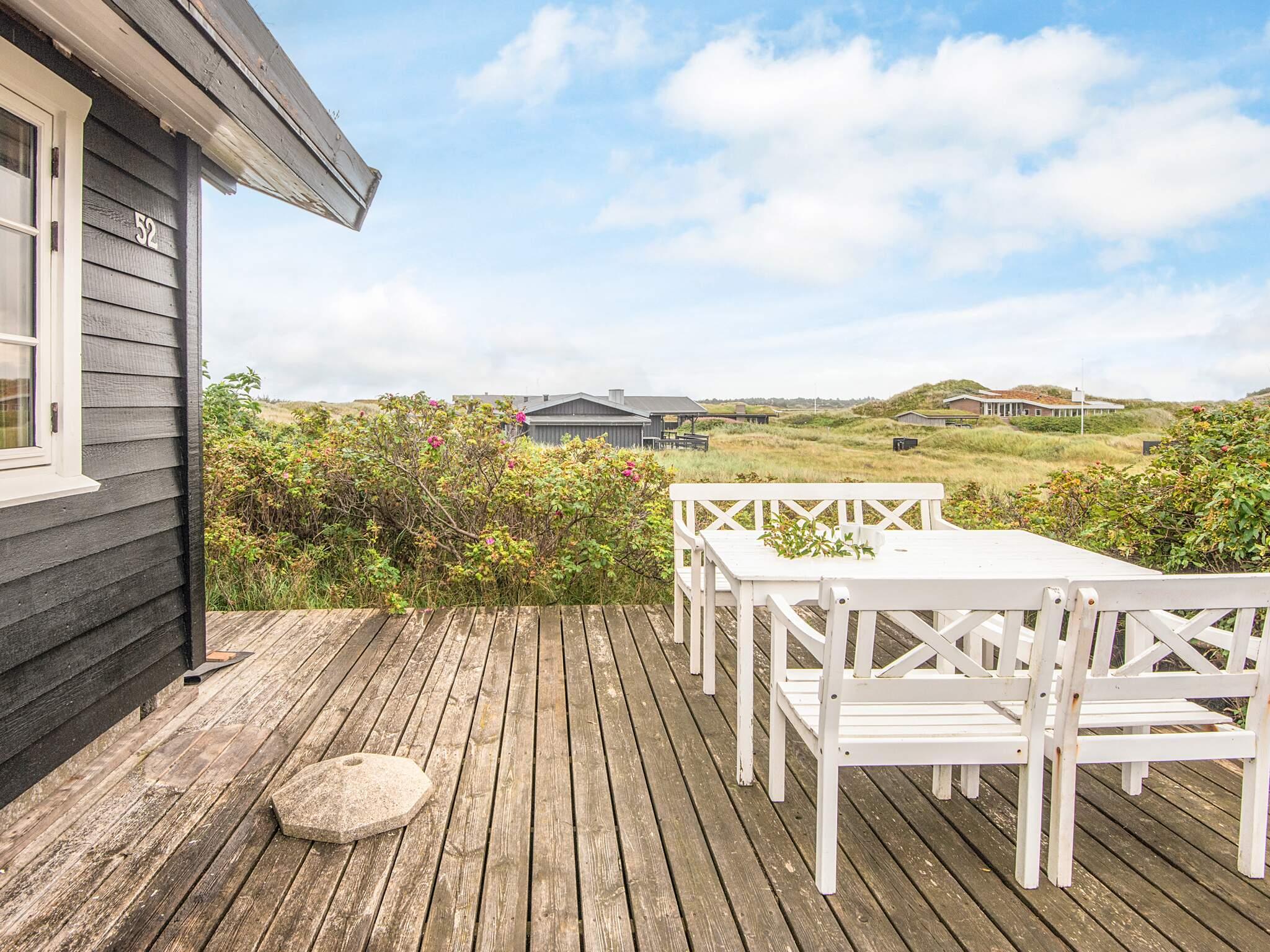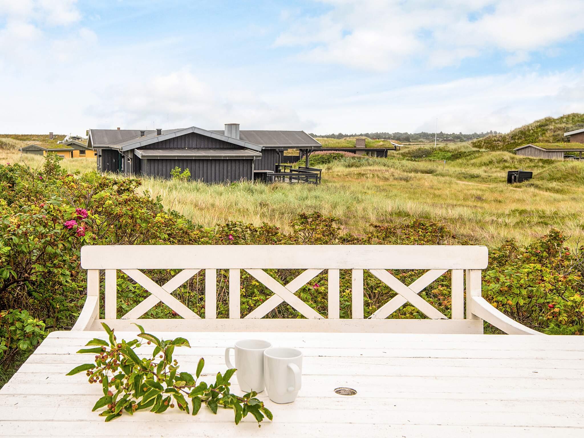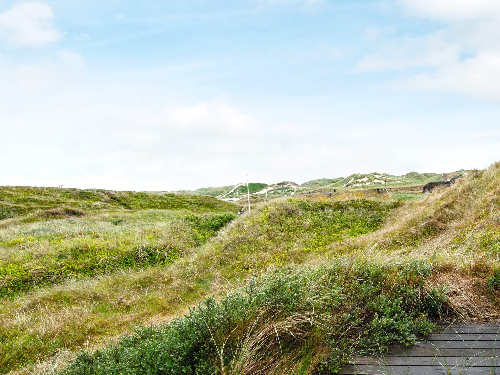 Tæt på Vesterhavet ligger dette højtbeliggende sommerhus på kuperet grund, hvorfra I kan nyde en fantastisk udsigt over området og klitterne. Udsigten kan nydes fra såvel husets vestvendte som sydvendte terrasse. Huset er bygget som bjælkehytte og har en rustik og enkel indretning med trævægge, lofter og kokostæpper. Åben stue/køkken, tre soverum, hvoraf et har dobbeltseng, og to har enkeltsenge med en køjeseng over. Køjesengen måler 60 i bredden. Dette er et ideelt hus for naturelskere, der ønsker at trave lange ture i en betagende flot natur, i klitterne og ved stranden og bagefter slappe af foran brændeovnens knitrende flammer. Huset er ikke egnet til handicappede eller gangbesværede.