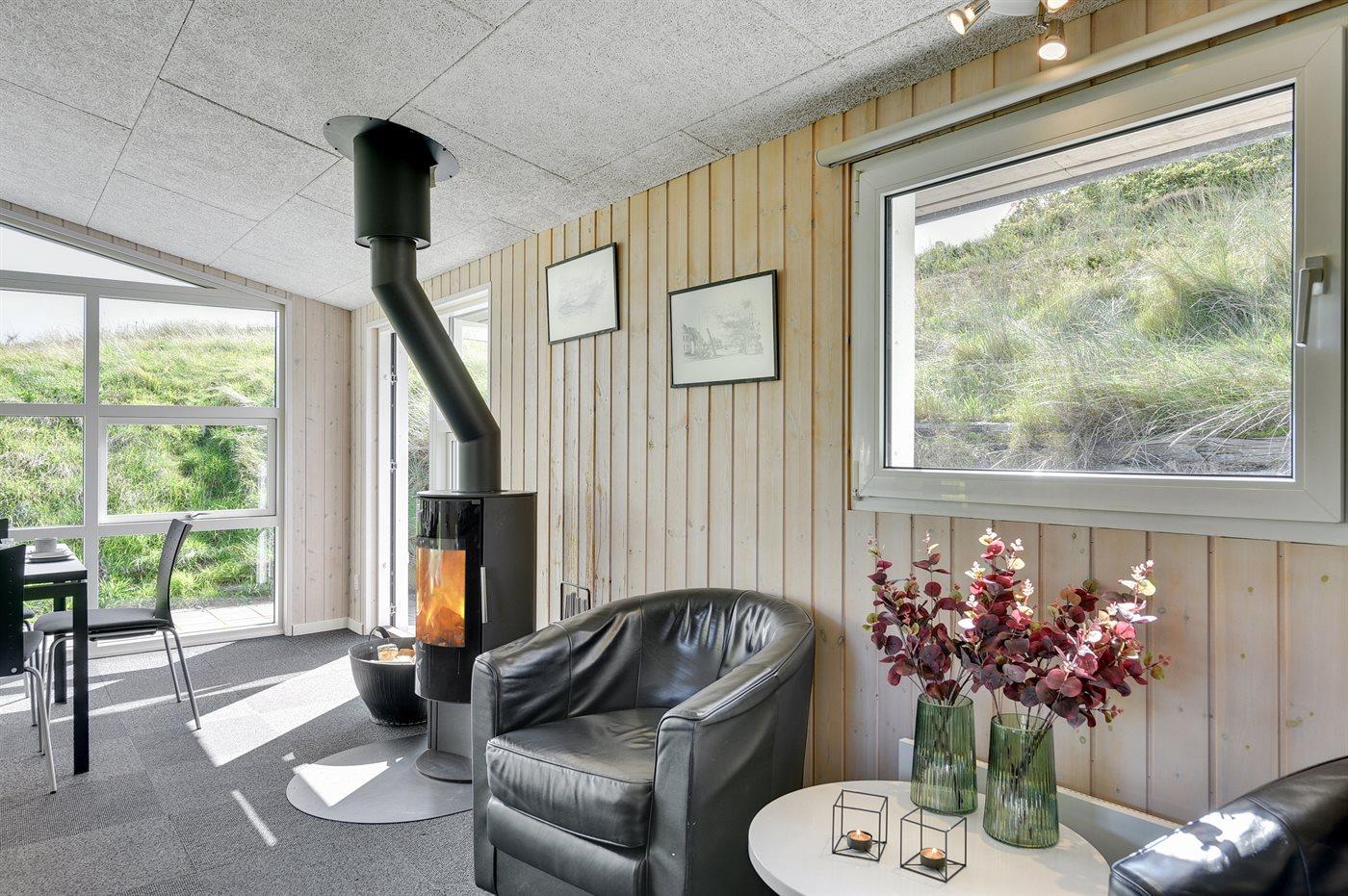 Flot, velholdt sommerhus beliggende for enden af lukket vej på en kuperet grund i nærheden af Vesterhavet. De omkringliggende klitter giver god læ til huset og det tilhørende terrasseareal. Området er naturskønt med gode muligheder for vandreture, og byder endvidere på mange aktivitetsmuligheder.