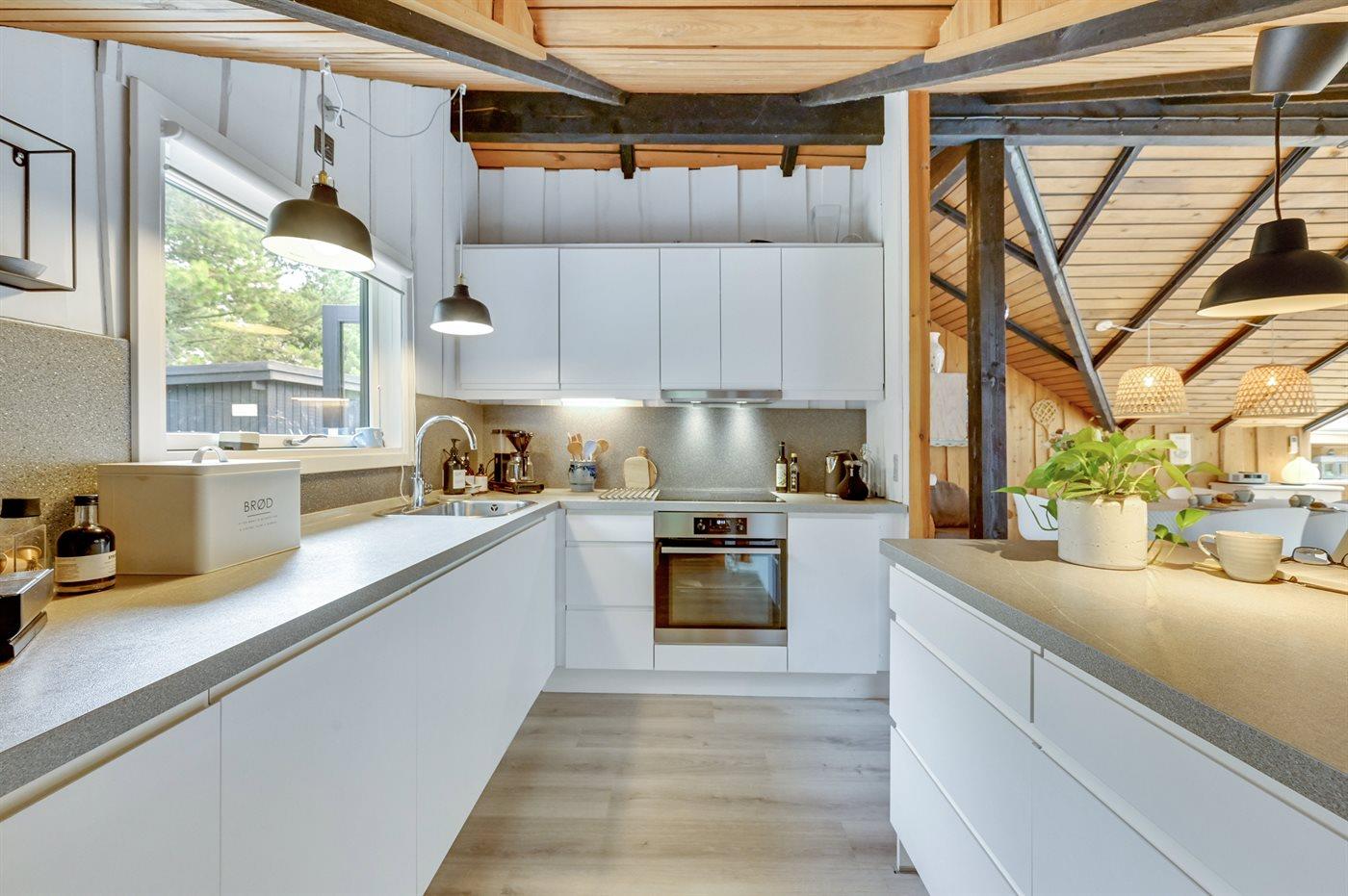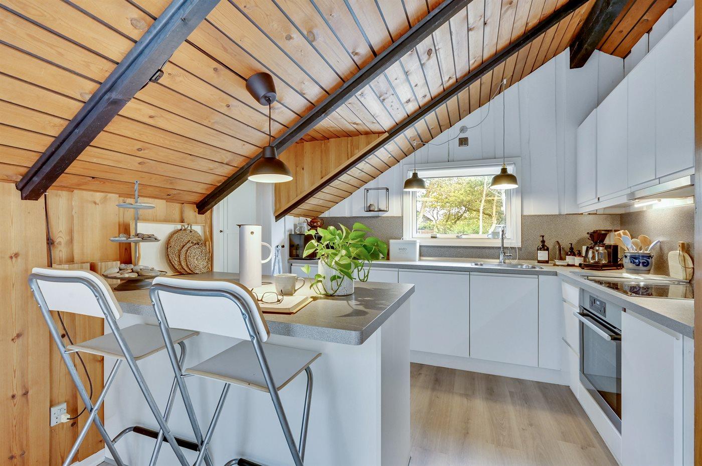 Køkkenet er udstyret med 1 køleskab. Der er 4 induktionskogeplader, varmluftovn, mikrobølgeovn. Der findes ekstra køle-/fryseskab i skuret.