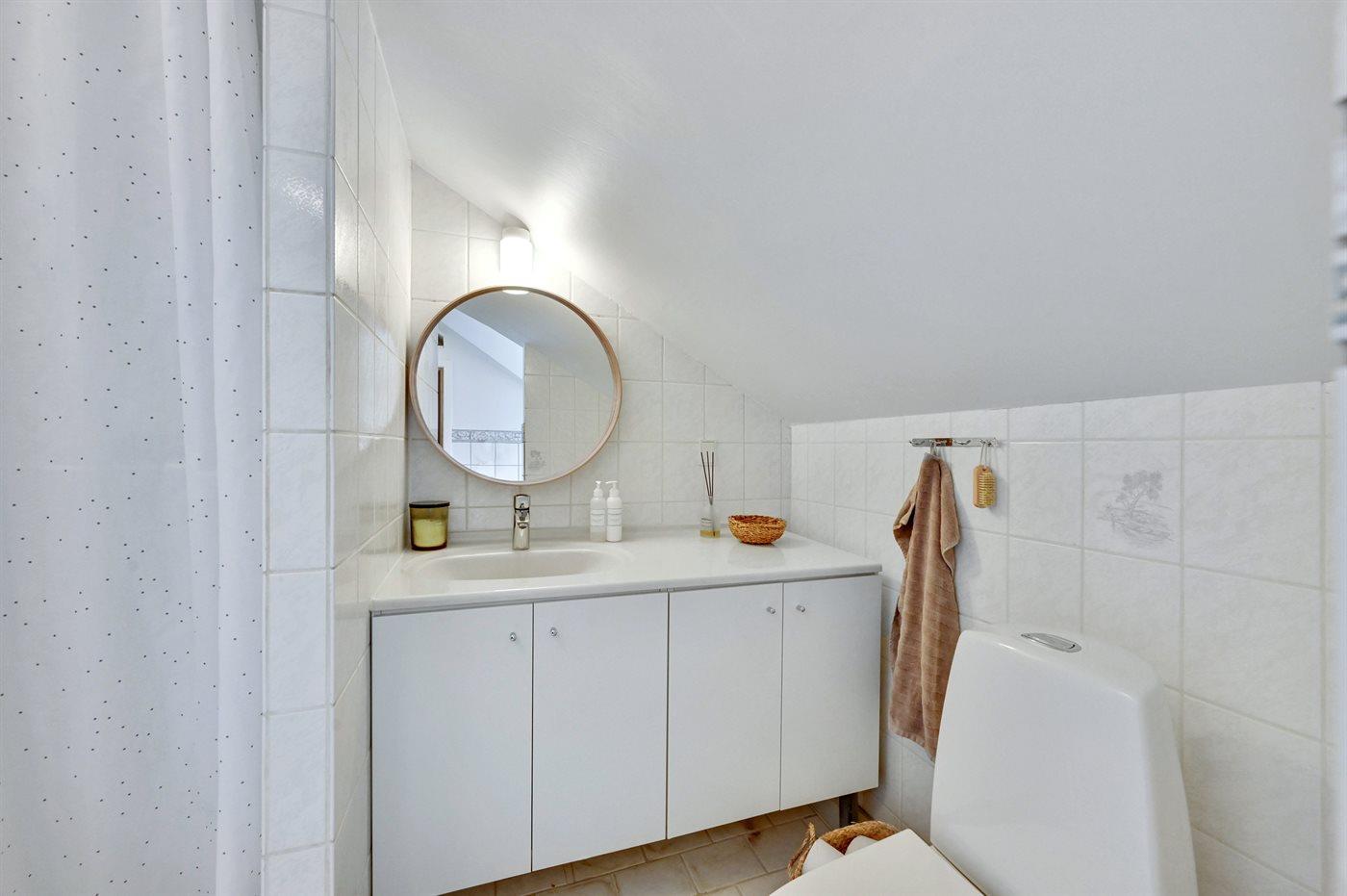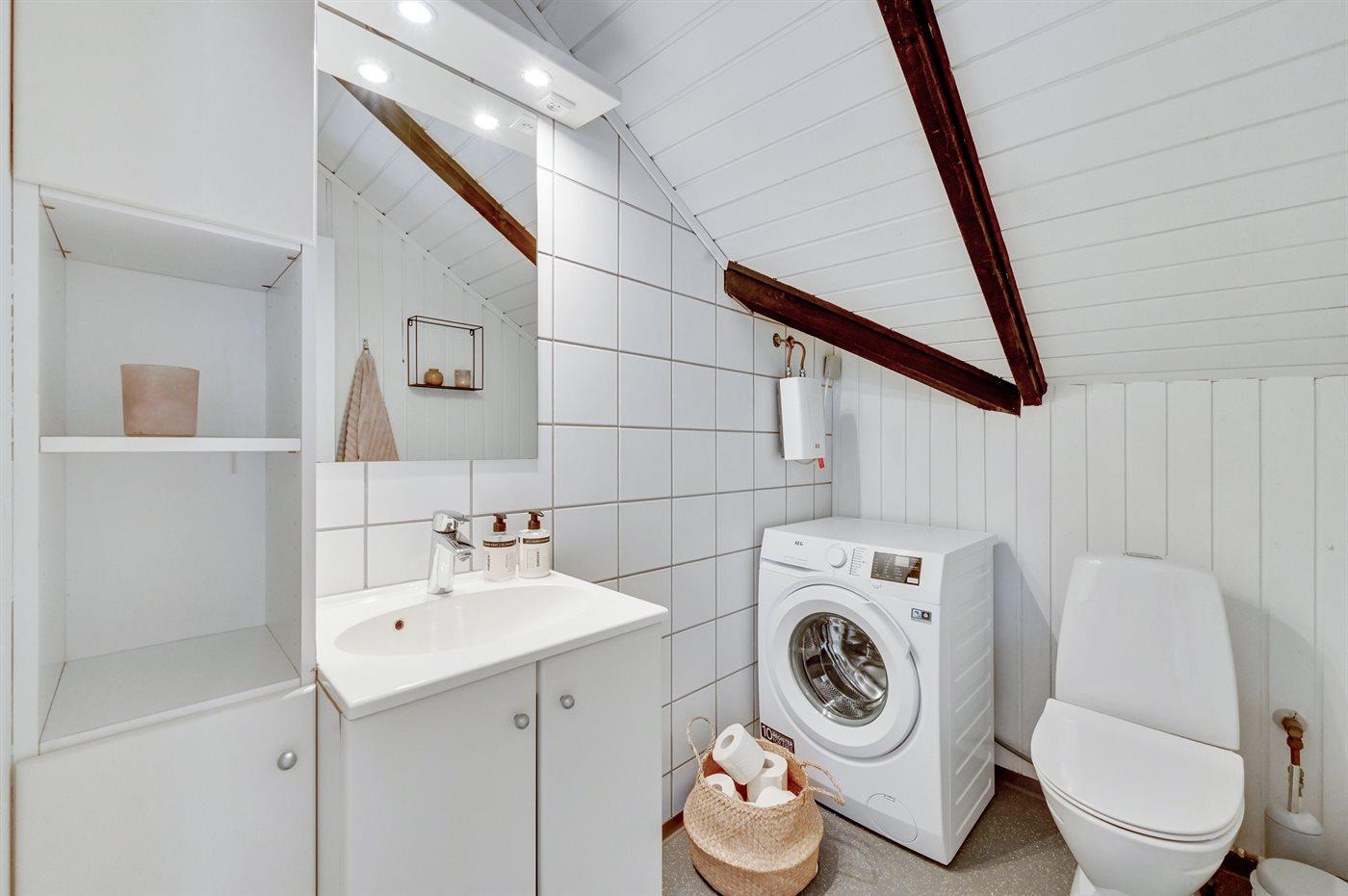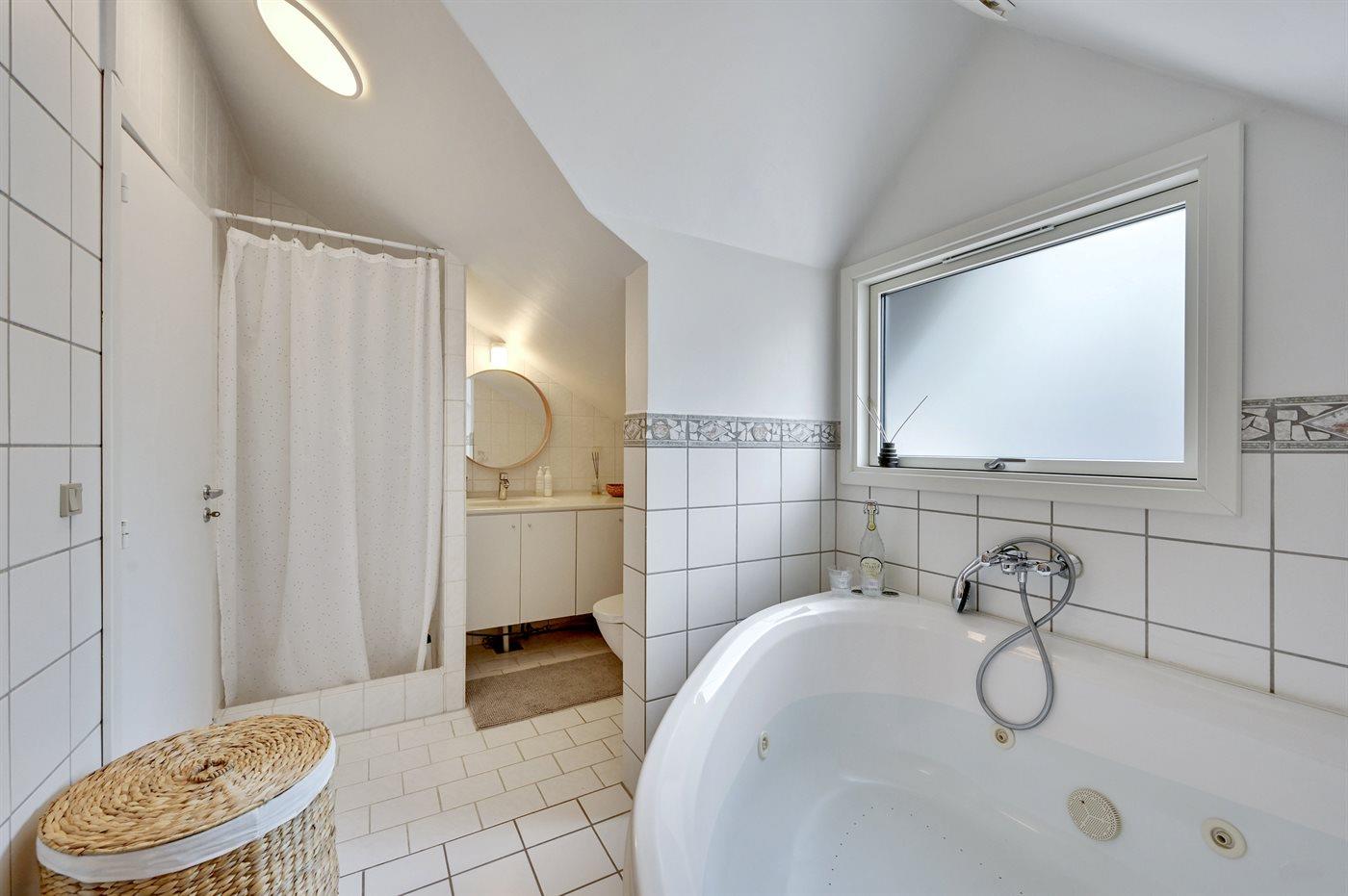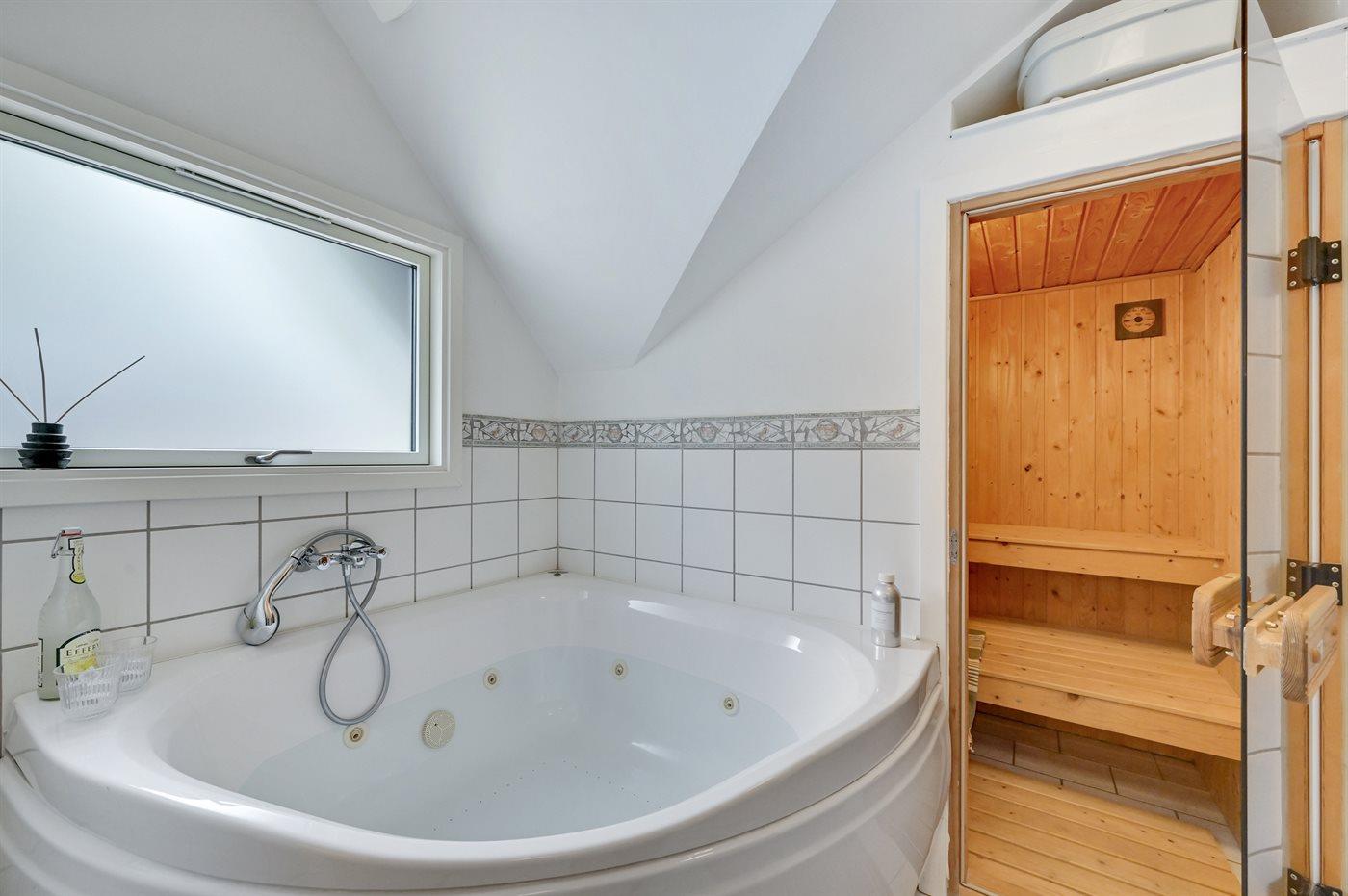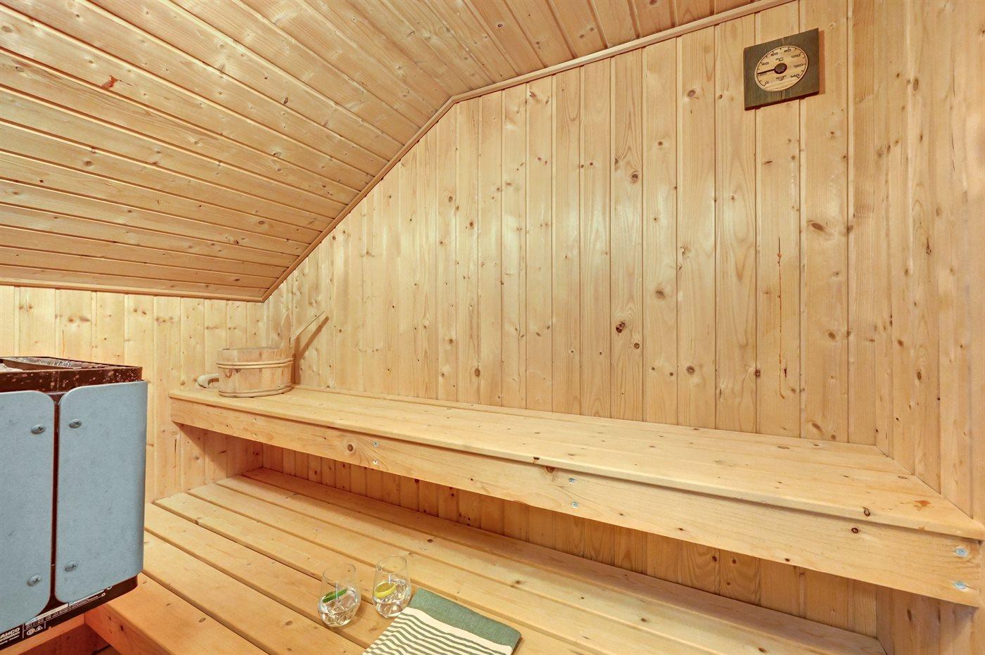 Der er 1 badeværelse med bruser og 2 toiletter, heraf 1 gæstetoilet. Der er gulvvarme på 1 badeværelse. I saunaen er der mulighed for afslapning.