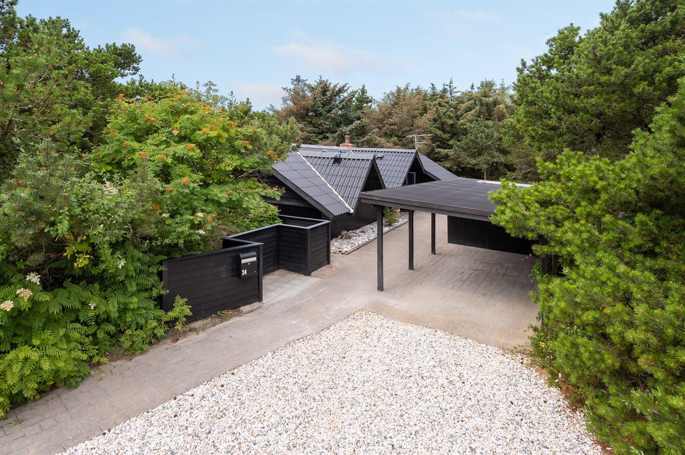Ferieboligen er beliggende på en 1400 m² stor naturgrund. Der er 400 m til havet. Nærmeste forretning er beliggende i en afstand af 50 m. Til ferieboligen hører 40 m² terrasseareal. Der er redskabsrum. Gynge. Der er carport til rådighed. Parkering ved ferieboligen.