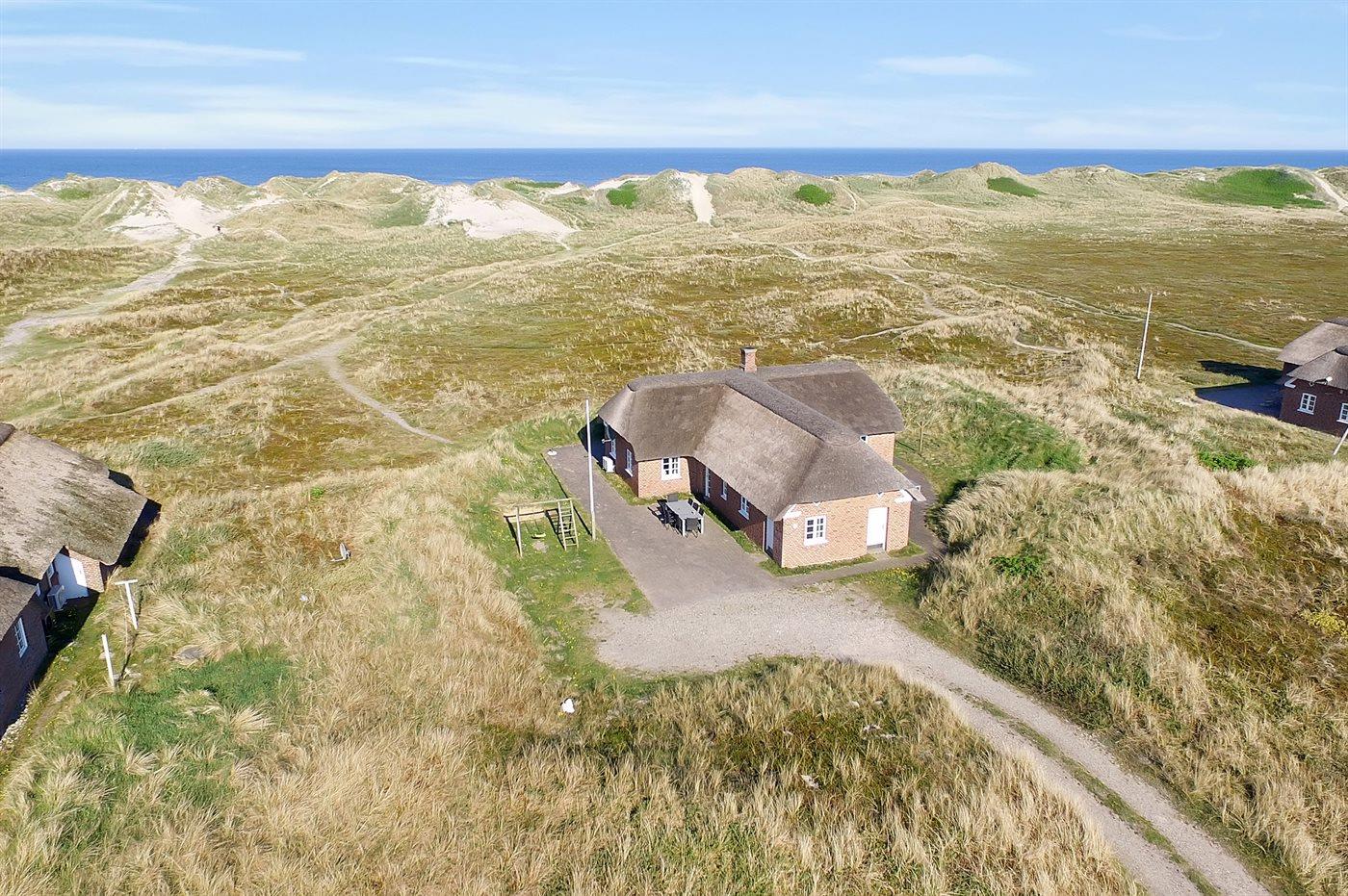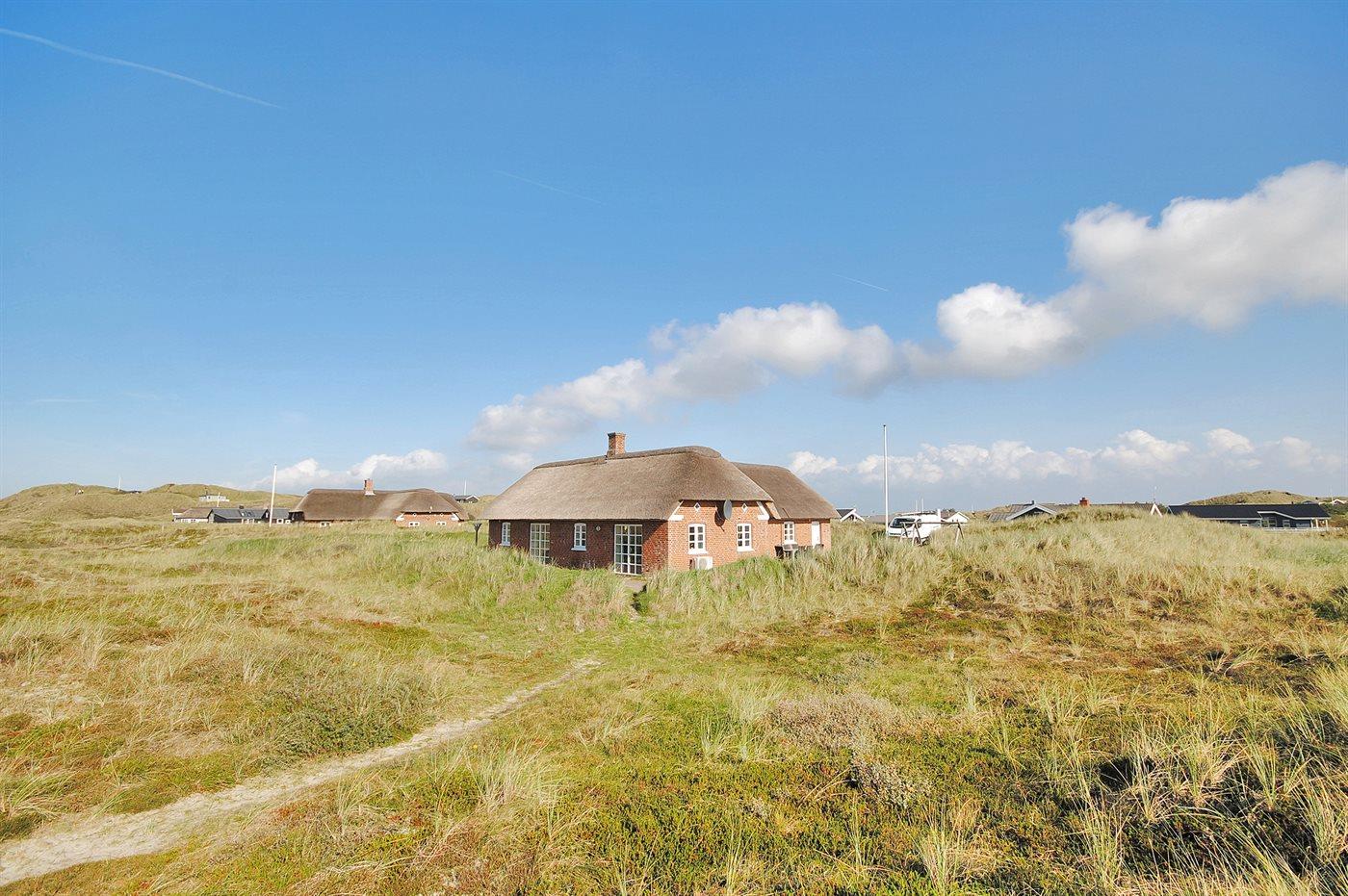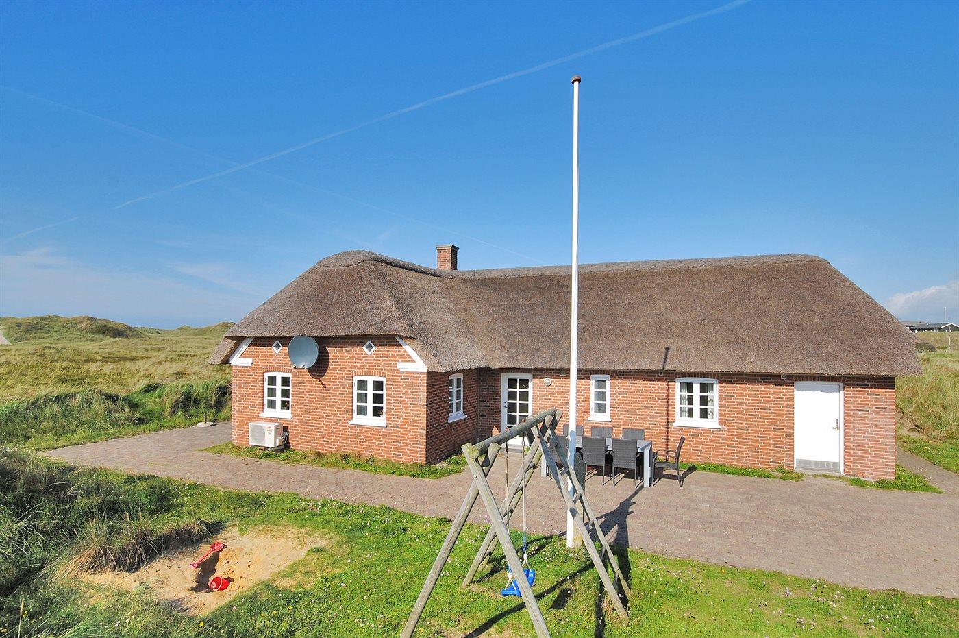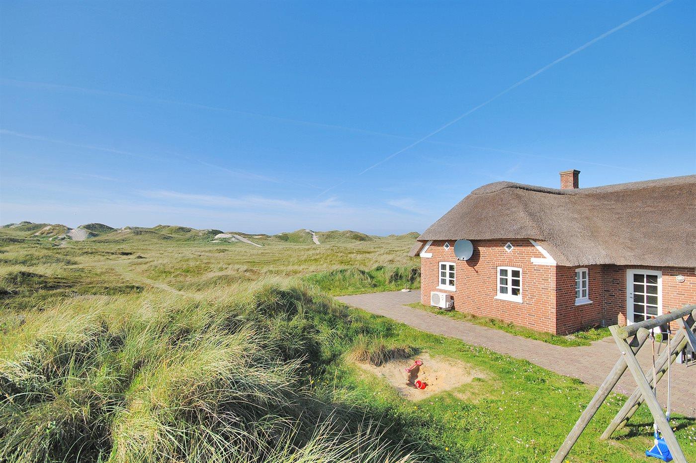 Med en fantastisk skøn beliggenhed lige bag klitterne til stranden og Vesterhavet findes dette rummelige sommerhus på en meget stor og kuperet grund med en flot udsigt over det naturskønne klitareal fra såvel hus som grund. I forlængelse af huset er bygget et anneks med indgang fra terrassen, hvor 2 af sovepladserne befinder sig.