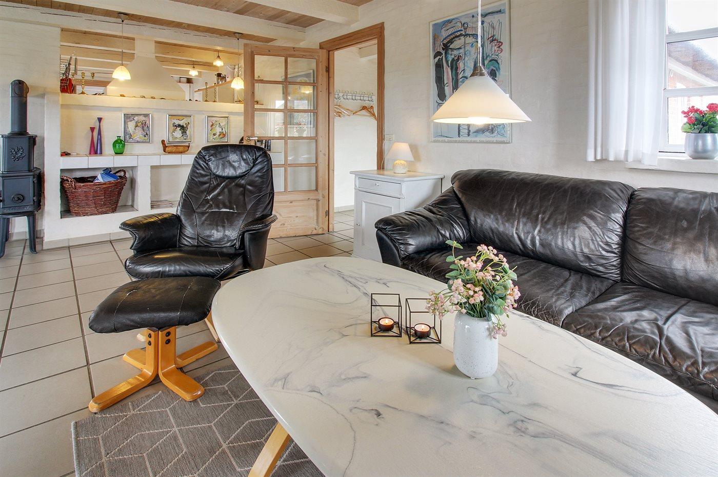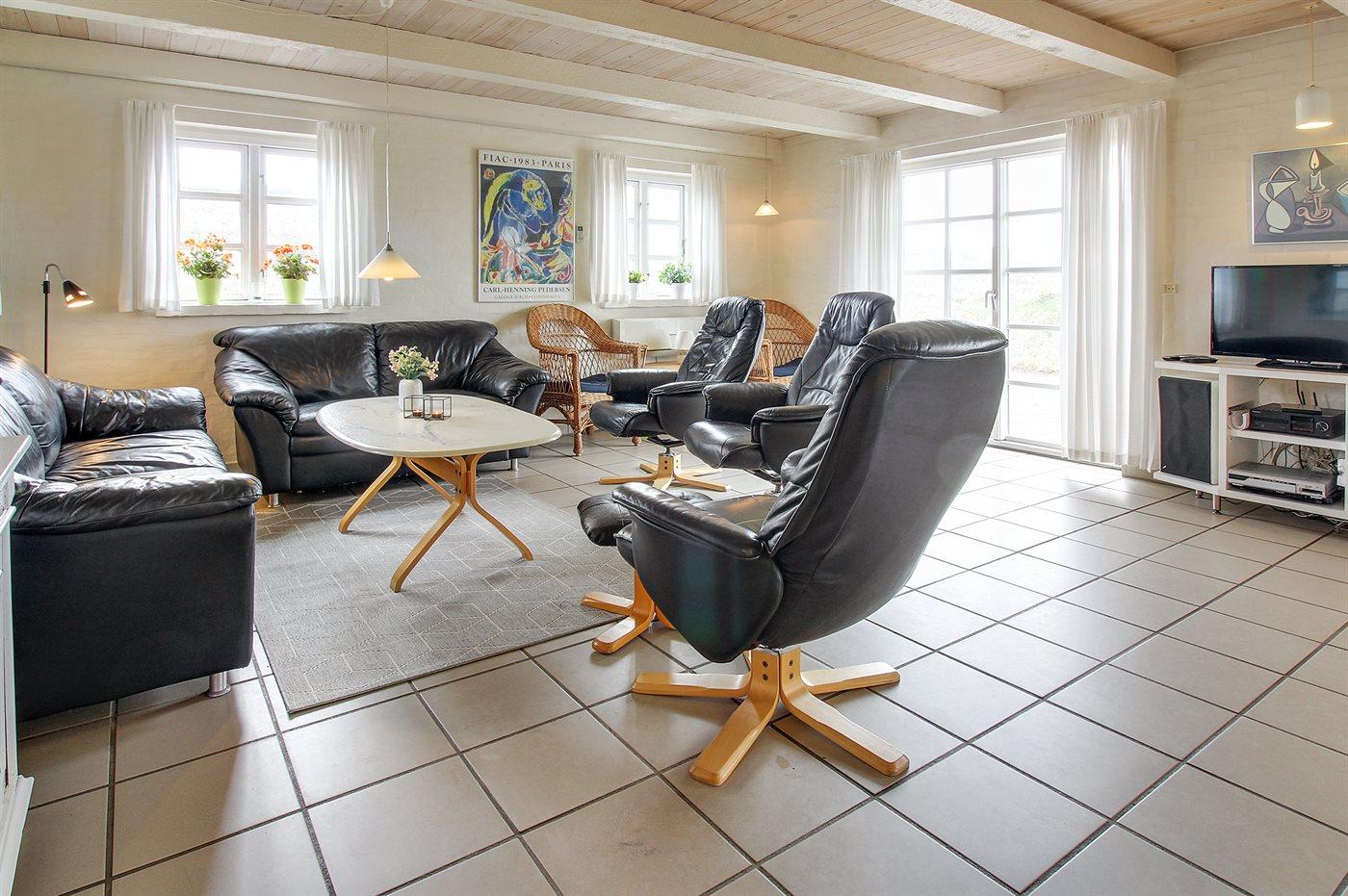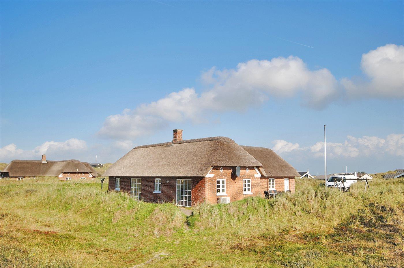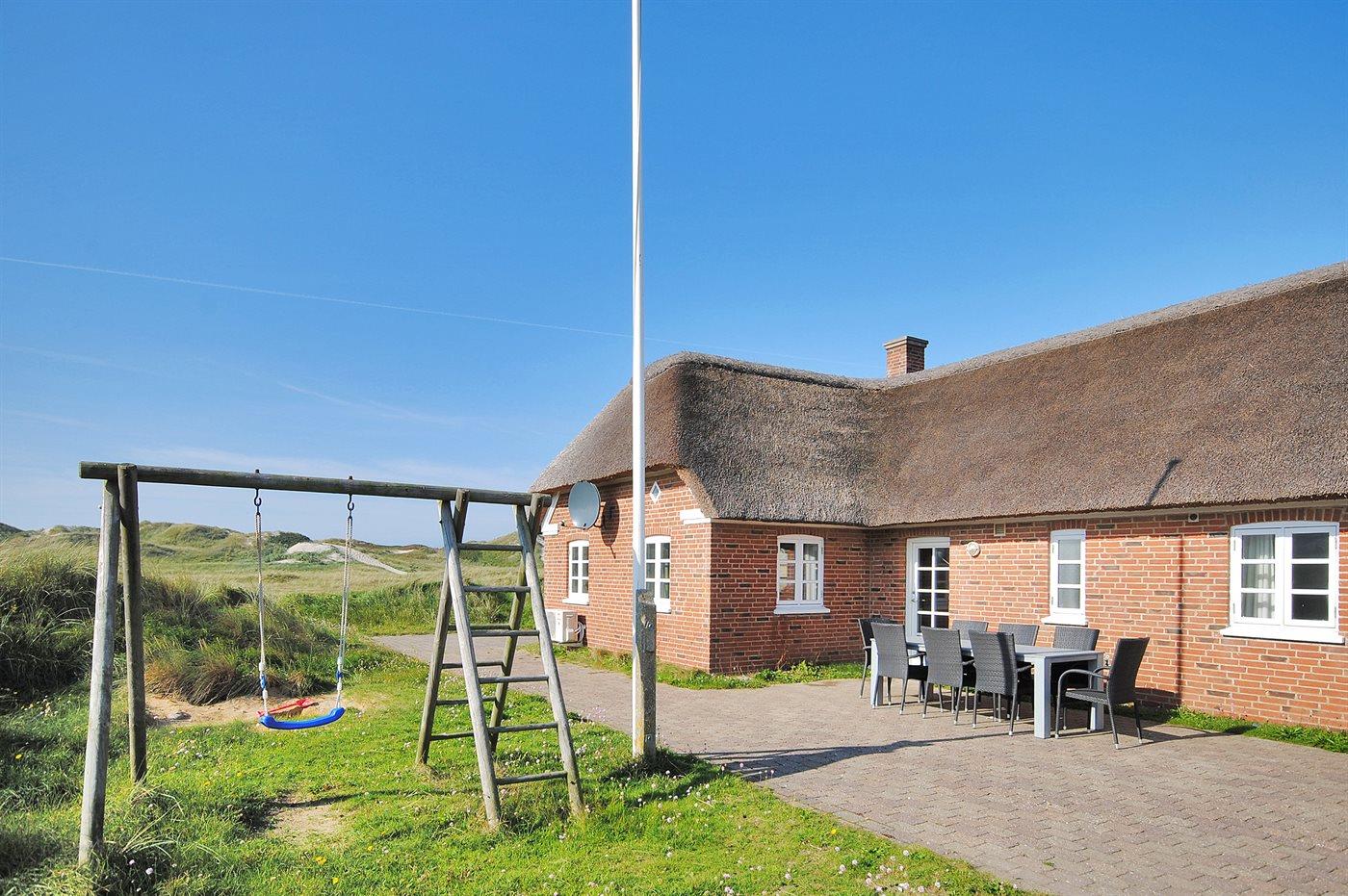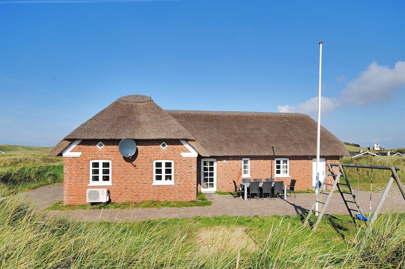 Med en fantastisk skøn beliggenhed lige bag klitterne til stranden og Vesterhavet findes dette rummelige sommerhus på en meget stor og kuperet grund med en flot udsigt over det naturskønne klitareal fra såvel hus som grund. I forlængelse af huset er bygget et anneks med indgang fra terrassen, hvor 2 af sovepladserne befinder sig.