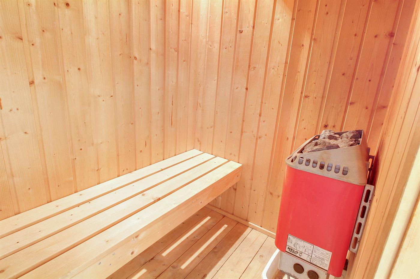Der er 2 badeværelser med bruseniche og 2 toiletter. Der er gulvvarme på 2 badeværelser. I saunaen er der mulighed for afslapning.