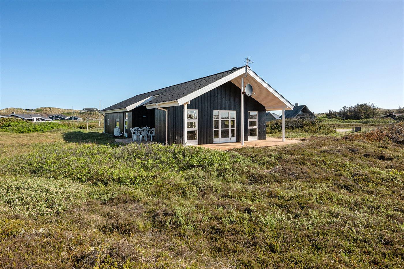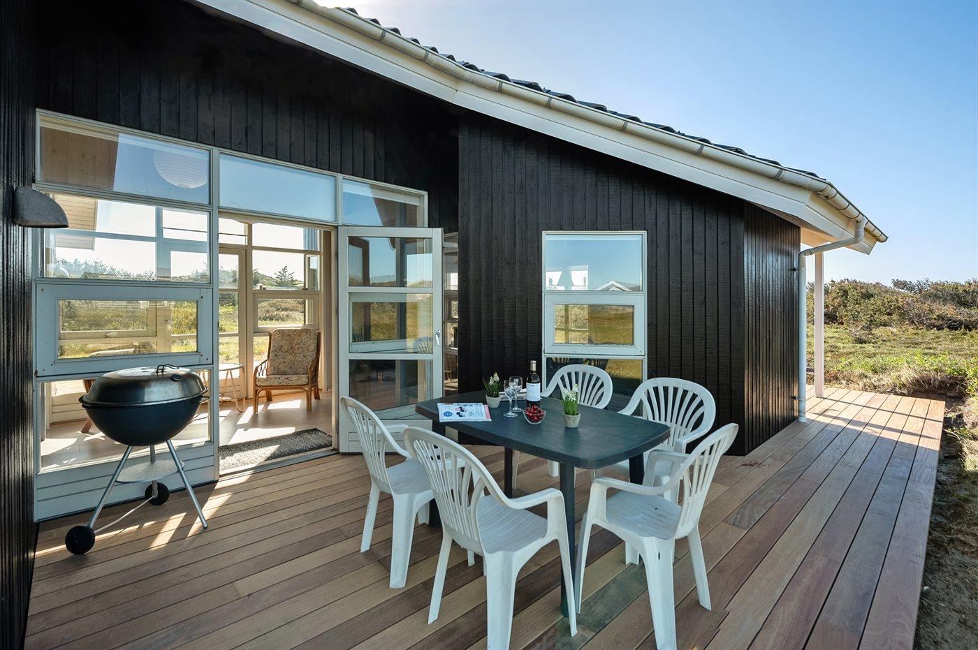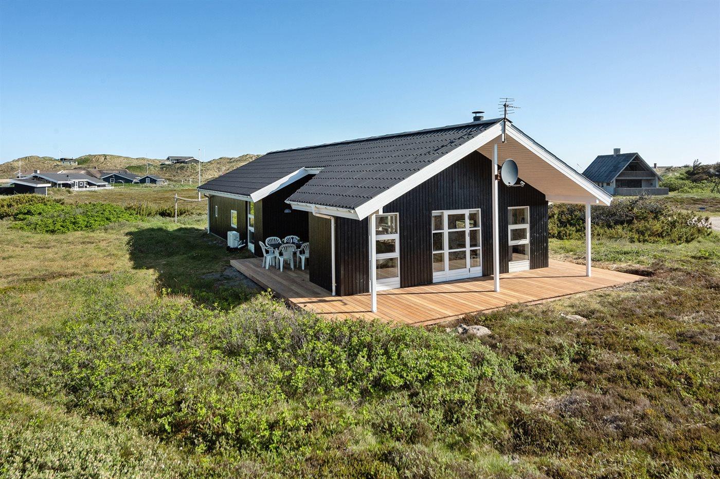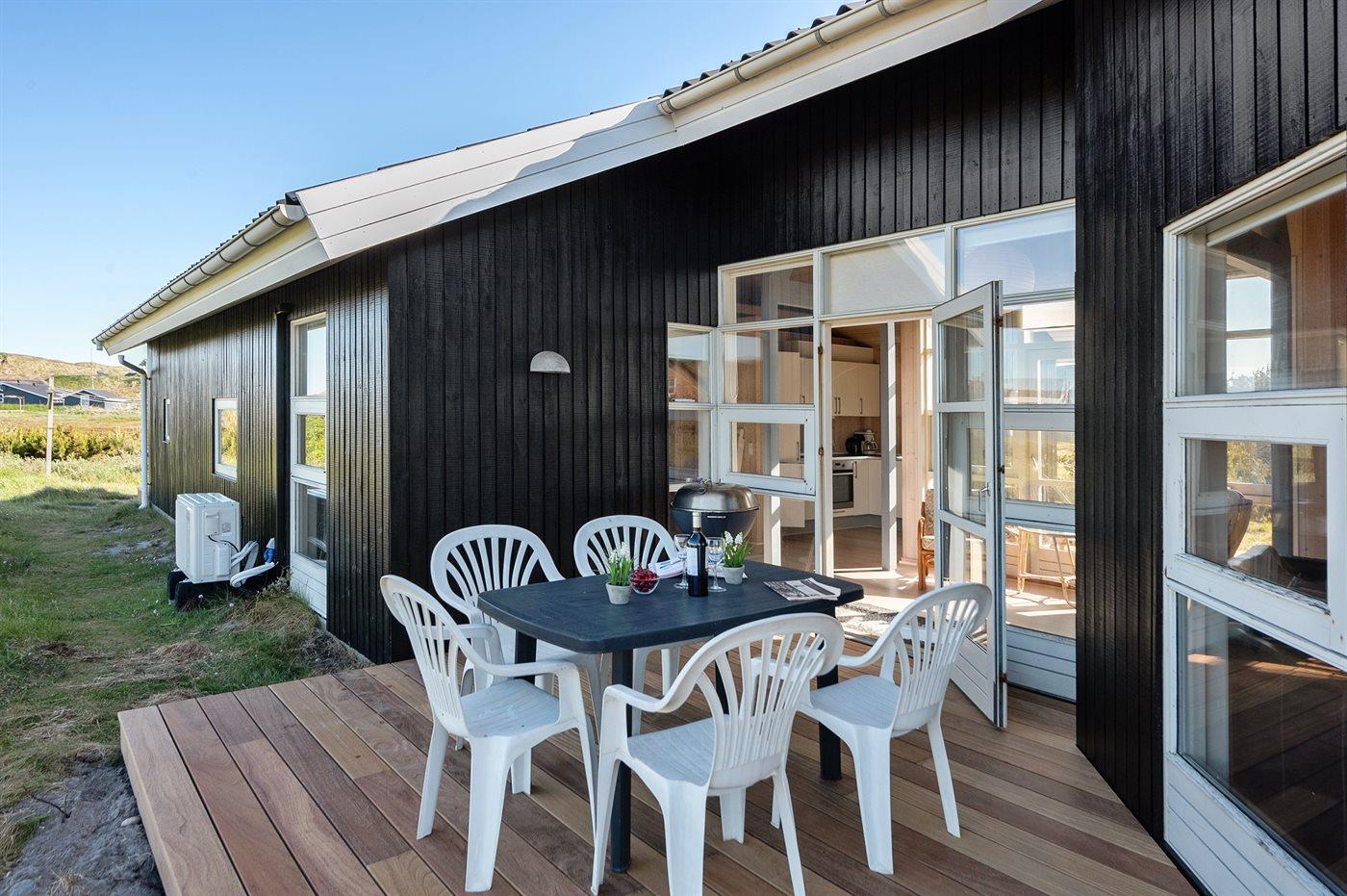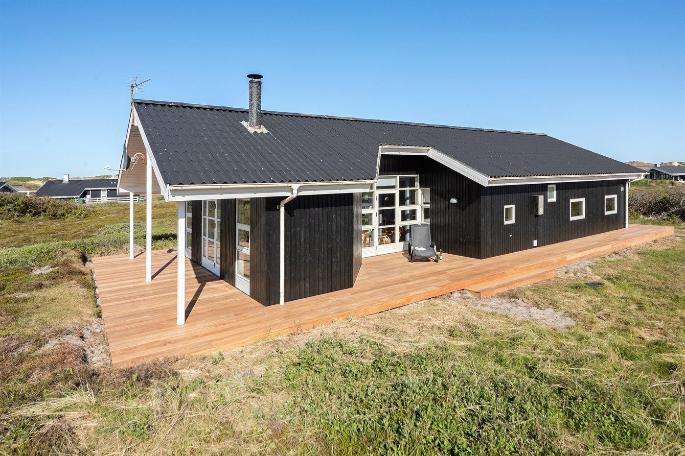 Hyggeligt sommerhus nær badestrand med sauna og stor terrasse i Ringkøbing Houvig.