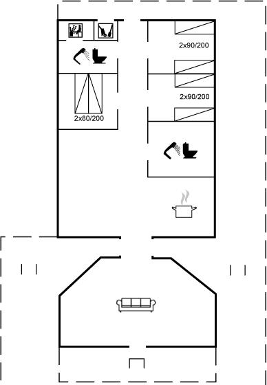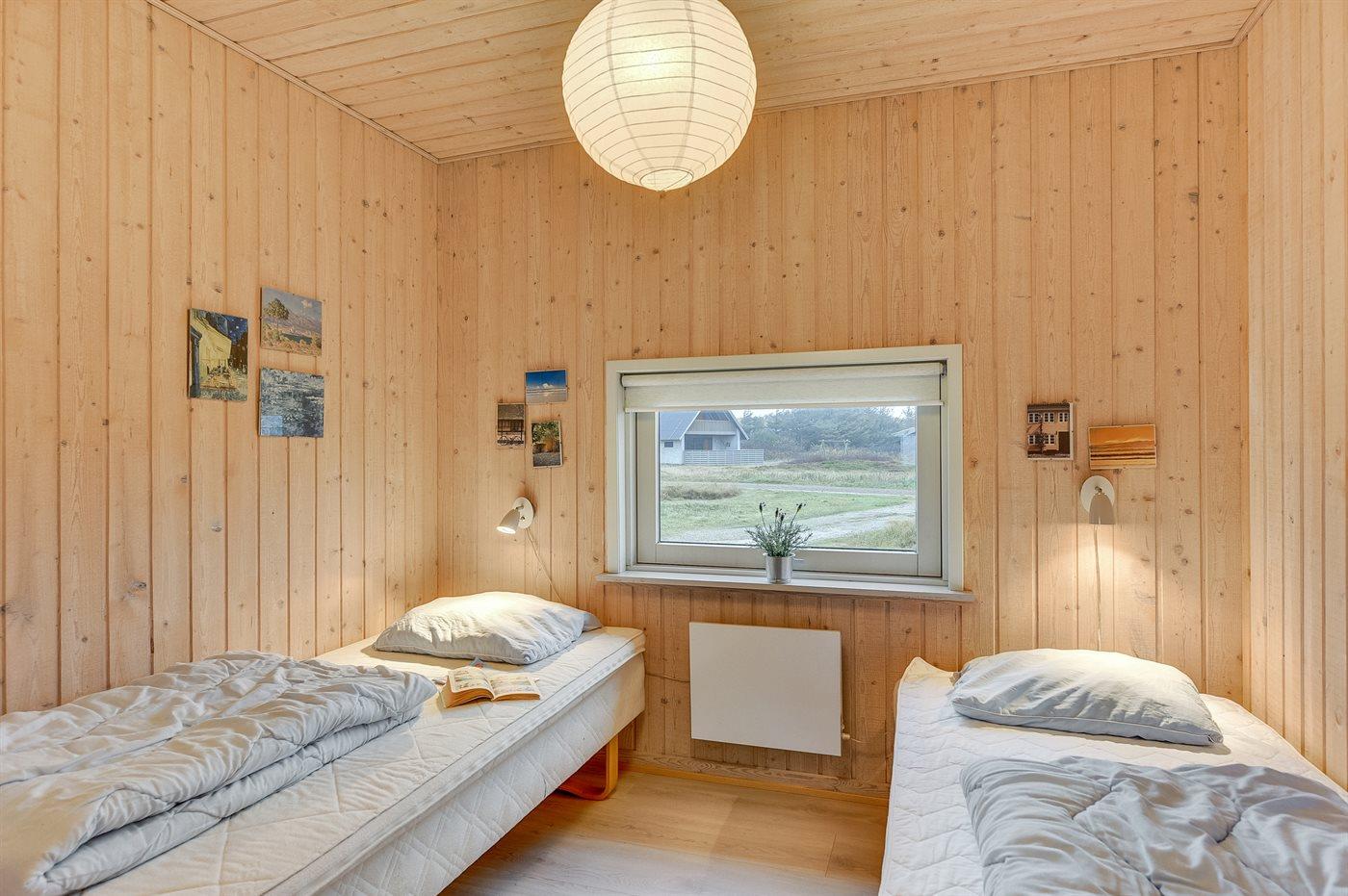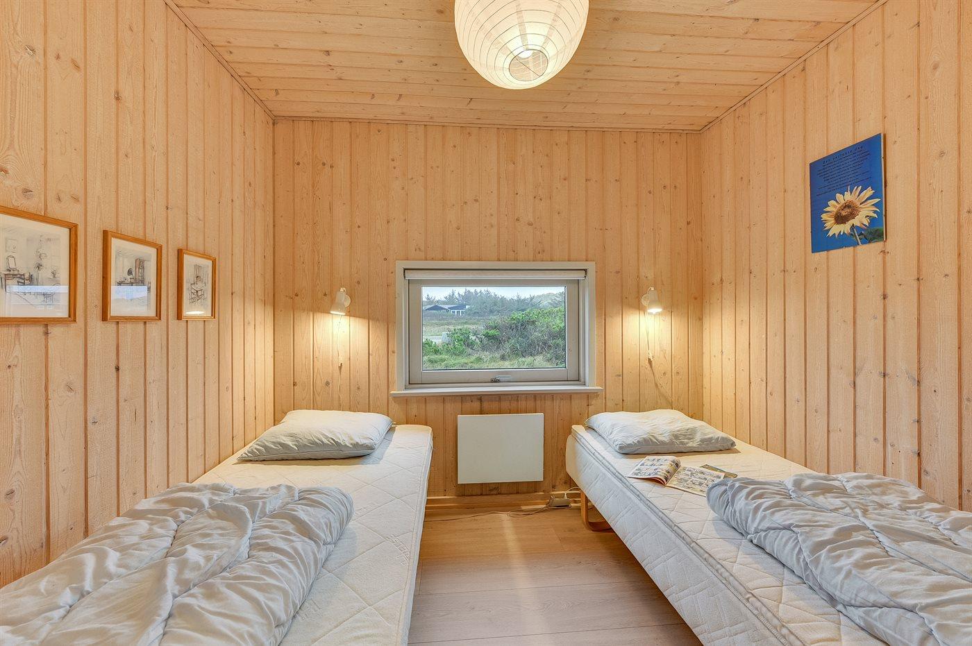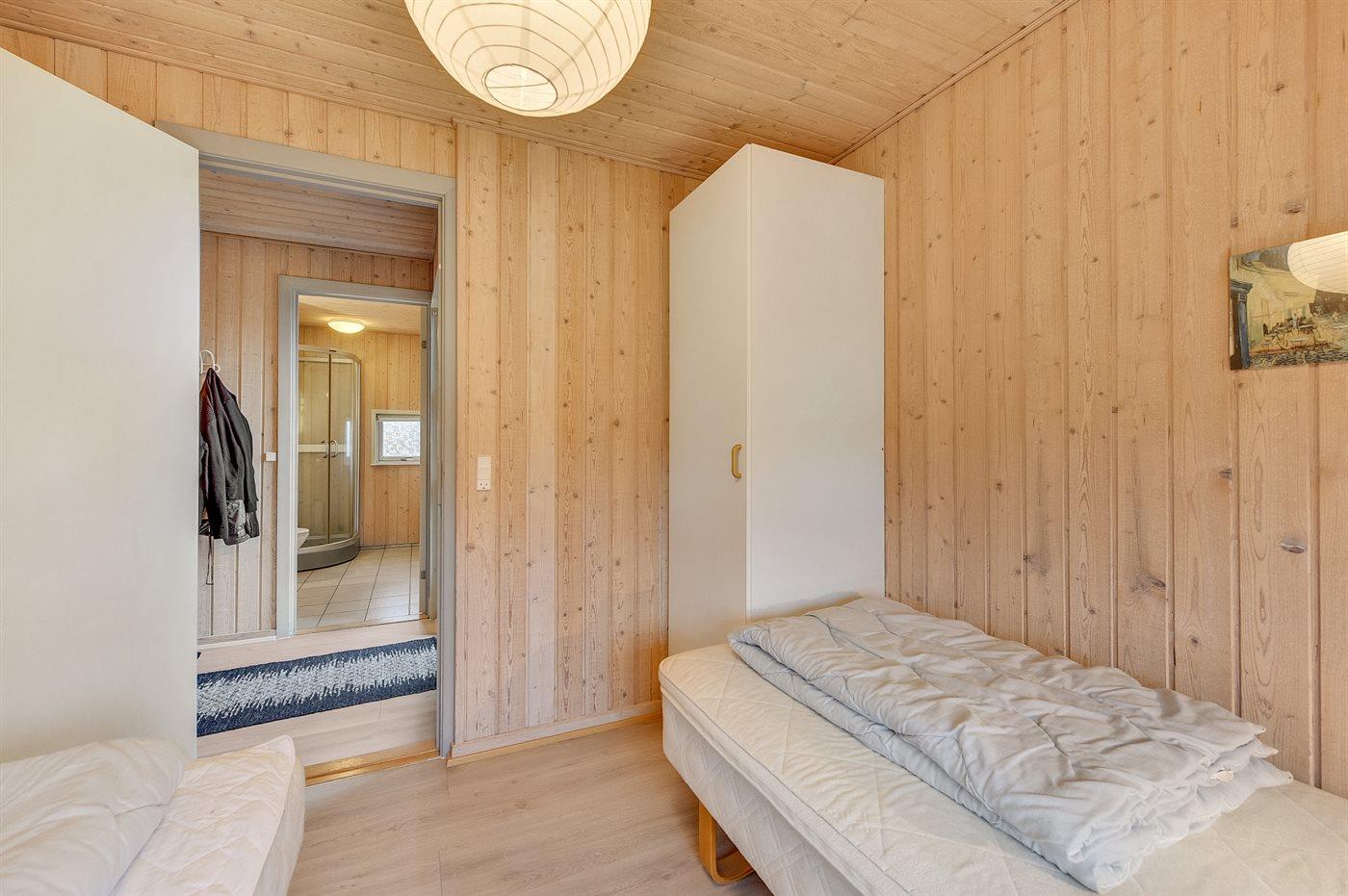 Der er i alt 3 soveværelser. Sovepladserne fordeler sig på: 2 sovepladser i dobbeltseng. 4 sovepladser i enkeltsenge. 2 sovepladser på madrasser. 2 af disse sovepladser befinder sig på husets hems.