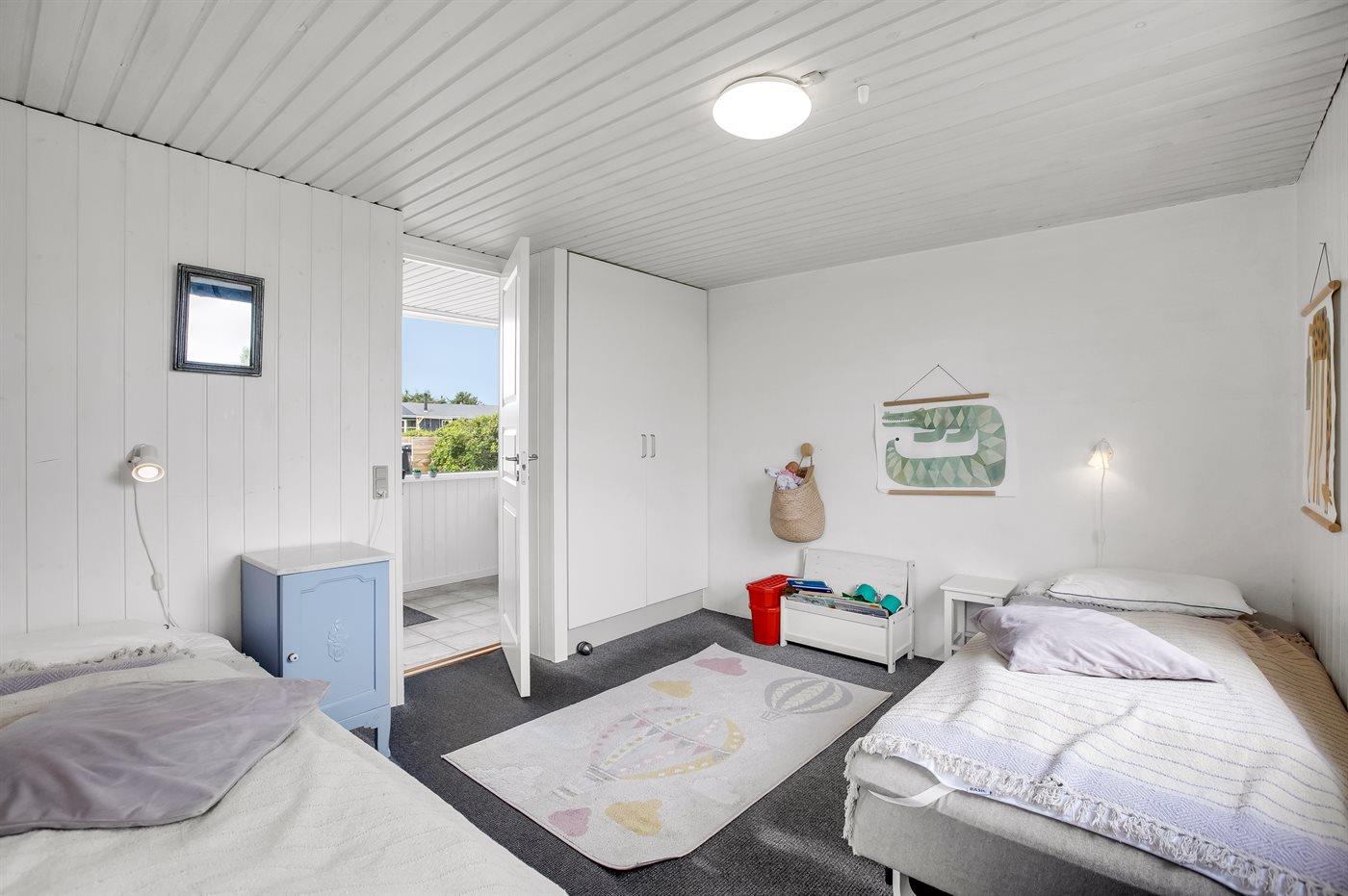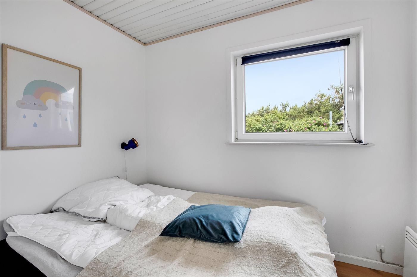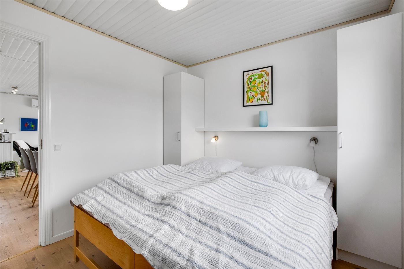 Der er i alt 3 soveværelser. Sovepladserne fordeler sig på: 4 sovepladser i dobbeltsenge. 2 sovepladser i enkeltsenge. Derudover er der 1 stk. barneseng.