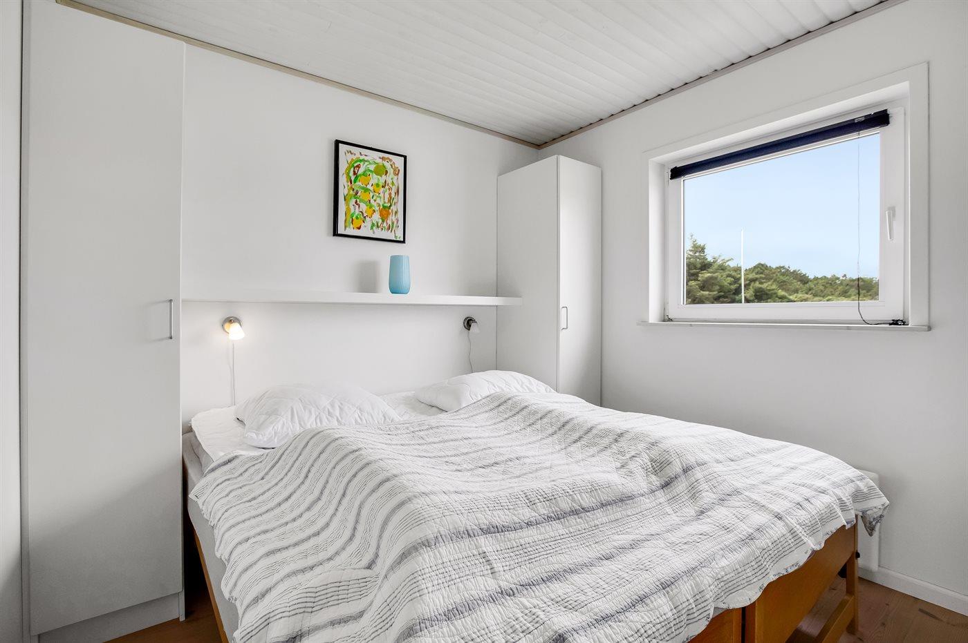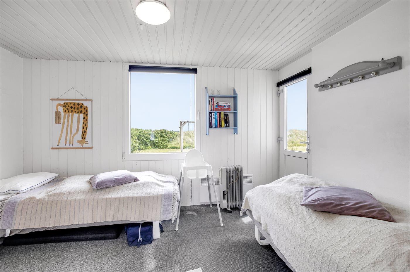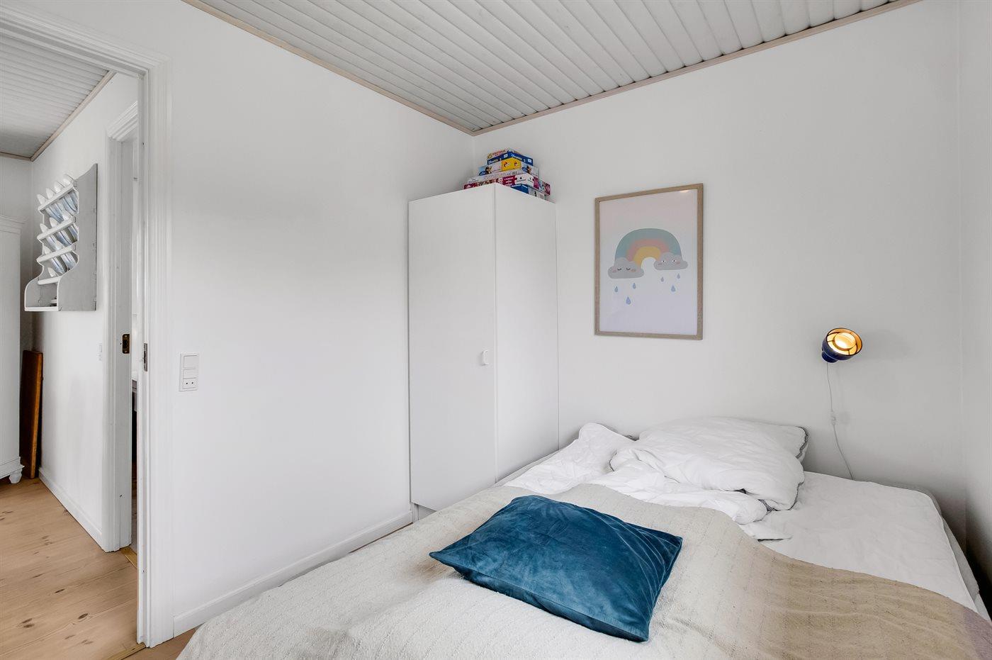 Der er i alt 3 soveværelser. Sovepladserne fordeler sig på: 4 sovepladser i dobbeltsenge. 2 sovepladser i enkeltsenge. Derudover er der 1 stk. barneseng.