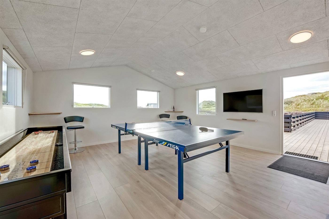 I aktivitetsrummet er der følgende udstyr: Bordtennis. Shuffleboard. Dart.