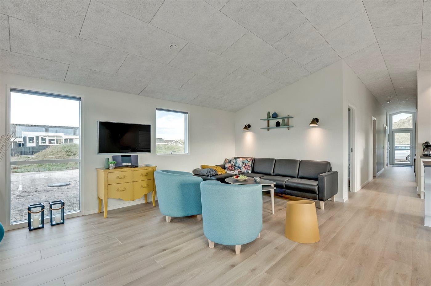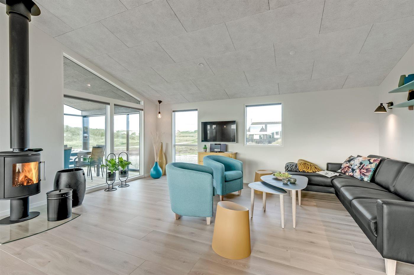 Sommerhuset egner sig til 8 personer samt 1 barn op til 3 år. Ferieboligen er på 155 m² og er bygget i 2019. Det er ikke tilladt at medbringe husdyr. Ferieboligen er udstyret med energibesparende varmepumpe. Ferieboligen er udstyret med energibesparende varmegenvindingsanlæg. Hele ferieboligen har gulvvarme. Ferieboligen har vaskemaskine. Tørretumbler. Frysekapacitet på 40 liter. Der er desuden brændeovn. Til de små er der 1 stk. barnestol.