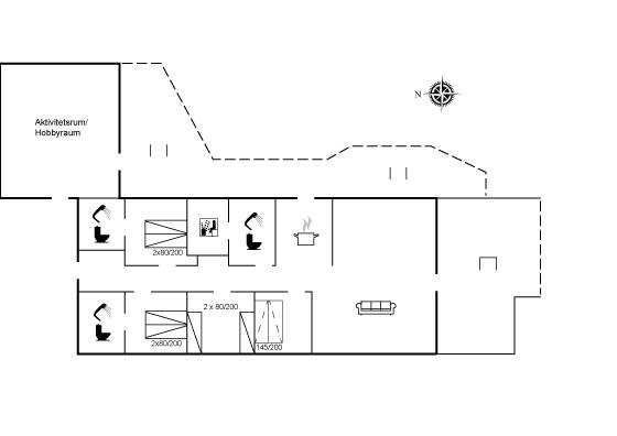 Dette nybyggede aktivitetshus ligger tæt på historiske attraktioner, natur og områdets mange aktivitetstilbud. Én af de historiske attraktioner finder man på stranden, hvor man kan undersøge de gamle bunkere. Samtidig mærker man naturens kraft, når man går langs Vesterhavet. Med Søndervig og Ringkøbing i nærheden er der altid et nyt eventyr i vente, hvad enten man er til smagsoplevelser eller shopping.