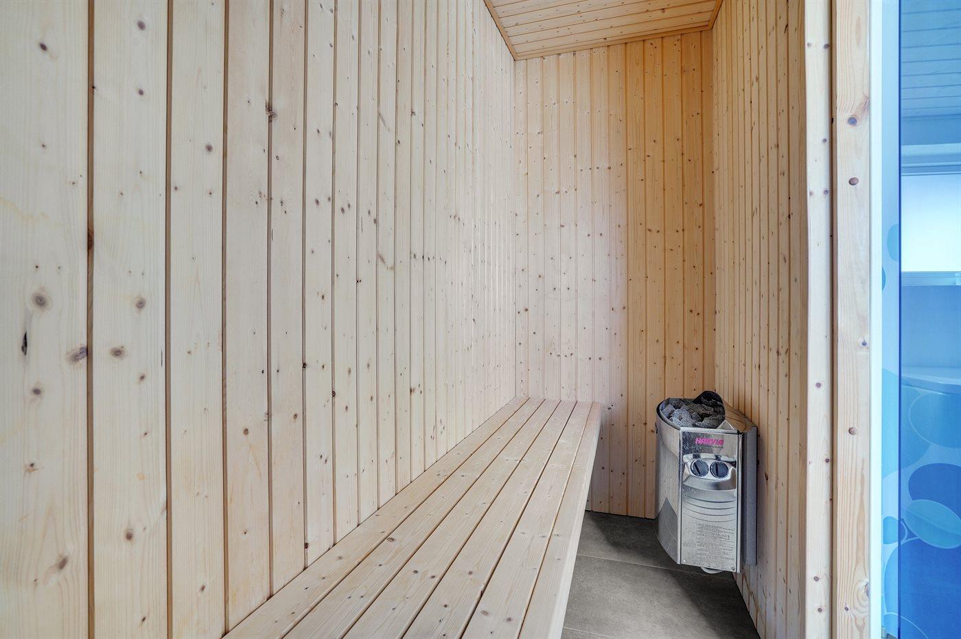Der er 2 badeværelser med bruseniche og 2 toiletter. Der er gulvvarme på 2 badeværelser. I saunaen er der mulighed for afslapning.
