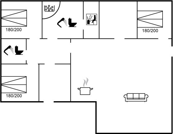 Der er i alt 3 soveværelser. Sovepladserne fordeler sig på: 6 sovepladser i dobbeltsenge. Derudover er der 1 stk. barneseng.