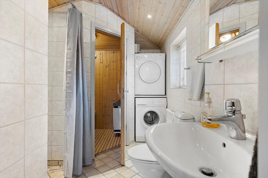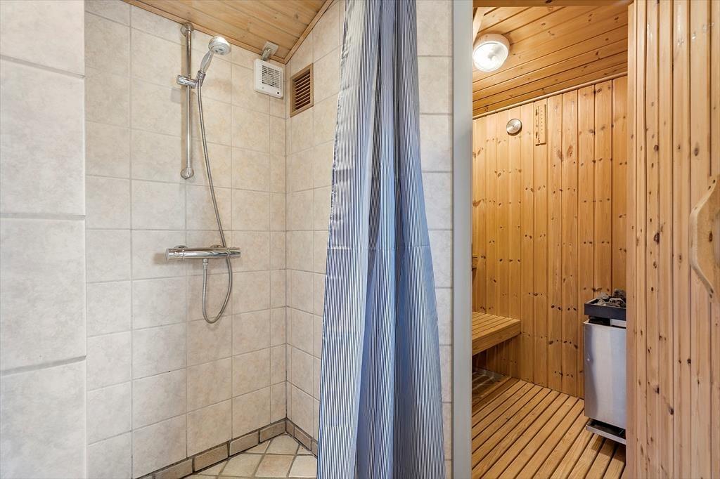 Det stråtækte sommerhus er oprindeligt opført i 1967 og blev i 2007 udvidet med en god entré og et ekstra soveværelse, så I nu får 87 m2 at brede jer på. Ikke kun tilbygningen, men hele huset fremstår pænt og velholdt efter seneste renovering i 2022 – blandet andet med afslebne, lyse trægulve i flere af rummene. Planløsningen byder kort fortalt på en stue med integreret køkken samt et badeværelse, tre soveværelser og hems. Det nyeste soveværelse er det største, og det er et flot rum med loft til kip og ribbe, hvis I vil lave strækøvelser, når I står op. Efter morgengymnastikken kan I sågar gå i sauna, hvis lysten melder sig, for sådan én er der på badeværelset. Det er også rart bare at slappe af i stuen, som har indbygningspejs nær sofaafdelingen, så I kan nyde varmen og synet af flammerne, mens I læser, løser krydsogtværs og hyggesnakker. Trænger I til underholdning, har tv’et både danske og tyske kanaler, og så er der for øvrigt lynhurtigt internet.