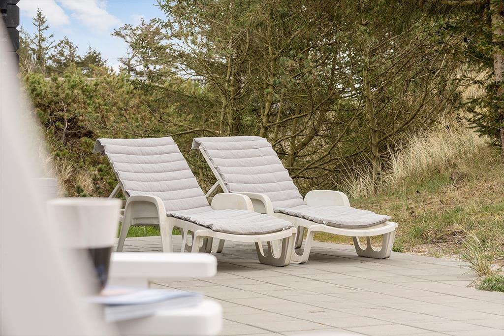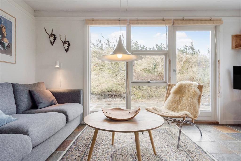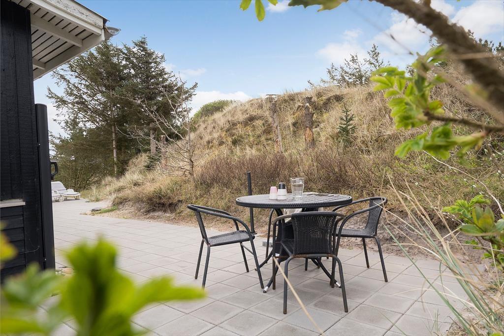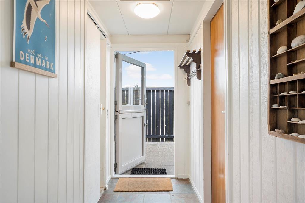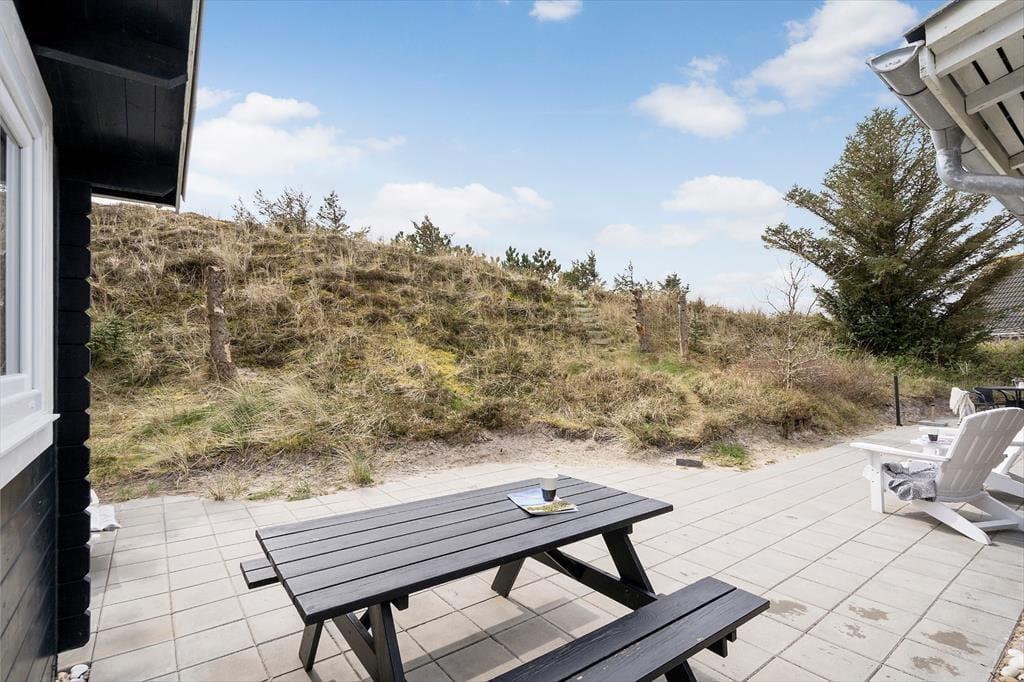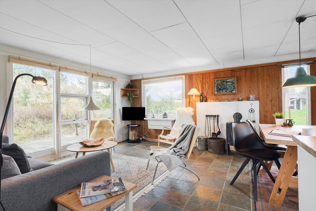 Det udendørs driverliv kommer til at udspille sig i ugenerede omgivelser, for terrassemiljøet skærmes ikke bare af sommerhuset og annekset, men også af naturgrundens klitter. Det giver dig ikke bare læ, men også noget kønt at kigge på, når du åbner øjnene efter dagens middagslur – og hvis du vil trække frisk luft og strække kroppen, kan du tage trinnene op på klittoppen, hvor du kan kigge ud over Houvig, mens du rigtigt vågner. Der er ud mod vejen god plads til at parkere.