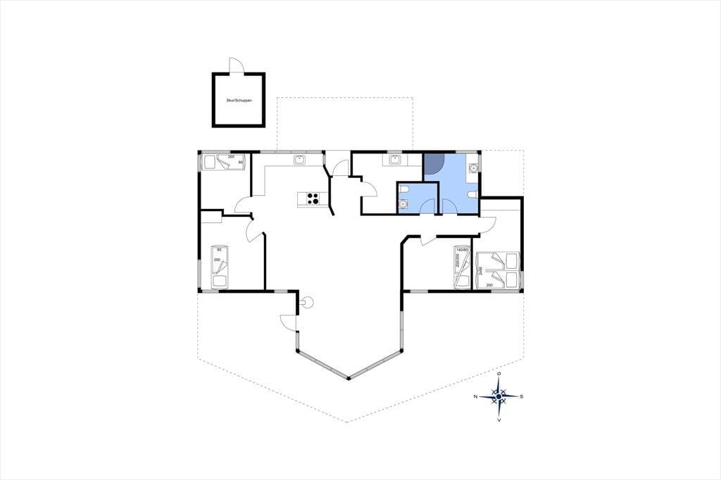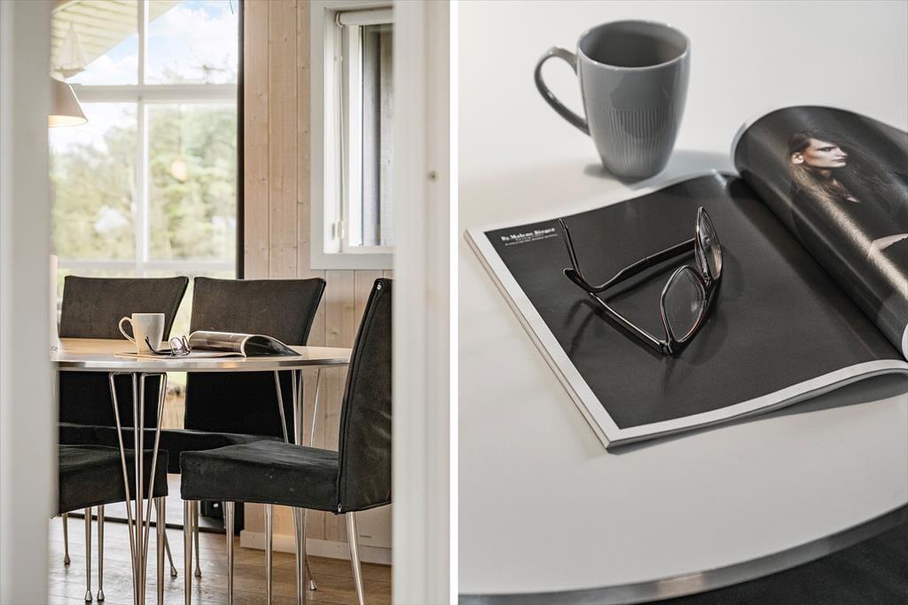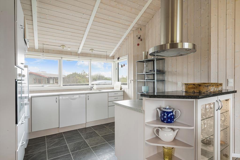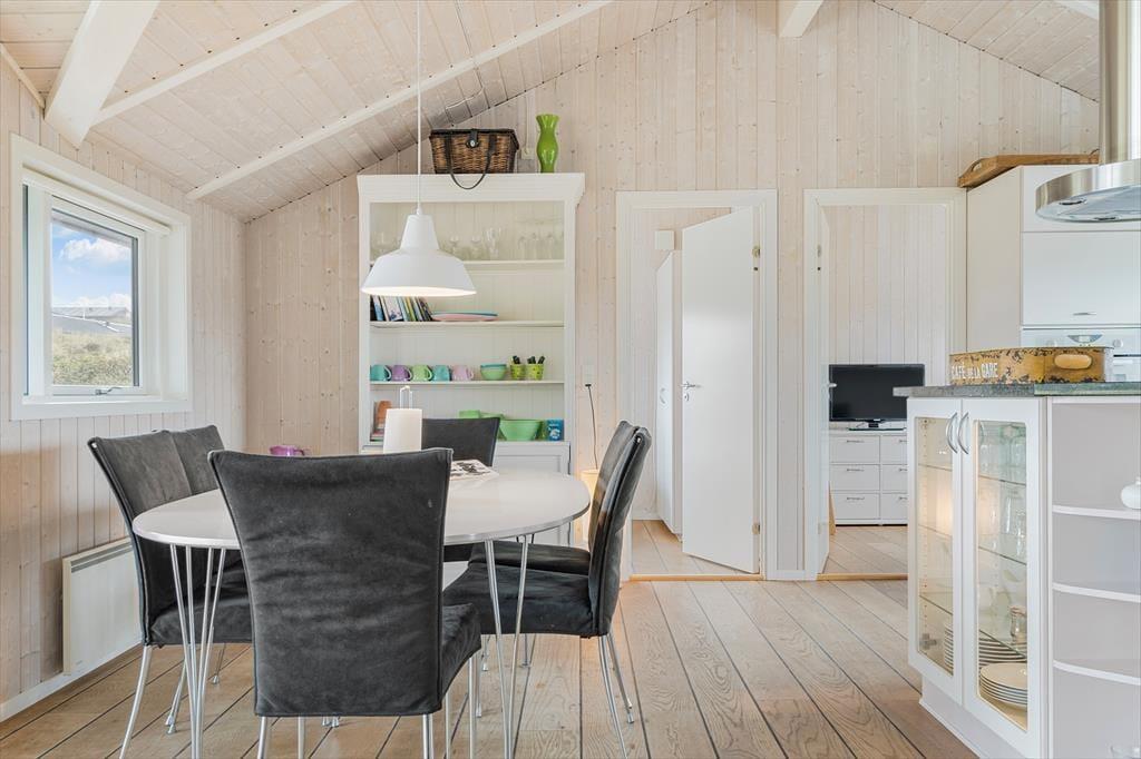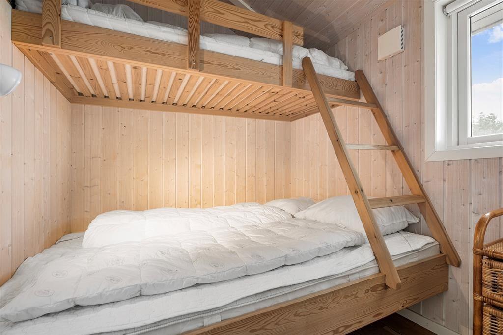 Sommerhuset er opført i 2005, måler 110 m2 og har en velfungerende planløsning til seks personer. Store vinduer inviterer dagslyset indenfor, og det hyggelige møblement, kiploftet og det flotte skibsgulv er alt sammen med til at skabe en rar og indbydende atmosfære. Stuen er udstyret med en brændeovn, og takket være den åbne forbindelse til køkken er det nemt at smutte hen efter en kop kaffe eller flere snacks, når I slapper af i sofaen med en god film. Et praktisk bryggers, et gæstetoilet og et badeværelse ligger i samme ende af huset. Her er badeværelset især værd at bemærke på grund af det lækre spabad, som kan tages i brug, så snart I trænger til wellness og afslapning. Når natten nærmer sig, kan I se frem til at sove godt på de fire fine soveværelser.