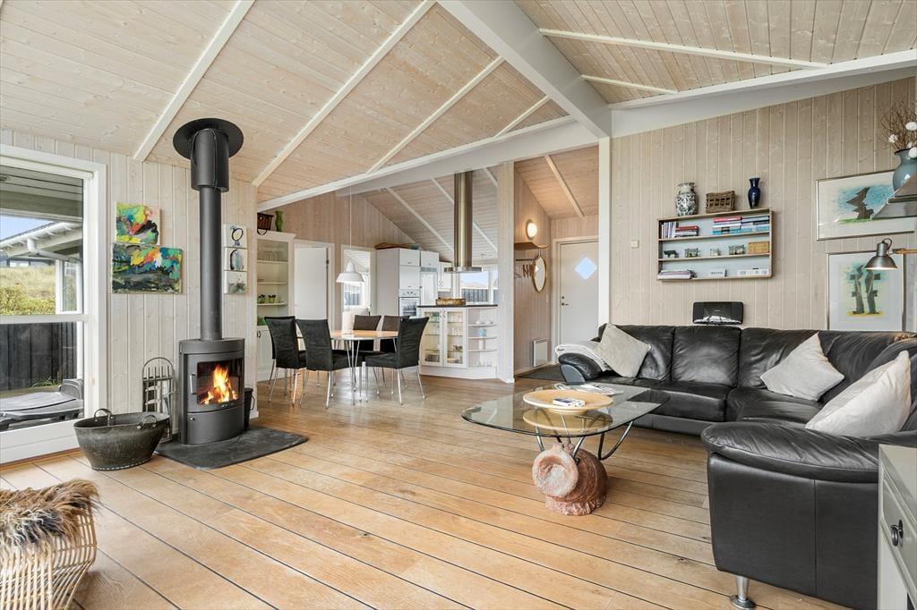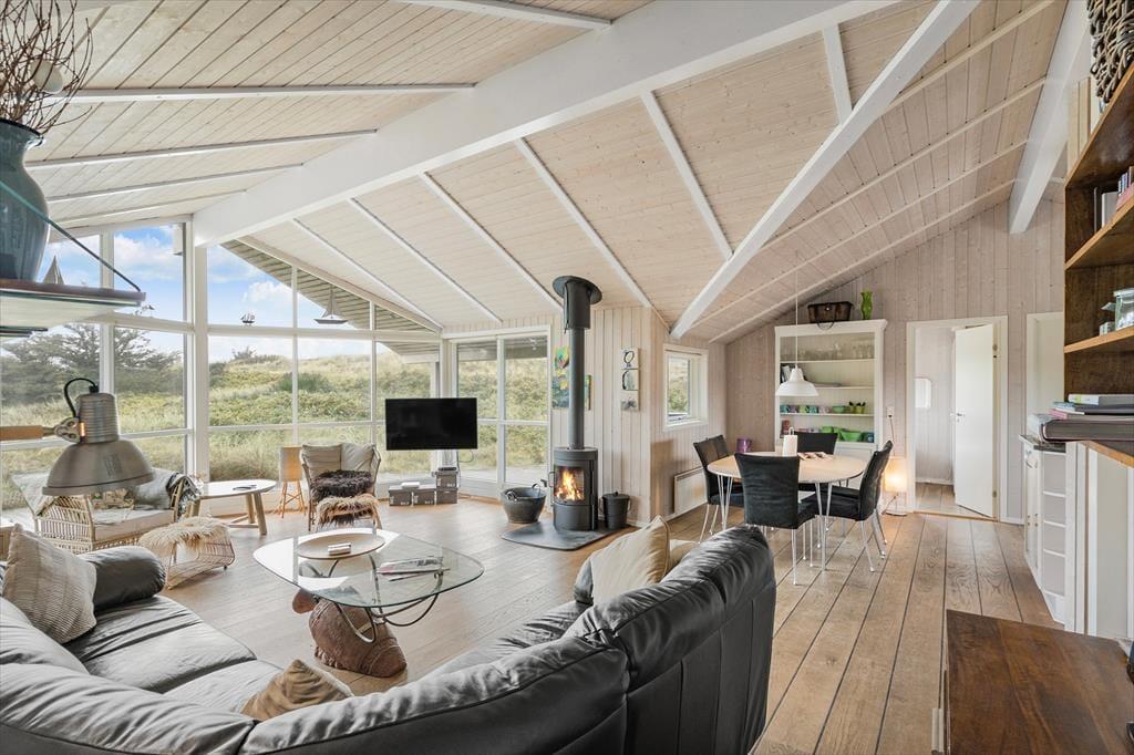 Det føles virkelig som ferie, når I sidder og læner jer tilbage i solen på en af husets dejlige terrasser. Den lukkede terrasse mod øst er god først på dagen, og mod syd ligger der en overdækket terrasse, hvor I også har mulighed for at hygge jer. Om eftermiddagen er det oplagt at rykke over på vestsiden af huset for at nyde livet på den store og delvist overdækkede træterrasse – her kan I endda kigge ud på jeres egen naturgrund og se solen, når den går ned bag klitterne.