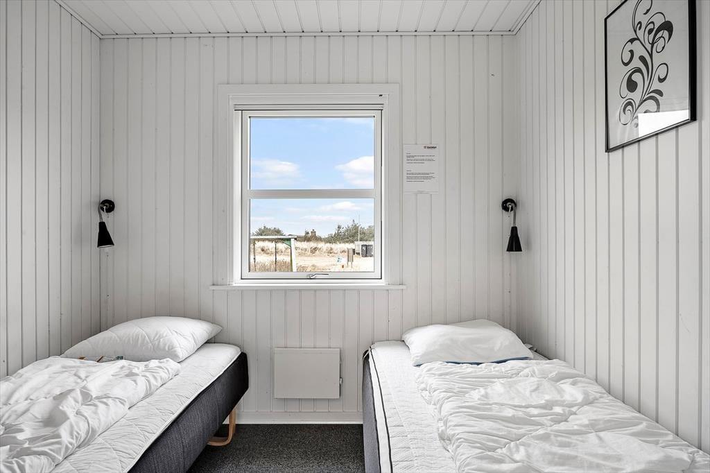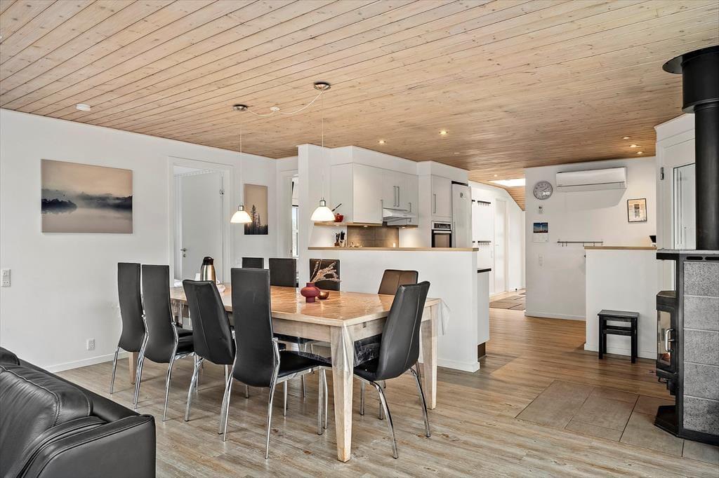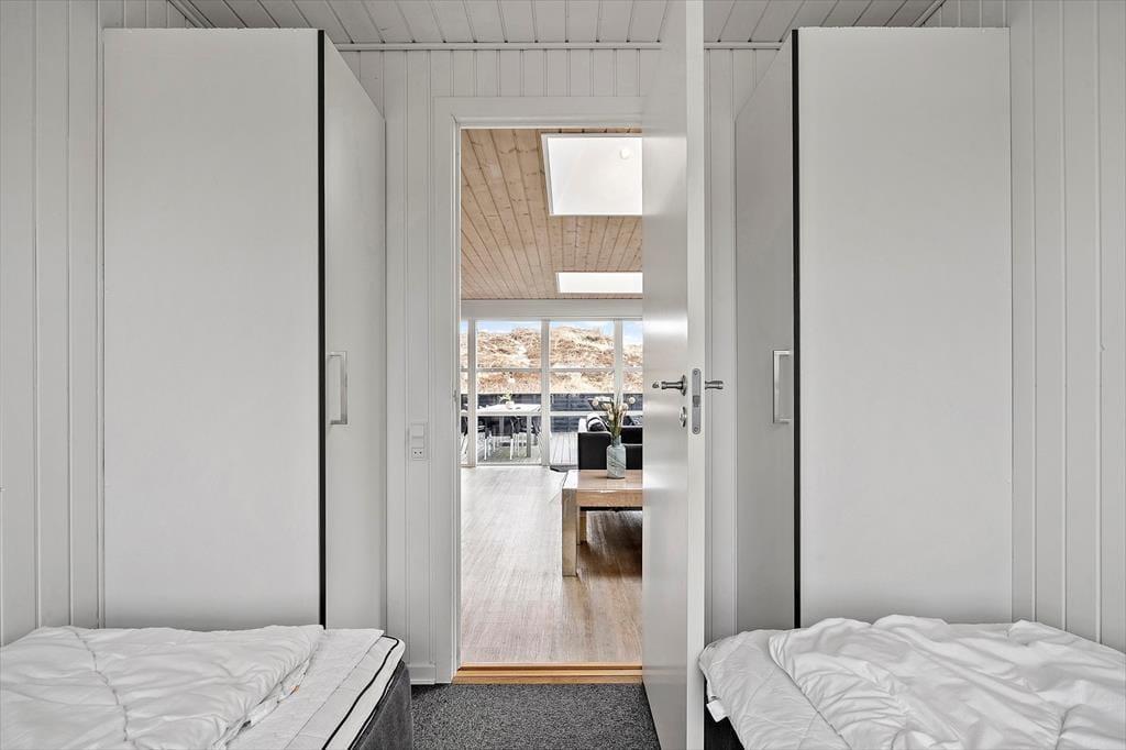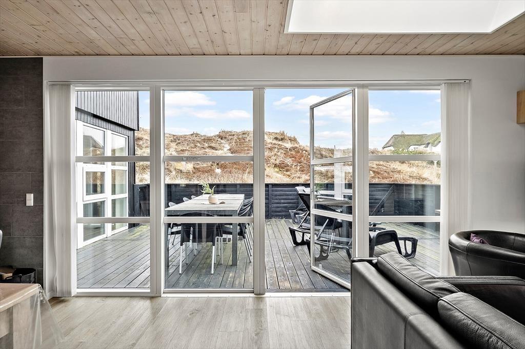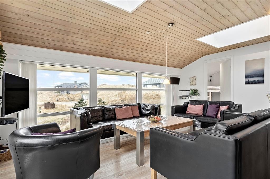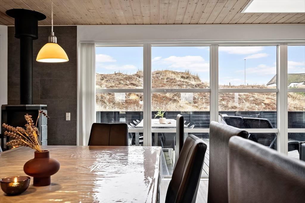 Indenfor bliver du mødt af en lys og indbydende atmosfære, hvor der er tænkt på både komfort og samvær. Opholdsrummet indbyder til lange aftener med brætspil, gode grin og måske en stille stund foran brændeovnen, mens vinden rusker i klitterne udenfor. Her er plads til at være sammen – og til at trække sig tilbage, når det er det, ferien kalder på.