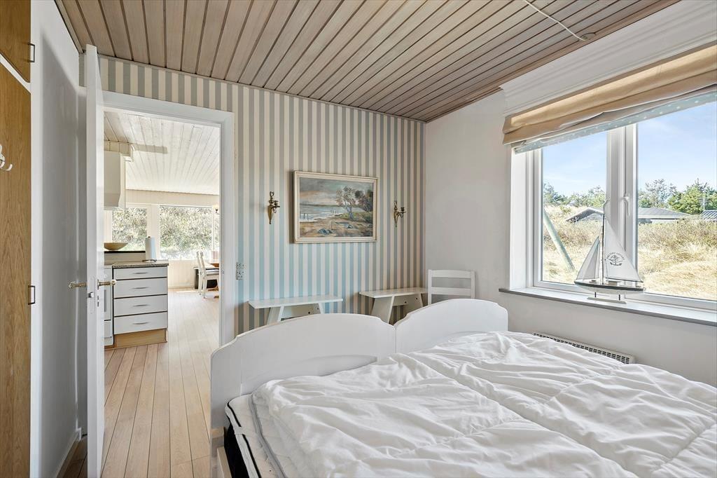 Dette veldisponerede sommerhus til seks personer er et dejligt sted at holde ferie for hele familien. Både børn og voksne kan nyde livet i den hyggelige stue og på den kuperede naturgrund, og mon ikke alle vil sætte pris på at have bare 450 meter til Vesterhavet og Houvigs lange, brede sandstrand.