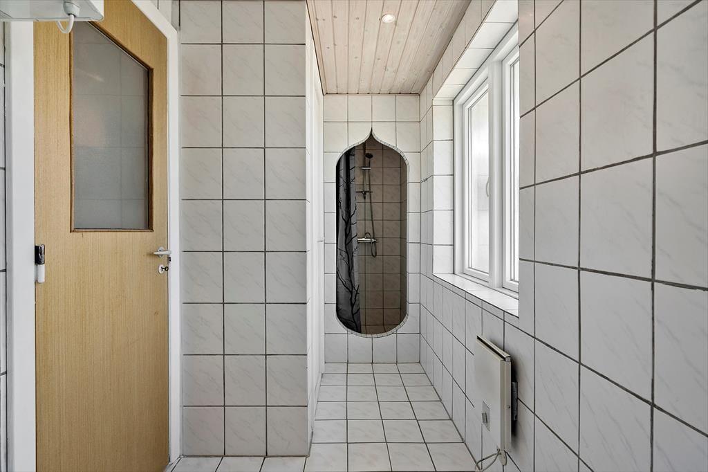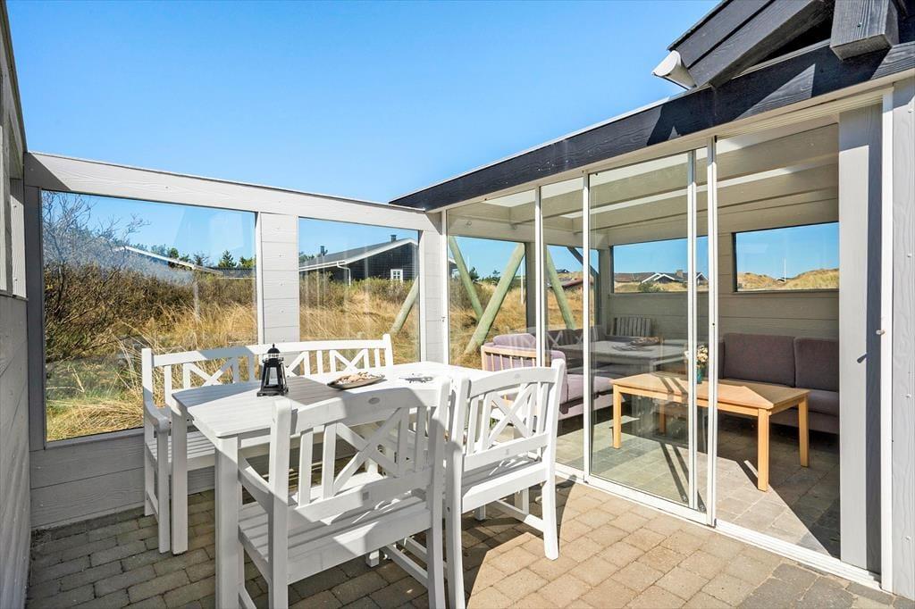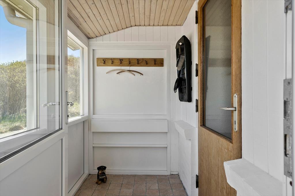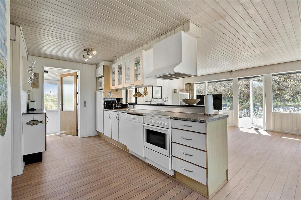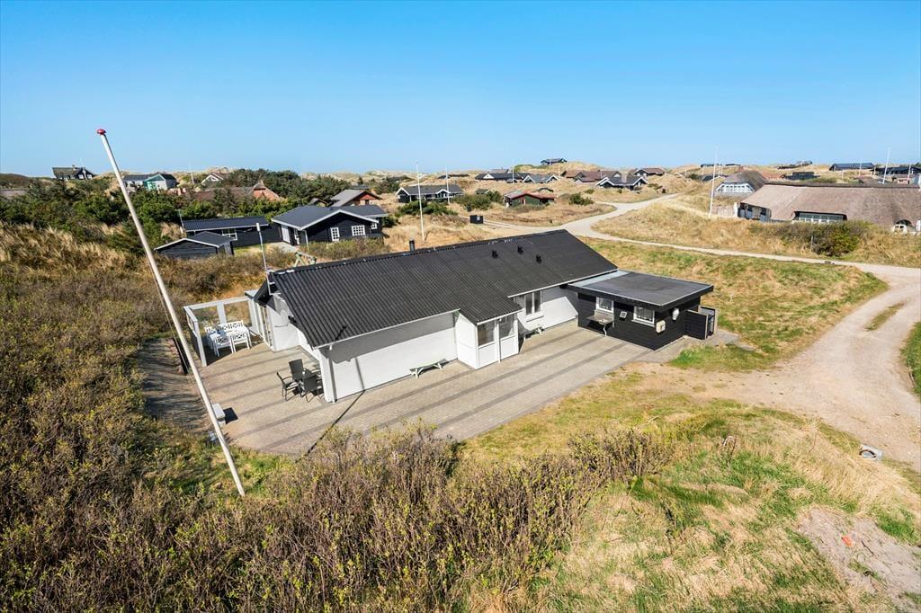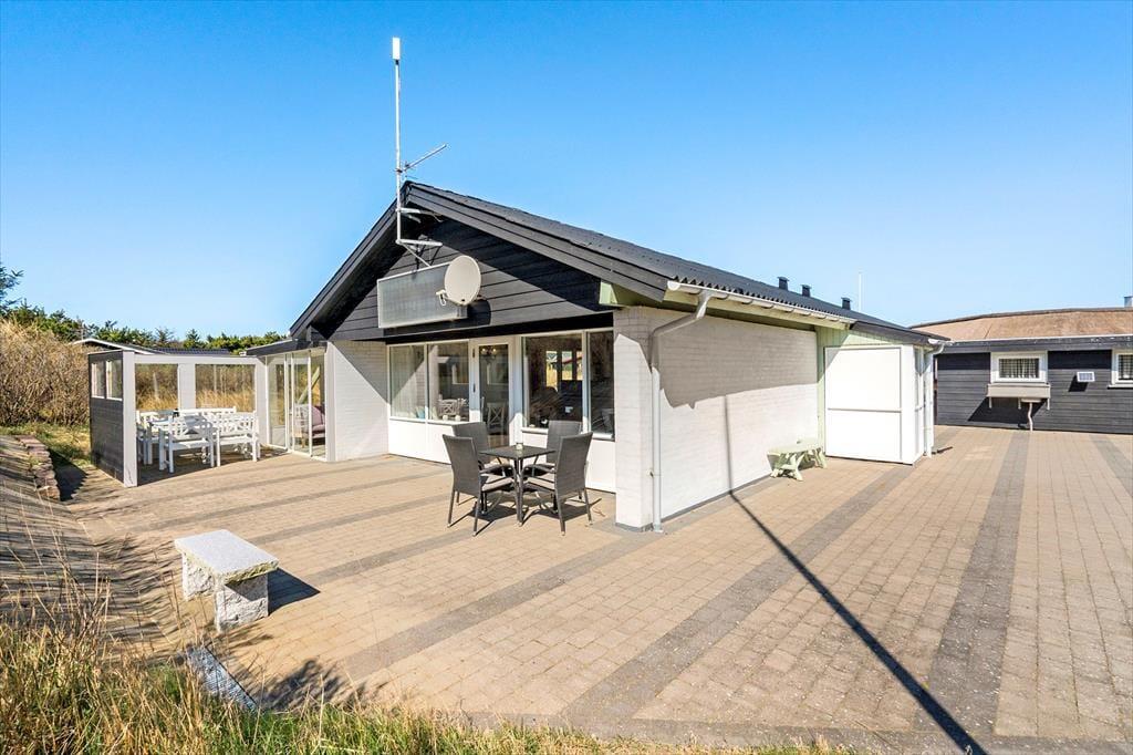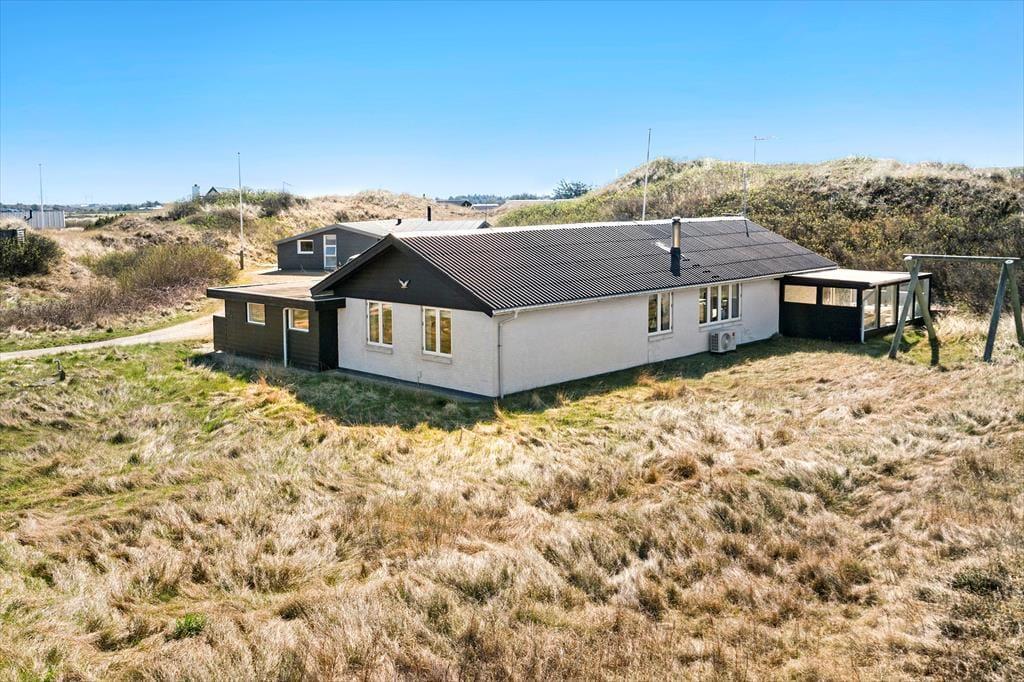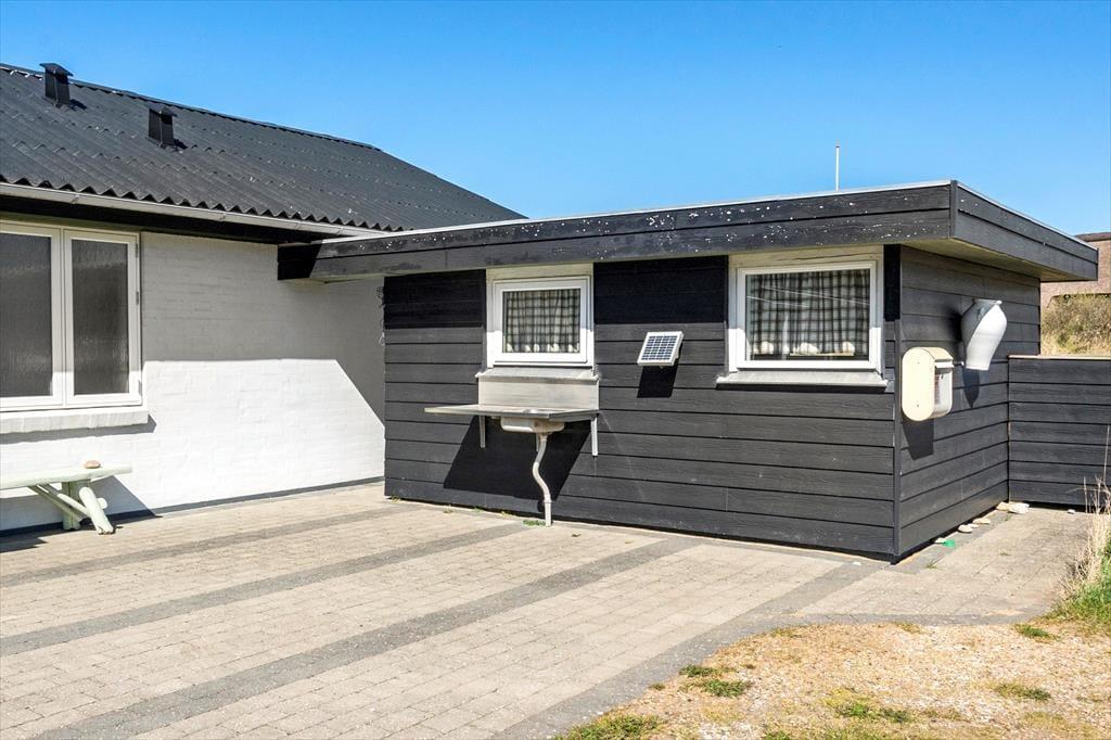 Både de allermindste og de lidt større børn kan se frem til at hygge sig ude i det fri på den kuperede naturgrund. For eksempel kan I bestige den nærmeste klit for at nyde havudsigten fra toppen. Familien kan også hygge sig uforstyrret på græsset eller terrassen, og der er både gyngestativ og sandkasse til rådighed. Mod vest er fliseterrassen skærmet godt af for vinden, og en del kan lukkes helt med skydedøre, så den minder om en udestue. Ved skuret finder I en fiskerenseplads, som I kan benytte, hvis I vender hjem fra fisketuren med et bidrag til aftenens grillmåltid.