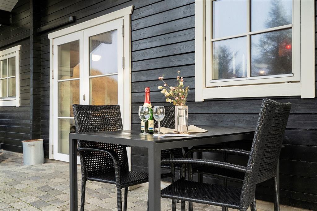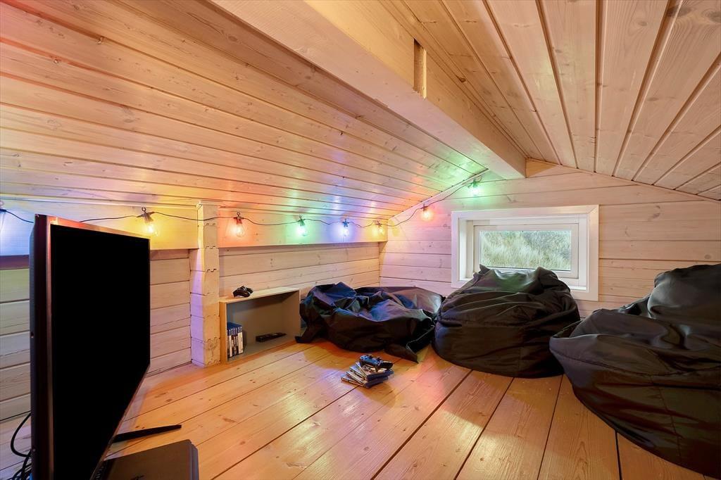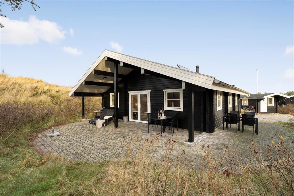Udendørs kan I nyde den vestvendte terrasse, som ligger godt i læ mellem klitter og hybenbuske, perfekt til afslapning og grillmiddage. Fra klittoppen får I en fantastisk udsigt over området, og stranden ligger kun 450 meter væk, hvilket gør det nemt at tilbringe dagen ved vandet.