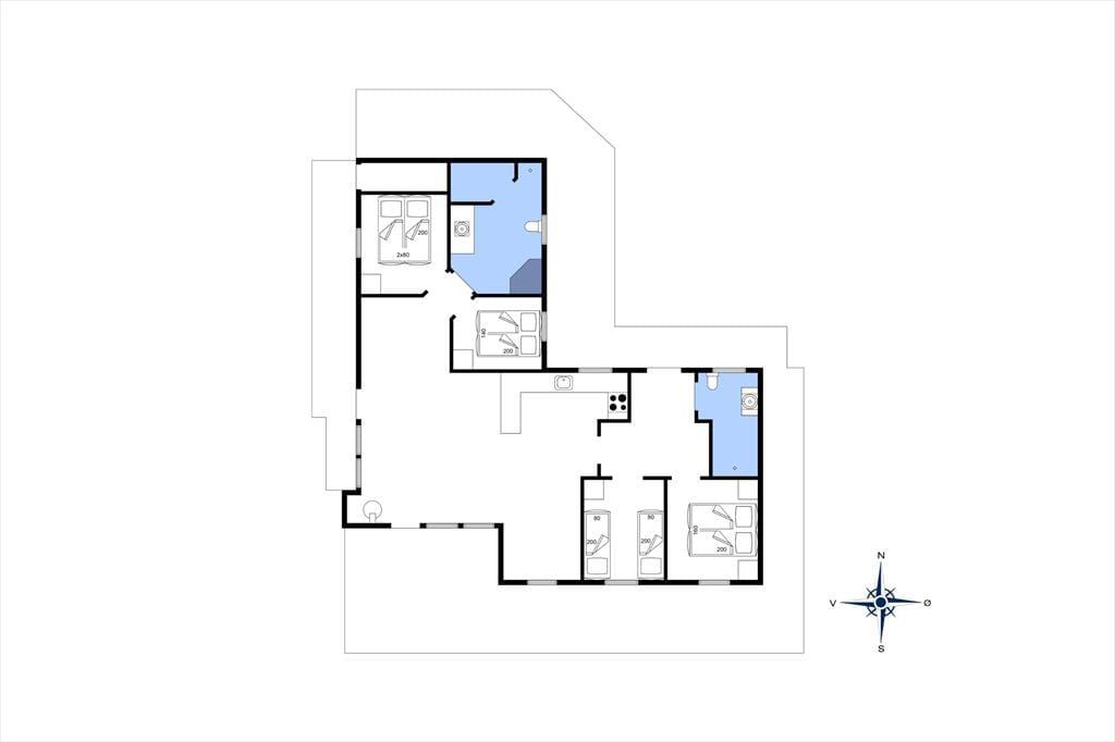 Det 112 m2 store hus giver jer en skøn ramme om feriens små og store begivenheder. Inden døre er der plads til otte personer, der kan overnatte på fire gode soveværelser – og de er endda praktisk fordelt i to soveafsnit med hver sit badeværelse, så huset passer ideelt til to børnefamilier. Det største badeværelse er ikke bare udstyret med vaskemaskine, men også spabad og sauna, så her kan I både klare tøjvasken og skrue op for feriens wellnessfølelse. Centralt i huset ligger stue og køkken samlet, og her sørger et stort vinduesparti mod vest for, at I kan kigge lige ud i det smukke klitlandskab. Brændeovnen kører et godt parløb med elradiatorerne, hvis det er køligt udenfor, og hvis I får nok af yatzy, krydsogtværser, bøger og hyggesnak, er der både parabol-tv og god wi-fi-forbindelse inden døre.