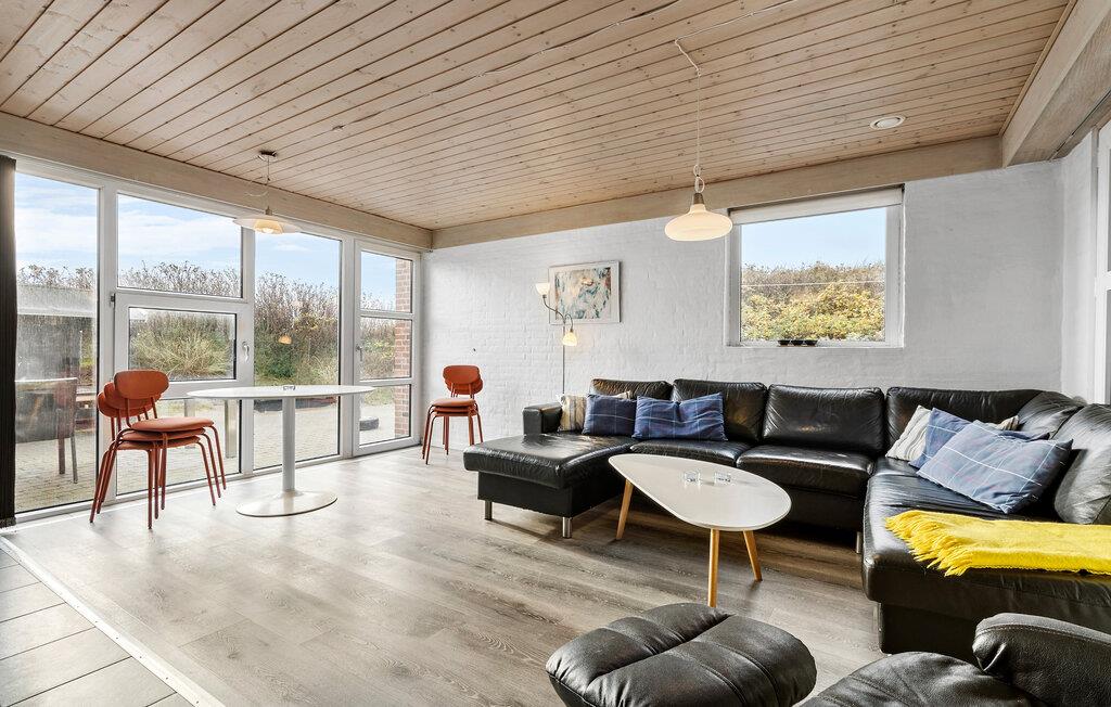 Glæd jer til en afslappende ferie i fantastiske omgivelser. Dette velindrettede feriehus har nemlig en forrygende placering på en dejlig grund i klitterne og blot 250 meter fra det brusende Vesterhav. Huset har plads til 10 personer, som kan brede sig i det store hus. Året rundt er huset en god base, for også i vintermånederne kan jeres børn få timevis til at gå med at pladske i indendørspoolen, mens de voksne kan læne sig tilbage i spabadet. Stuen giver jer en hyggelig ramme om måltider og rolige aktiviteter, og når solen er fremme venter der en god terrasse, hvor I kan grille.