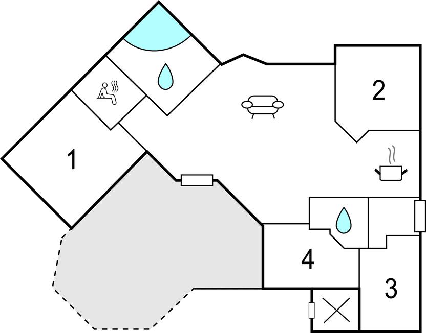 Badeværelse 7m2 (nr. 1) - WC. Varmt og koldt vand. Bruser