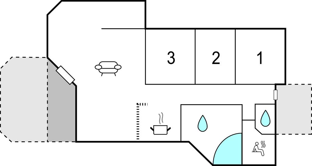 Badeværelse 9m2 (nr. 1) - WC. Varmt og koldt vand. Bruser