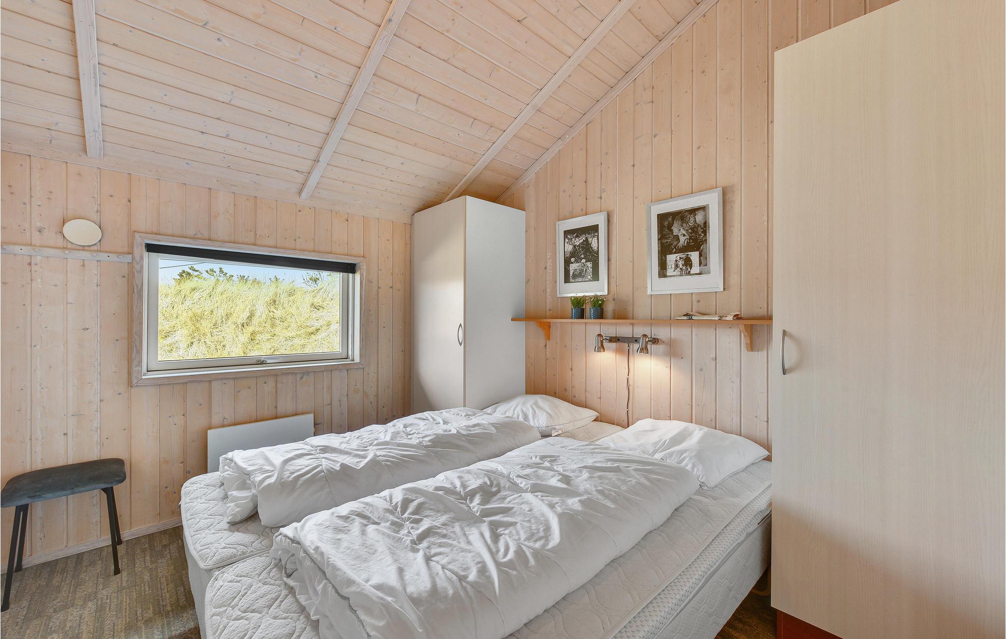Dette hyggelige og velindrettede sommerhus ligger i Houvig, som er et kuperet naturområde, lidt nord for Søndervig og kun adskilt fra den hvide strand og Vesterhavet af en enkelt klitrække.