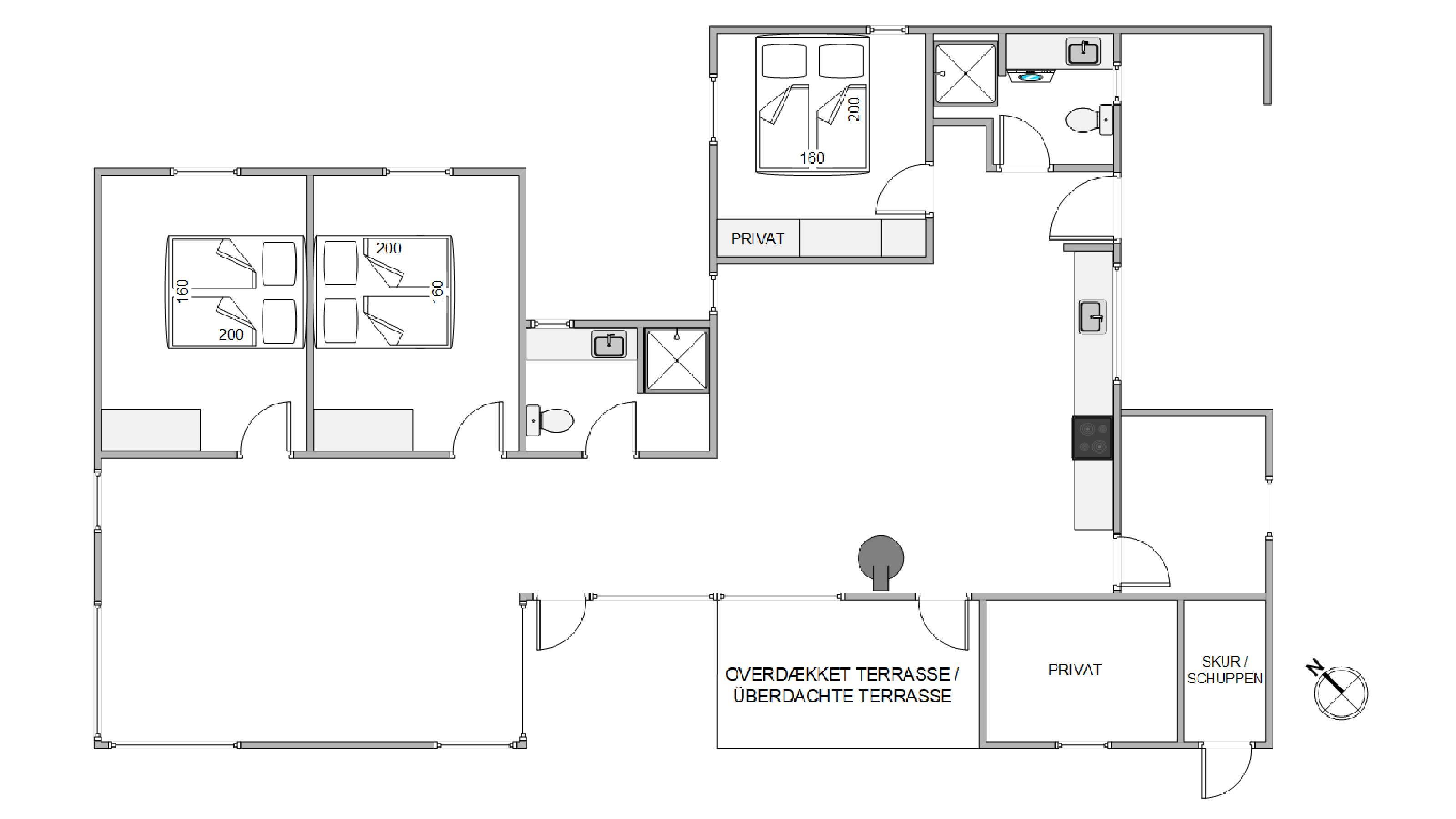De tre soveværelser er komfortable og velindrettede, med gode senge i alle rummene. I feriehuset er der også to badeværelser, begge med bruser hvilket er ideelt hvis I kommer flere til huset.