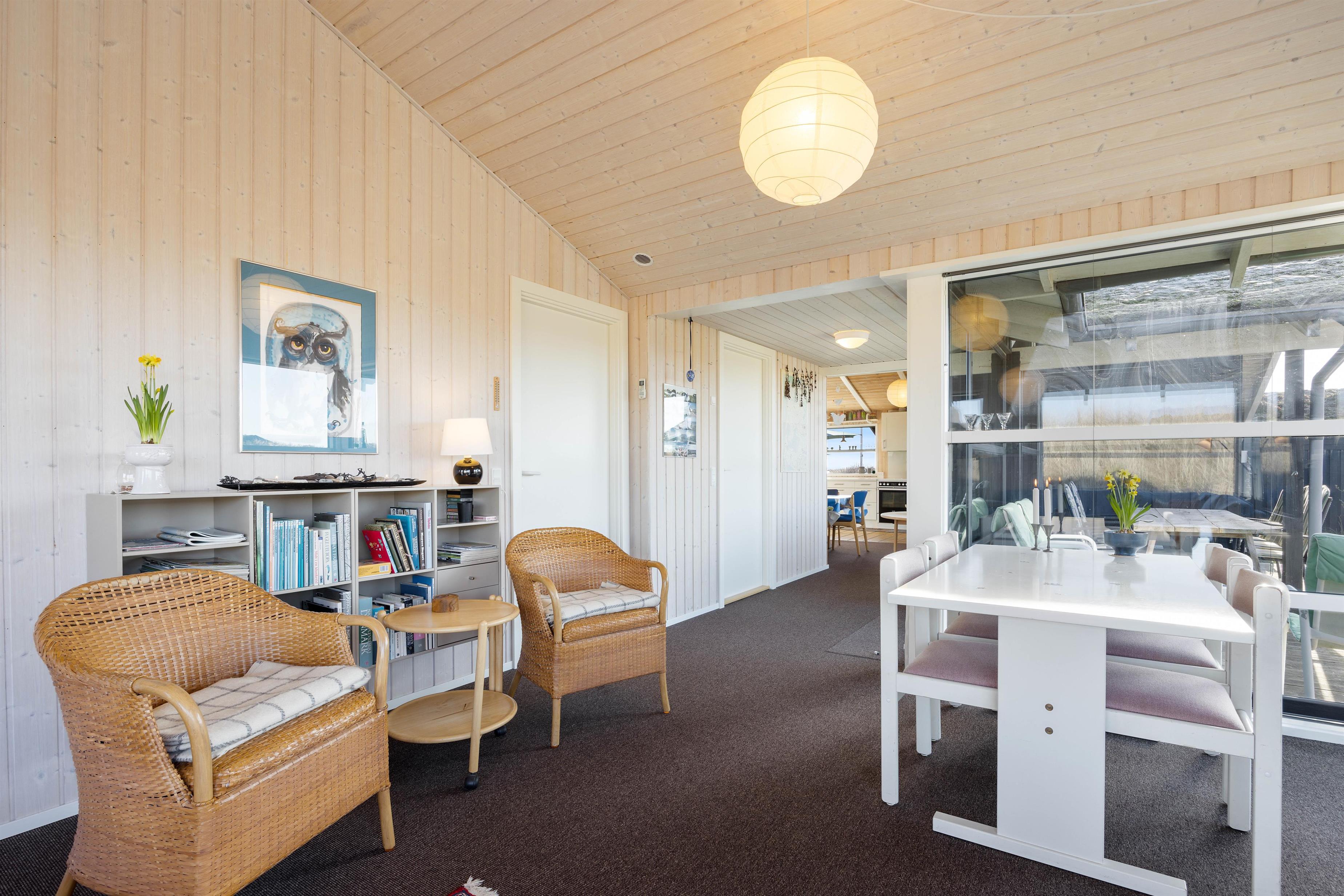 Sommerhuset er indrettet med alt, hvad du behøver for at føle dig hjemme. Stuen er rummelig og indbydende med store vinduer, der giver masser af naturligt lys og en fantastisk udsigt til det smukke landskab udenfor. Der er en behagelig sofa og lænestole, hvor du kan slappe af med en god bog eller se en film på TV'et. Til stuen er også et lille spisebord, hvis nogen ønsker at lade fx. puslespillet ligge fremme, imens der stadig kan dækkes op i det gode køkken der både er med opvaskemaskine og Airfryer.