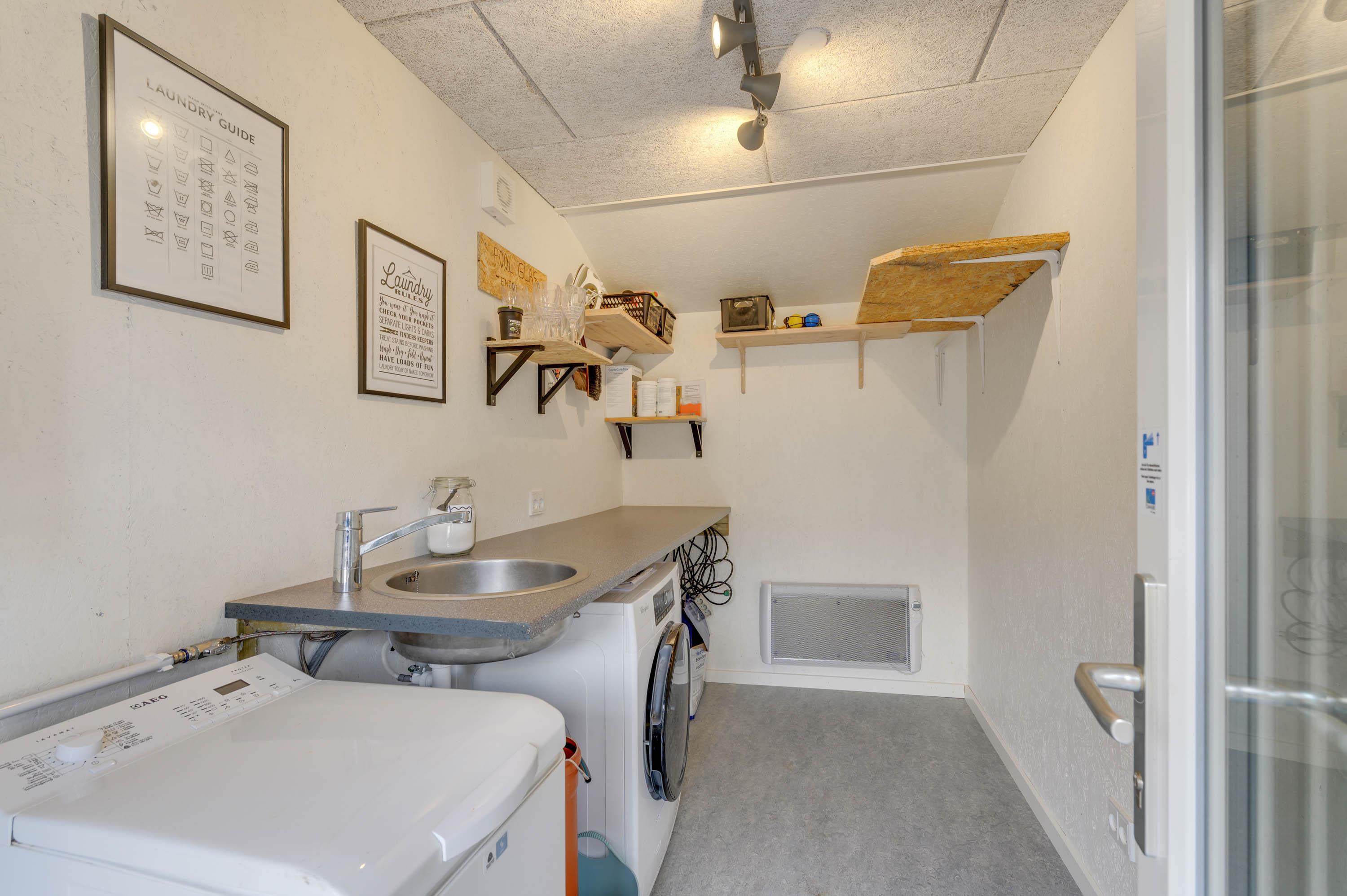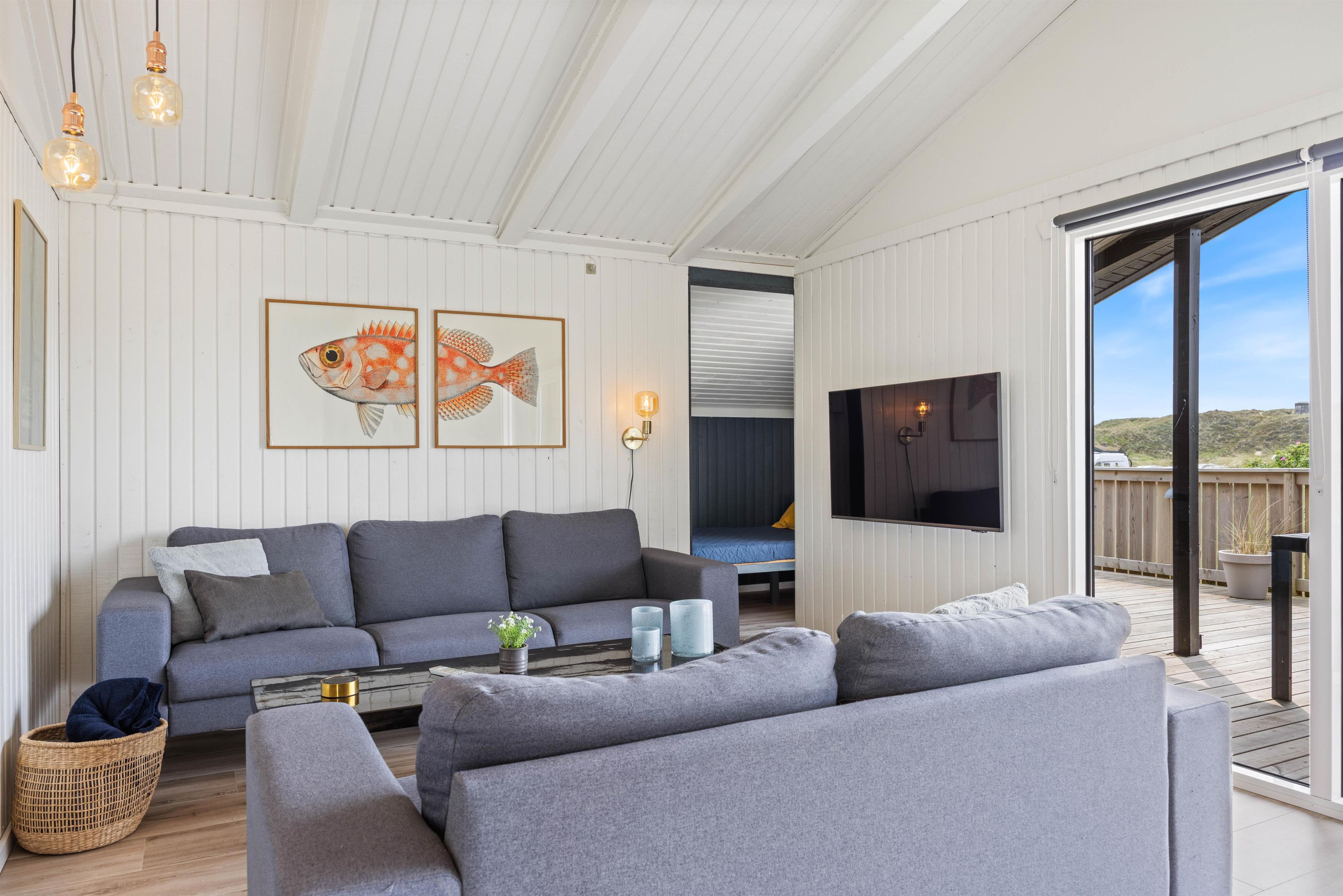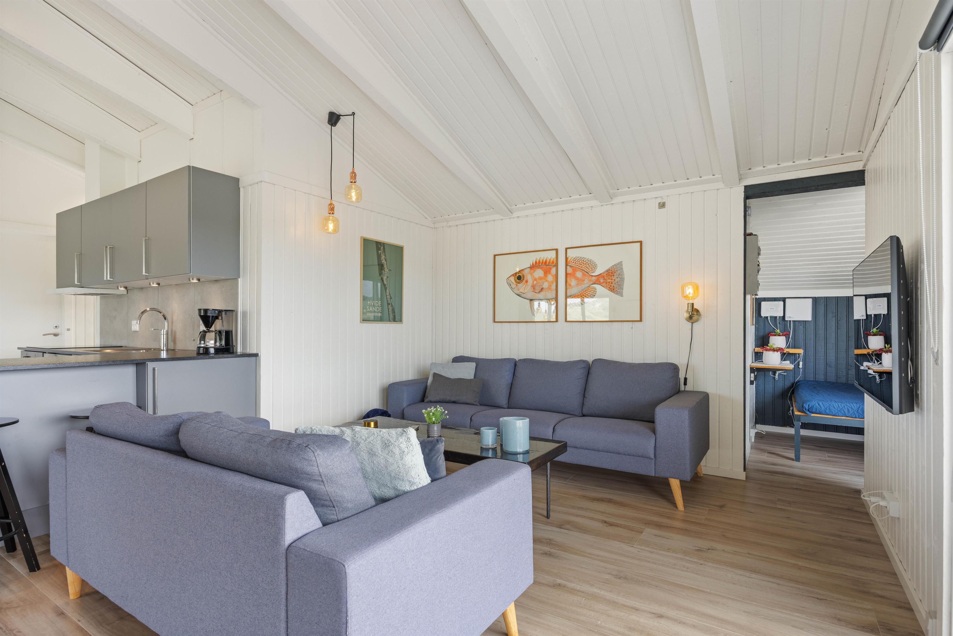 Fra alrummet kan I betragte Houvigs åbne vidder fra sofaen gennem de store vinduer, mens brændeovnens ild knitrer i baggrunden og sender feriestemningen helt til vejrs. En energibesparende varmepumpe sikrer, at I altid har et behageligt indeklima uden de store omkostninger.