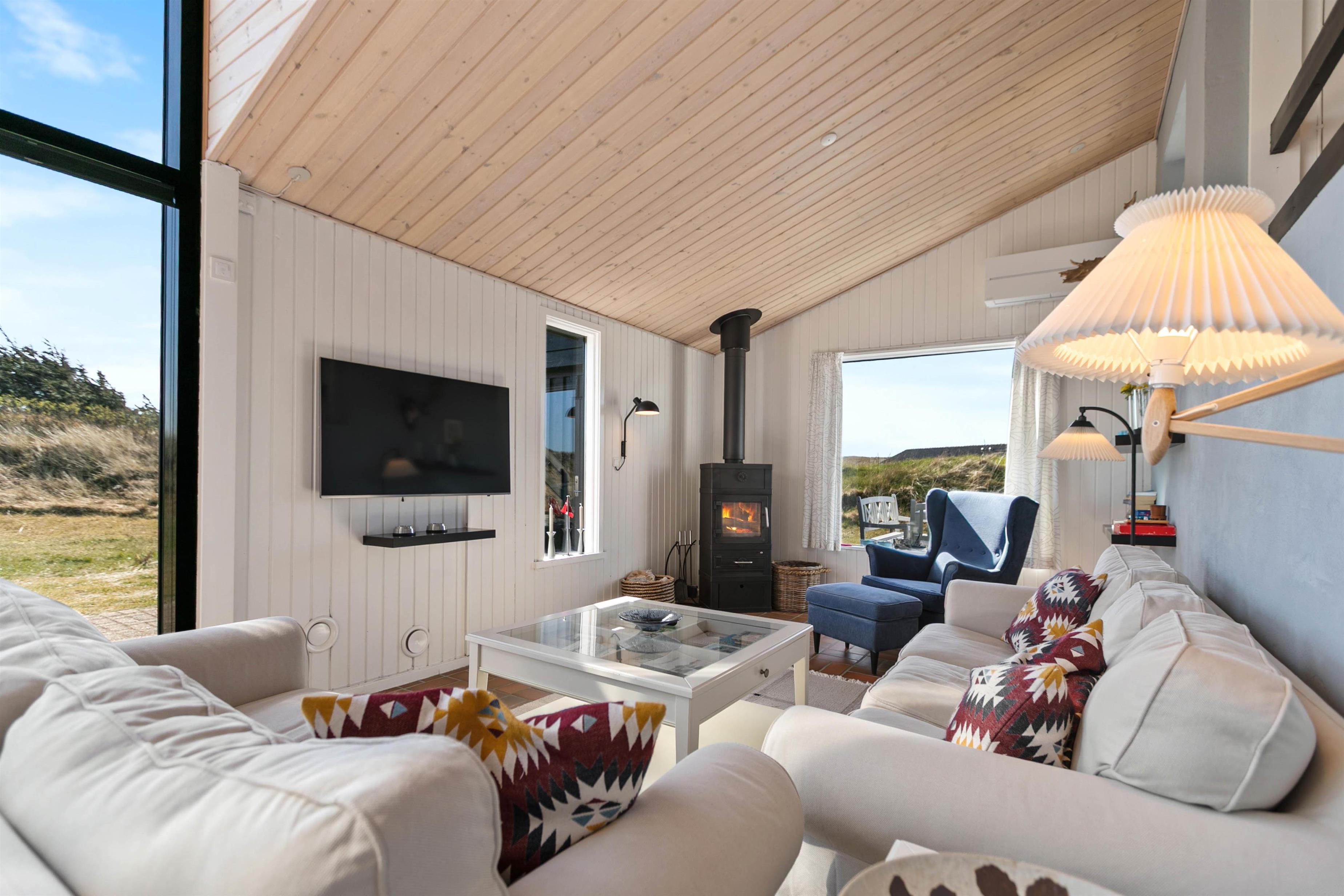 Husets mange store vinduespartier giver jer en fantastisk udsigt ud over klitlandskabet, der omgiver feriehjemmet. Selv på de kolde og regnfulde dage kan I nyde naturen i fulde drag, og med en lynhurtig og stabil internetforbindelse kan I helt gratis streame film på iPad'en og surfe Facebook på en kold efterårsdag.