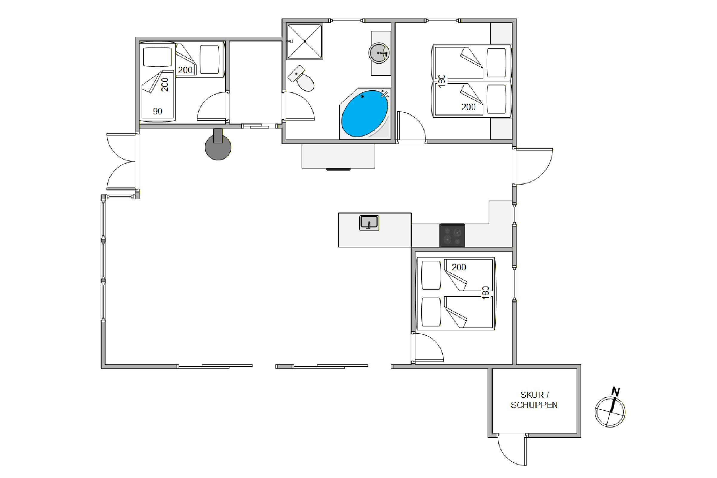 I huset er der god plads til alle familiens medlemmer. I finder i alt 3 gode værelser på adressen, hvoraf 2 værelser er indrettet med dobbeltseng, mens det sidste værelse er udstyret med køjeseng.