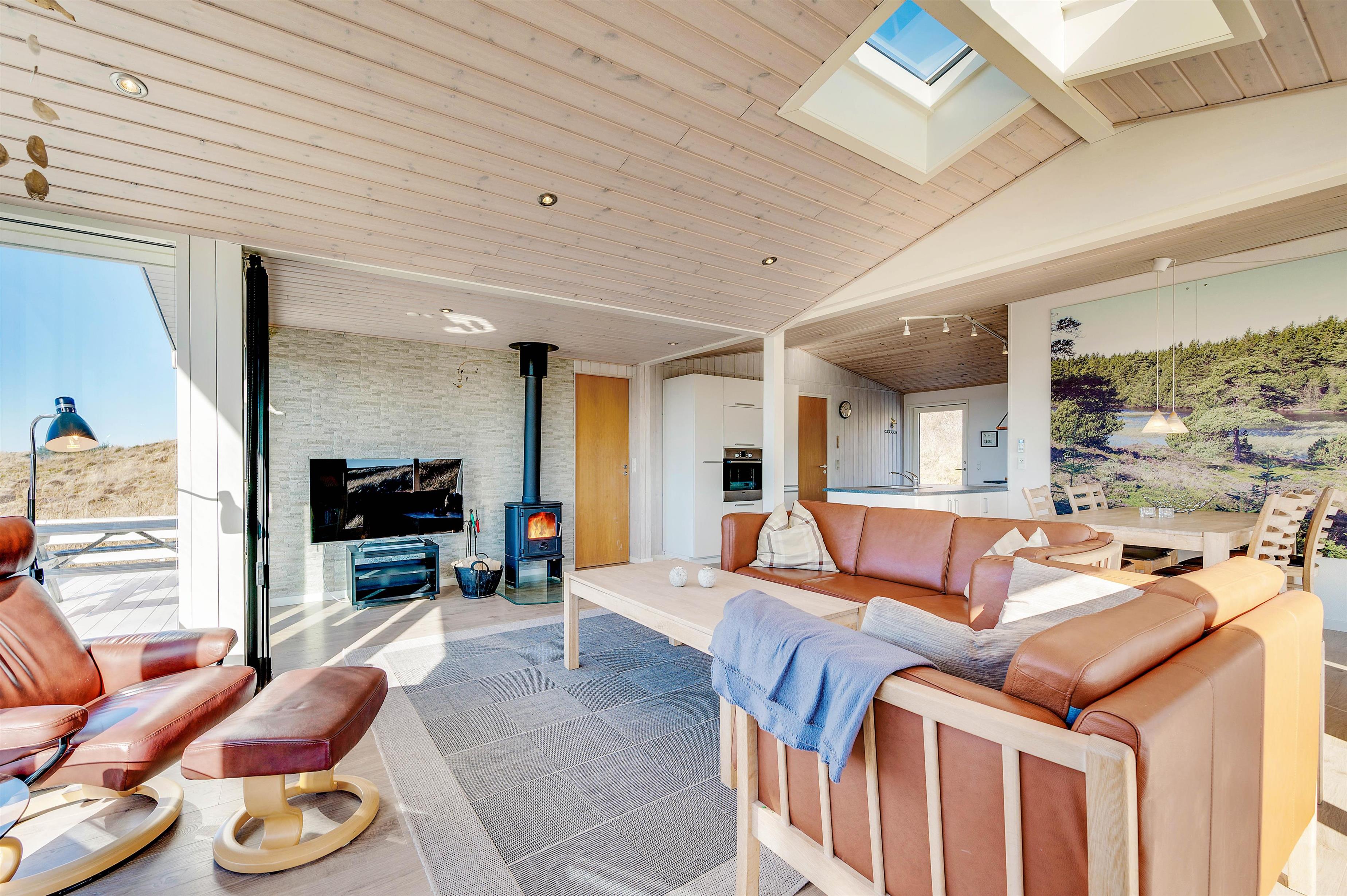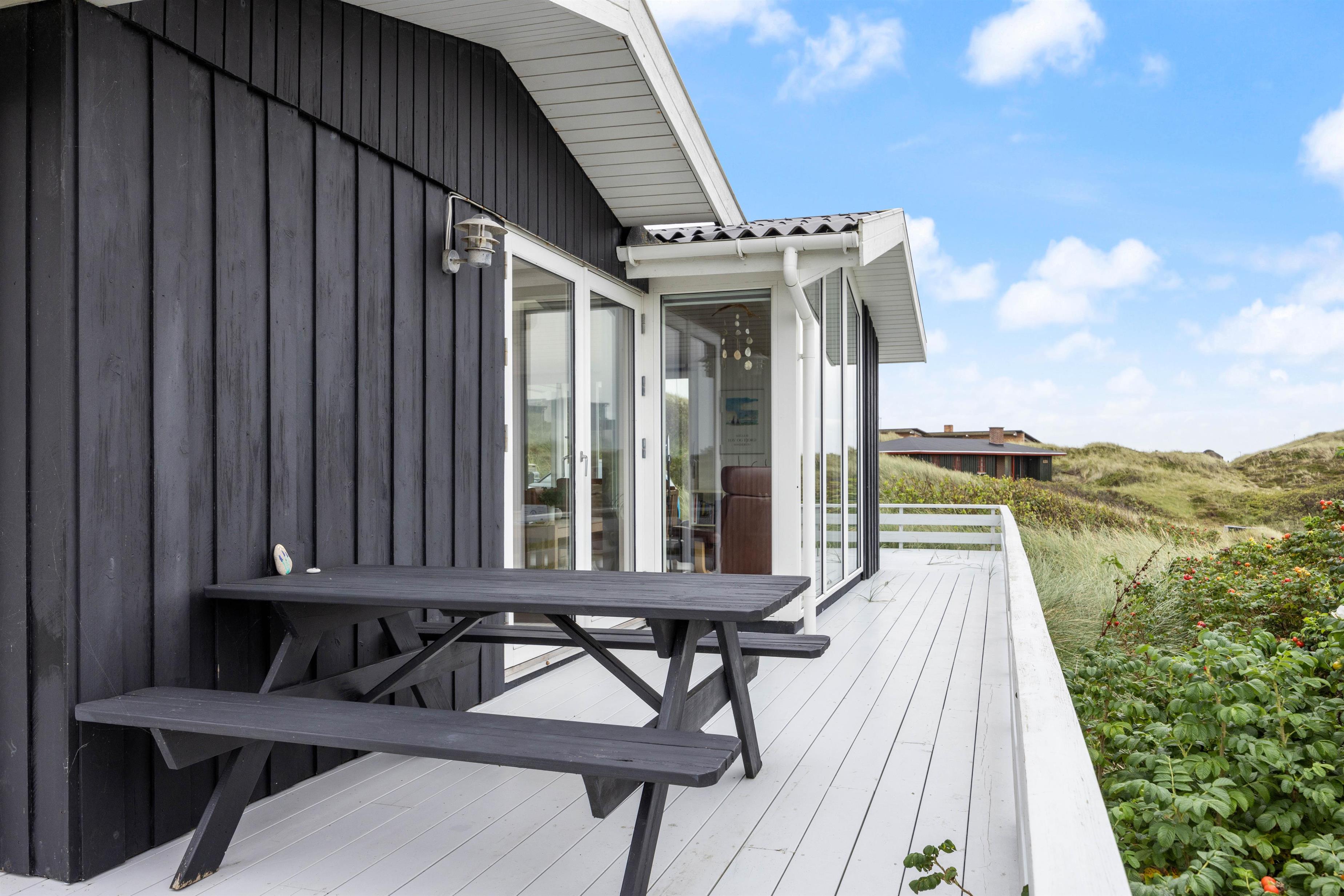 Det flotte sommerhus i Houvig er på mange måder et klassisk sommerhus. Men alligevel skiller det sig ud. Det skyldes ikke mindst den lækre indretning, hvor man virkelig mærker, at der er kælet for detaljerne og kvaliteten. Lige fra de flotte køkkenelementer til de smukke cognacfarvede lædermøbler. Det hele er bare lige en tand mere lækkert end gennemsnittet.