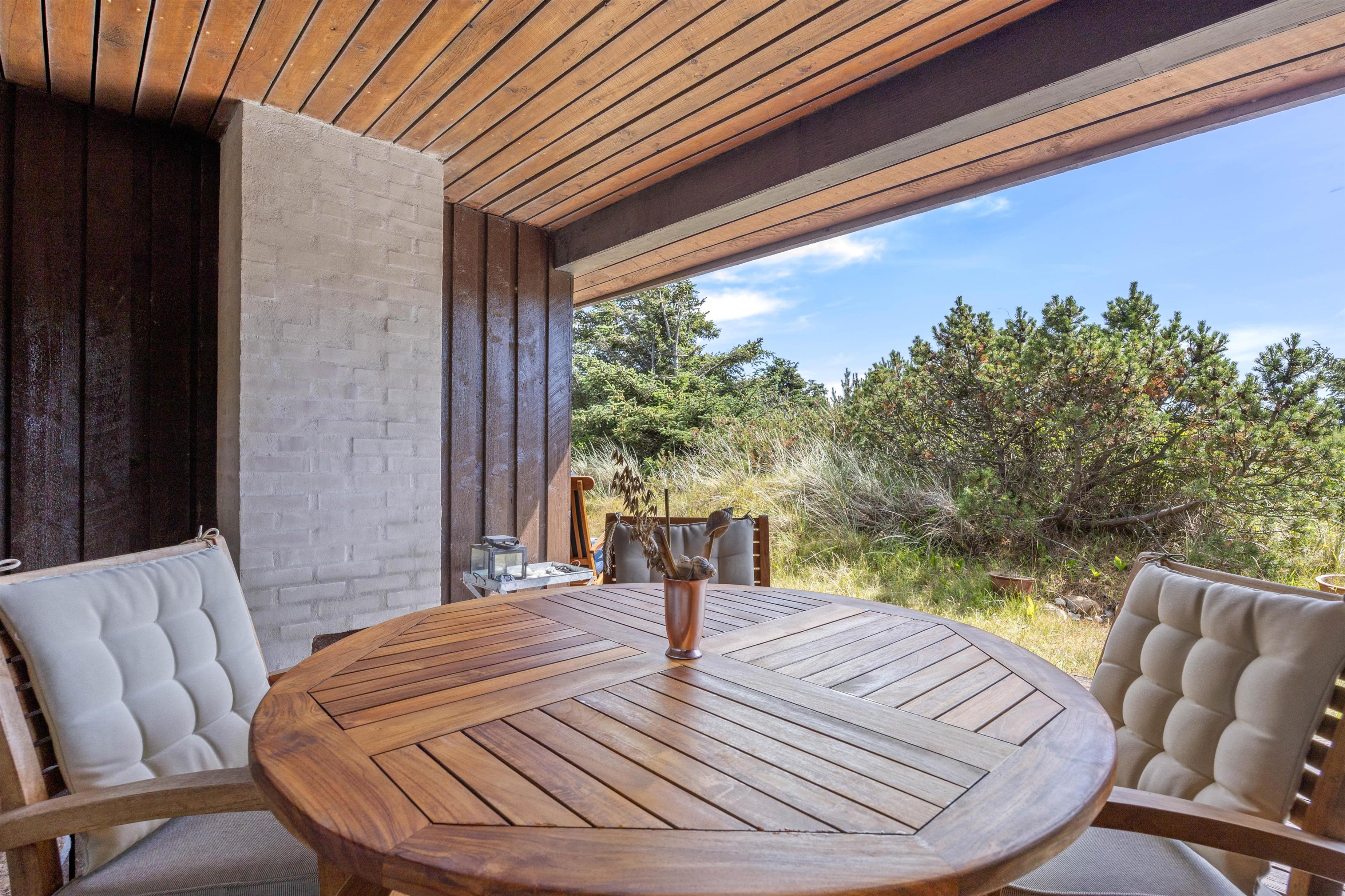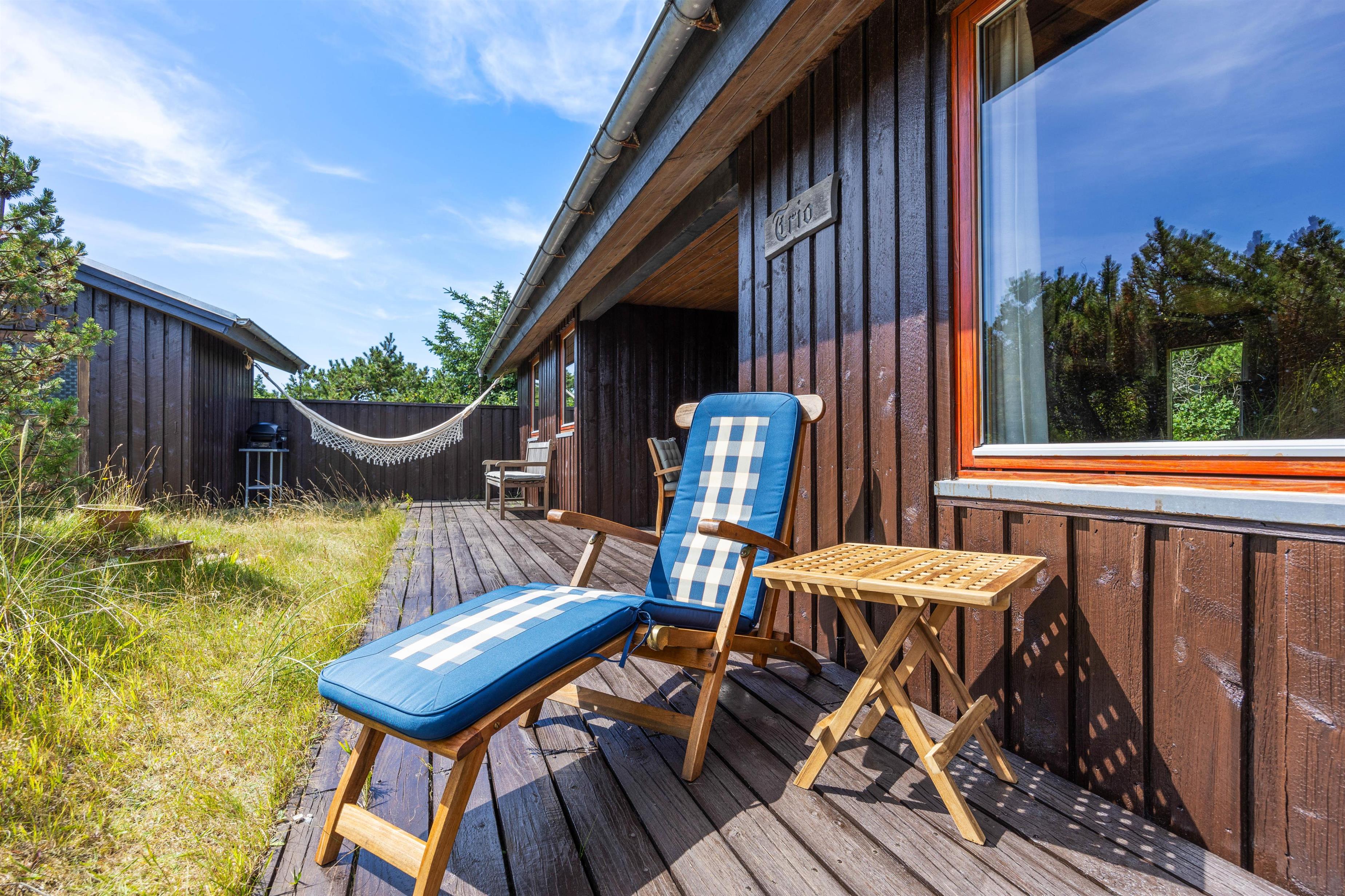 På terrassen i dette feriehus bliver grillaftenen med den tilgængelige gasgrill en oplevelse og den kolde drink om aftenen en sand fornøjelse. Solnedgangen over klitterne og havet kan beundres, og selv om vinden blæser lidt hårdere, er der intet, der forhindrer jer i at solbade på den godt beskyttede og delvist overdækkede terrasse.