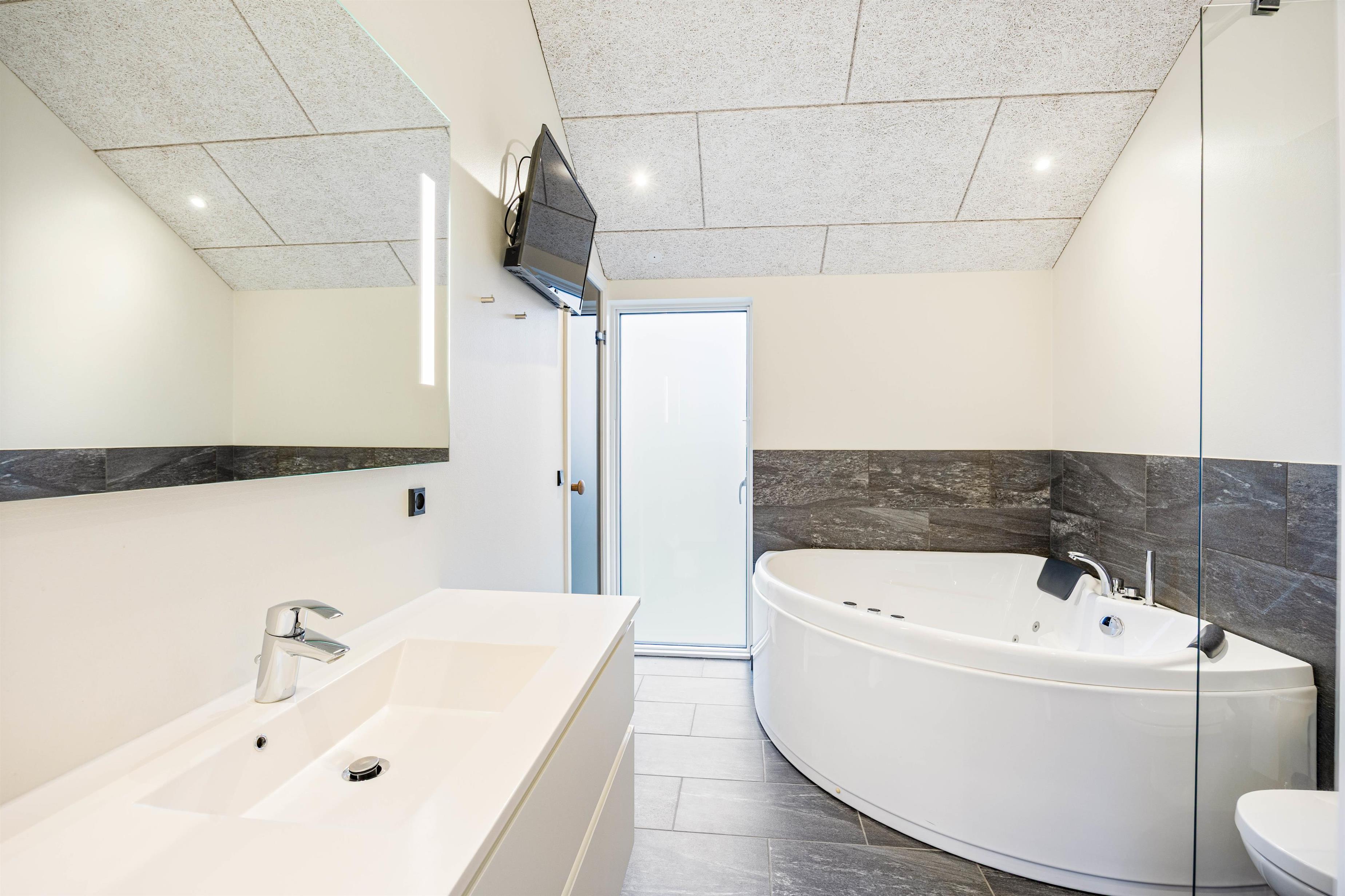 Stilfuld, moderne indretning og wellness-badeværelse med sauna og spabad