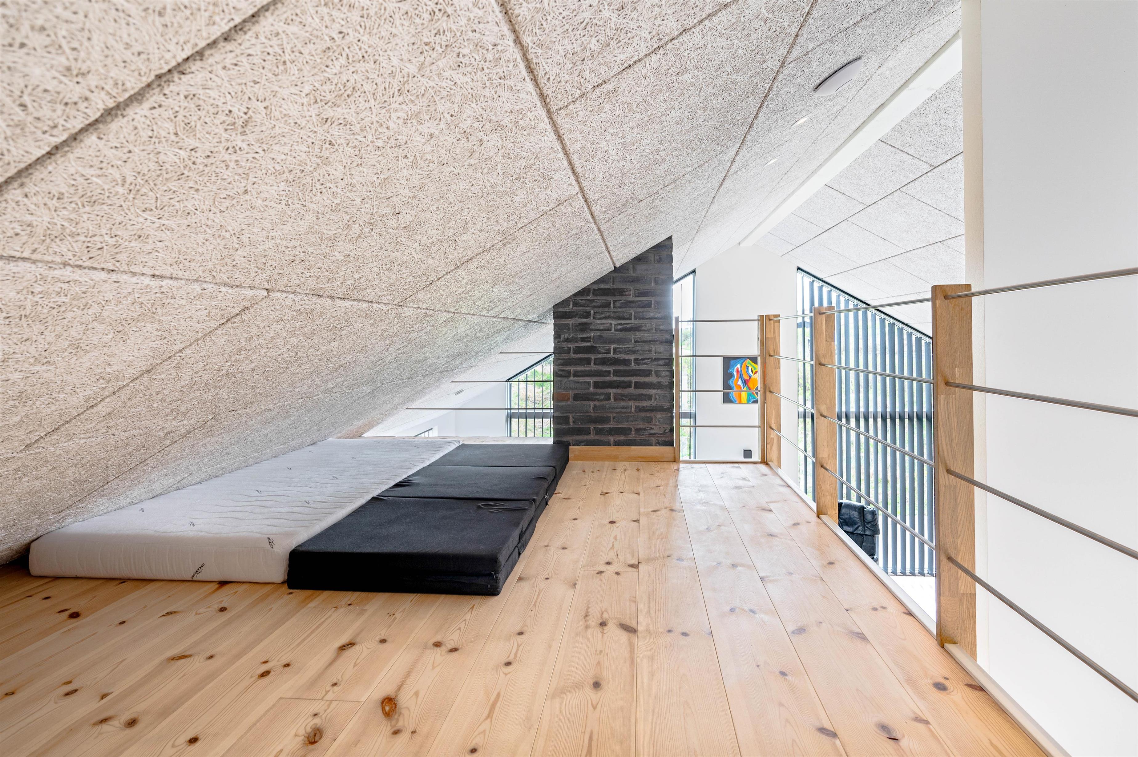 Det største af det de to badeværelser er i sig selv en lille wellnessafdeling. Her er der både spabad og indgang til saunaen – og her er der om nogen mulighed for at slappe af og tanke nye kræfter på ferien. Der er også en hyggelig hems, så hvis I rejser med mindre børn vil det være en oplagt hyggekrog.