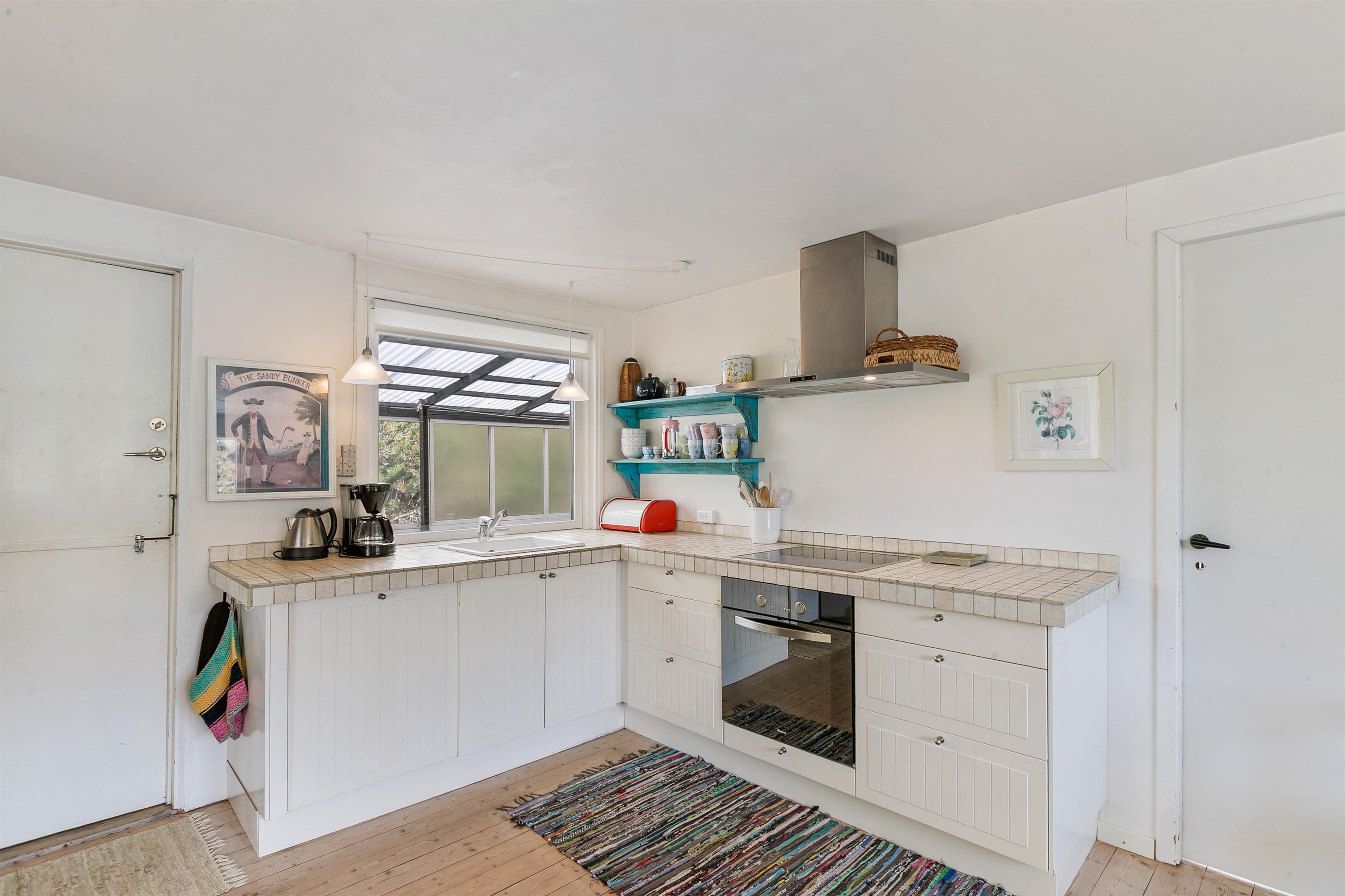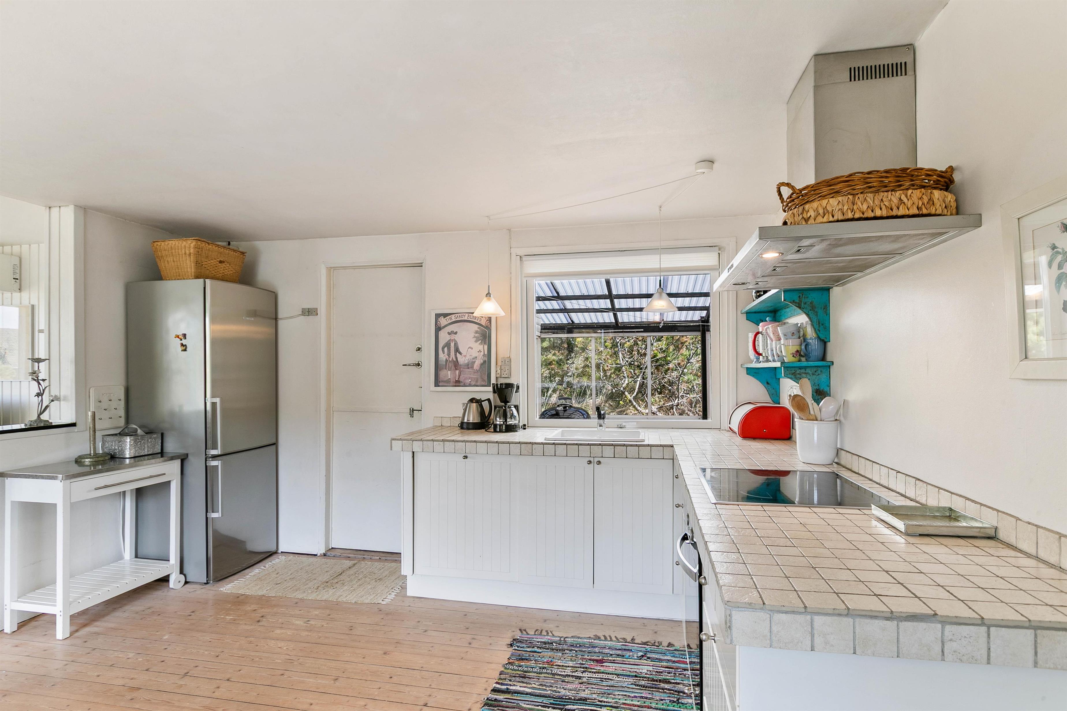 Sommerhusets hjerte er uden tvivl køkkenalrummet og udestuen, som begge har masser af vinduer, der lukker både lyset og naturen indenfor. Her kan I for alvor læne jer tilbage, og eventuelt benytte jer af sommerhusets trådløse internet og følge med I hvad der sker ude i den store verden. Hvis I også ønsker at skrue endnu mere op for den hyggelige atmosfære, kan I tænde op I sommerhusets brændeovn, der med sin dejlige varme tilføjer endnu mere hygge og autentisk sommerhusstemning.