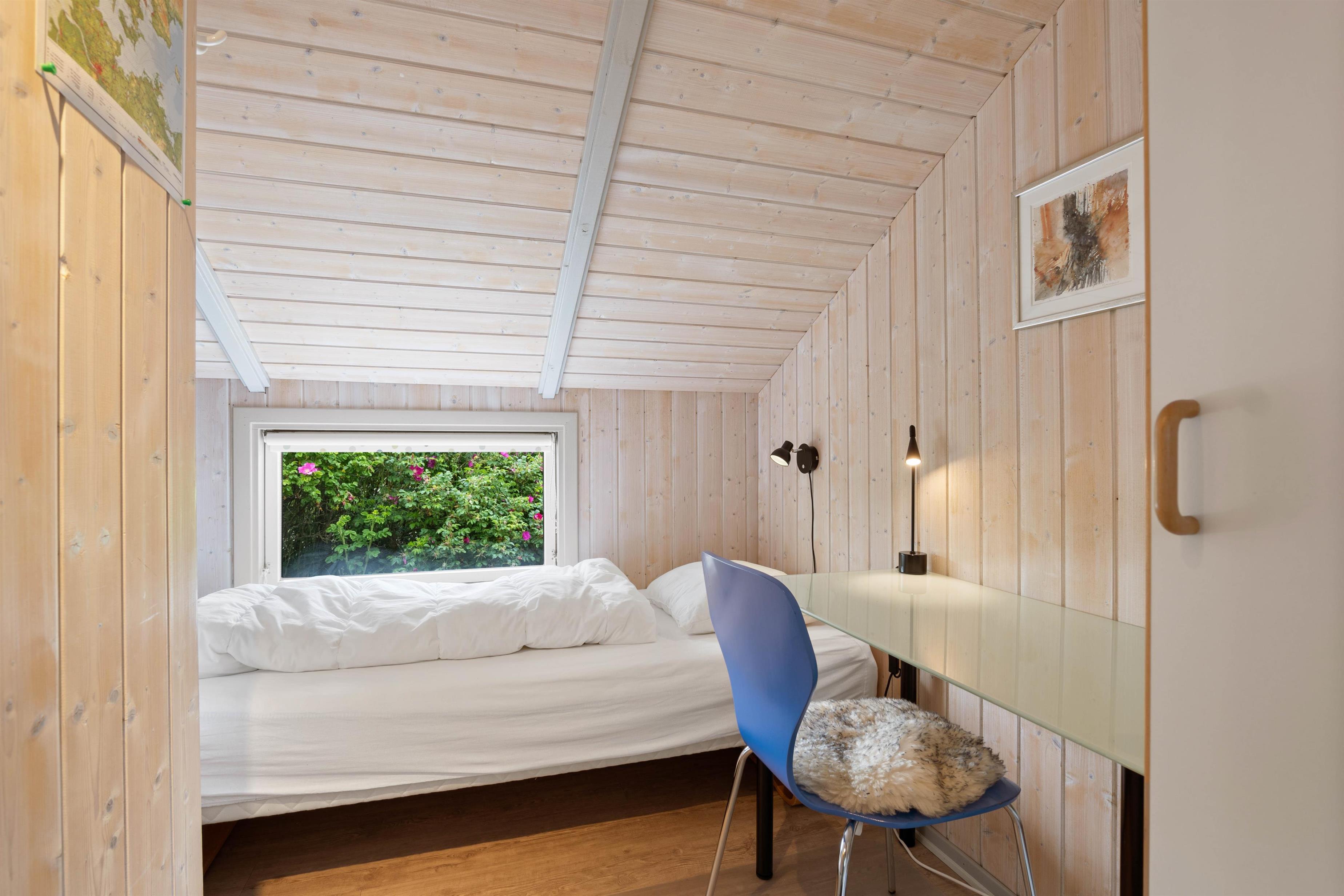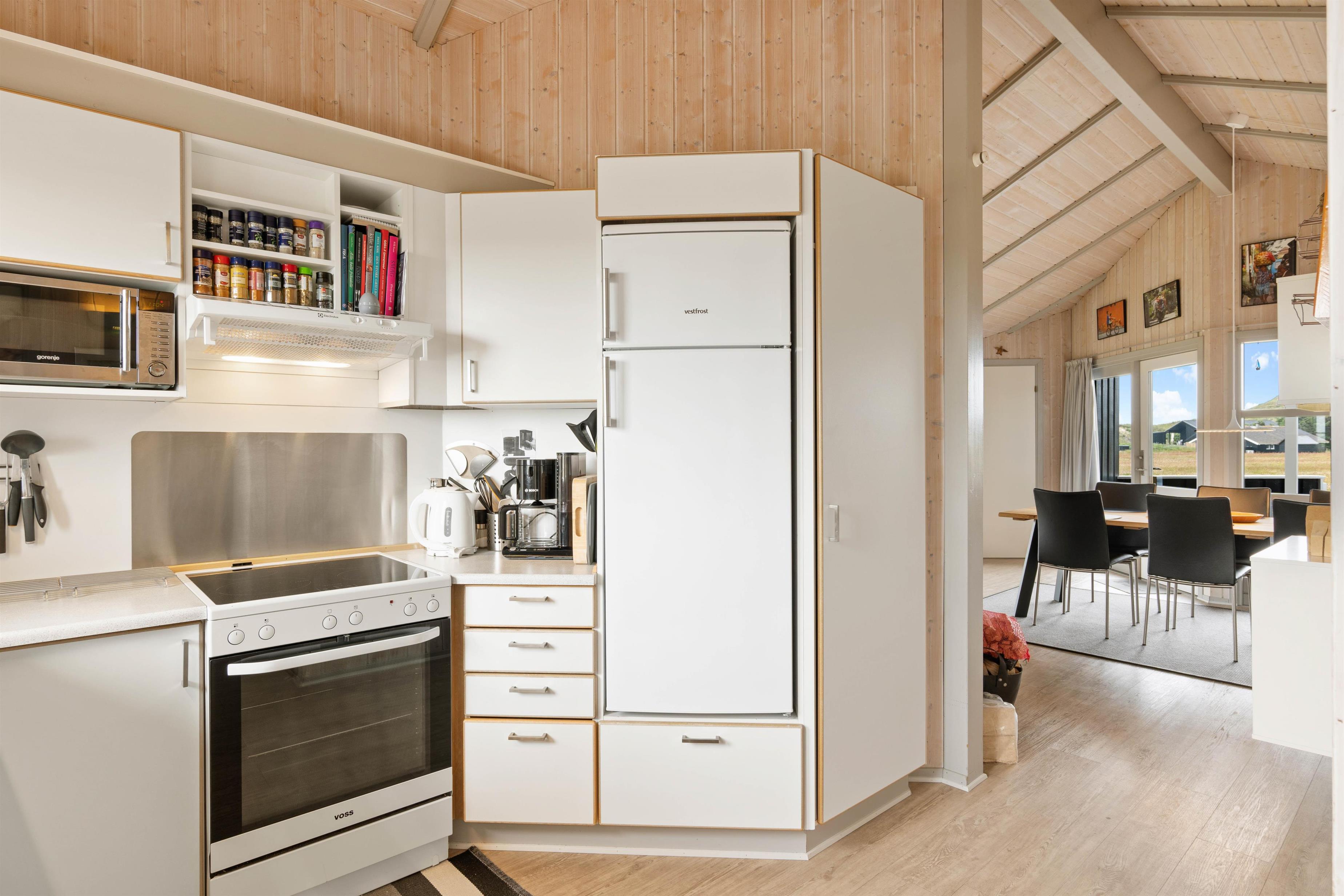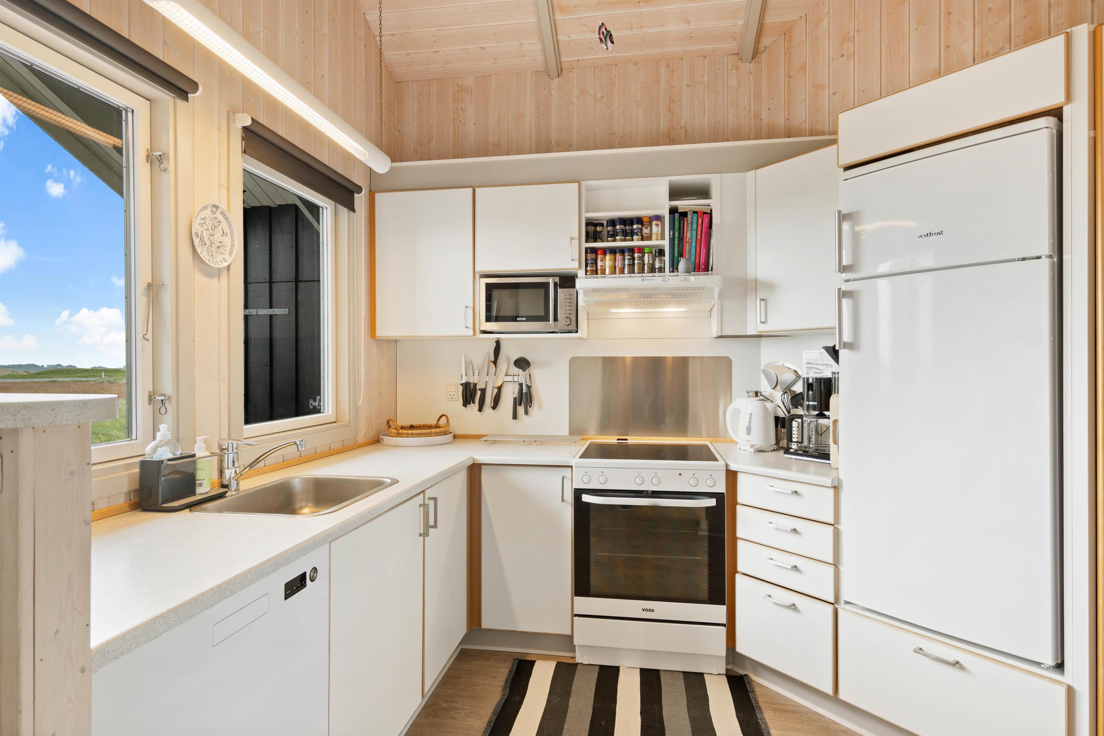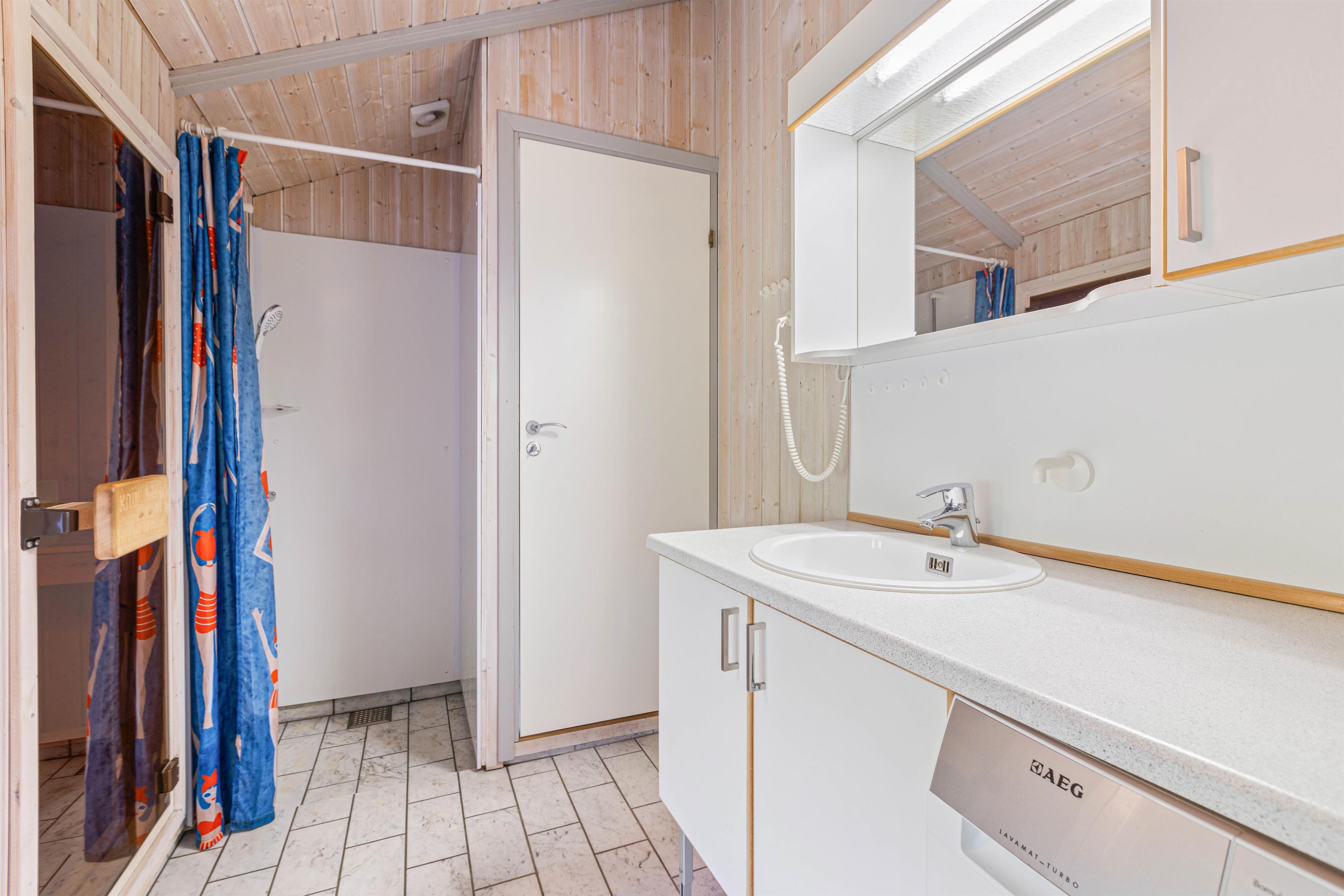 Dette sommerhus har i alt 4 soveværelser, hvor 2 af værelserne hver har en dobbeltseng og de sidste 2 værelser har hver en enkelt seng. Der er et stort badeværelse, der er gulvvarme, en hjørnespa, sauna og en bruseniche. Derudover er der et gæstetoilet. Køkkenet er udstyret med en mikroovn, en fryser på 30 L og en opvaskemaskine.