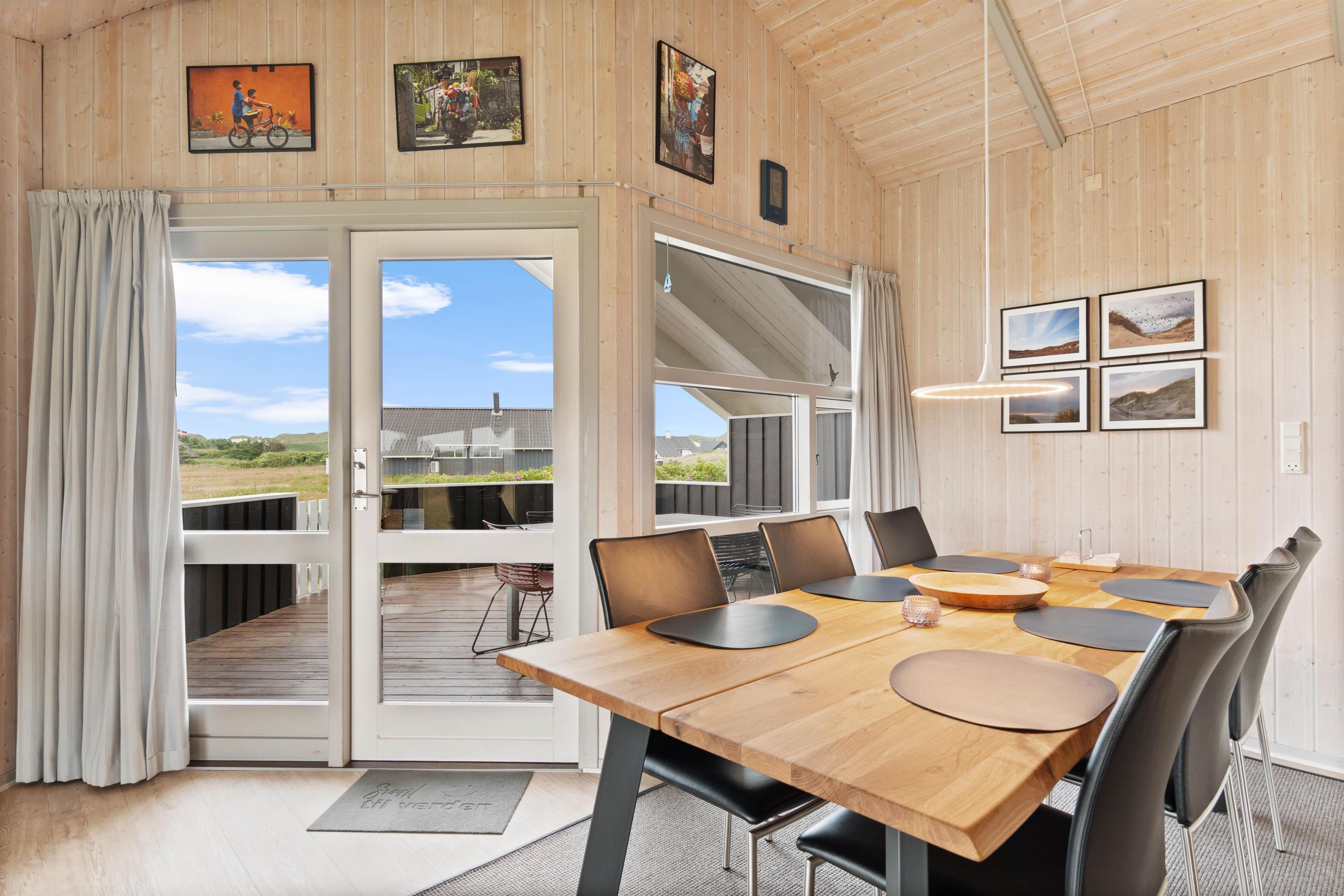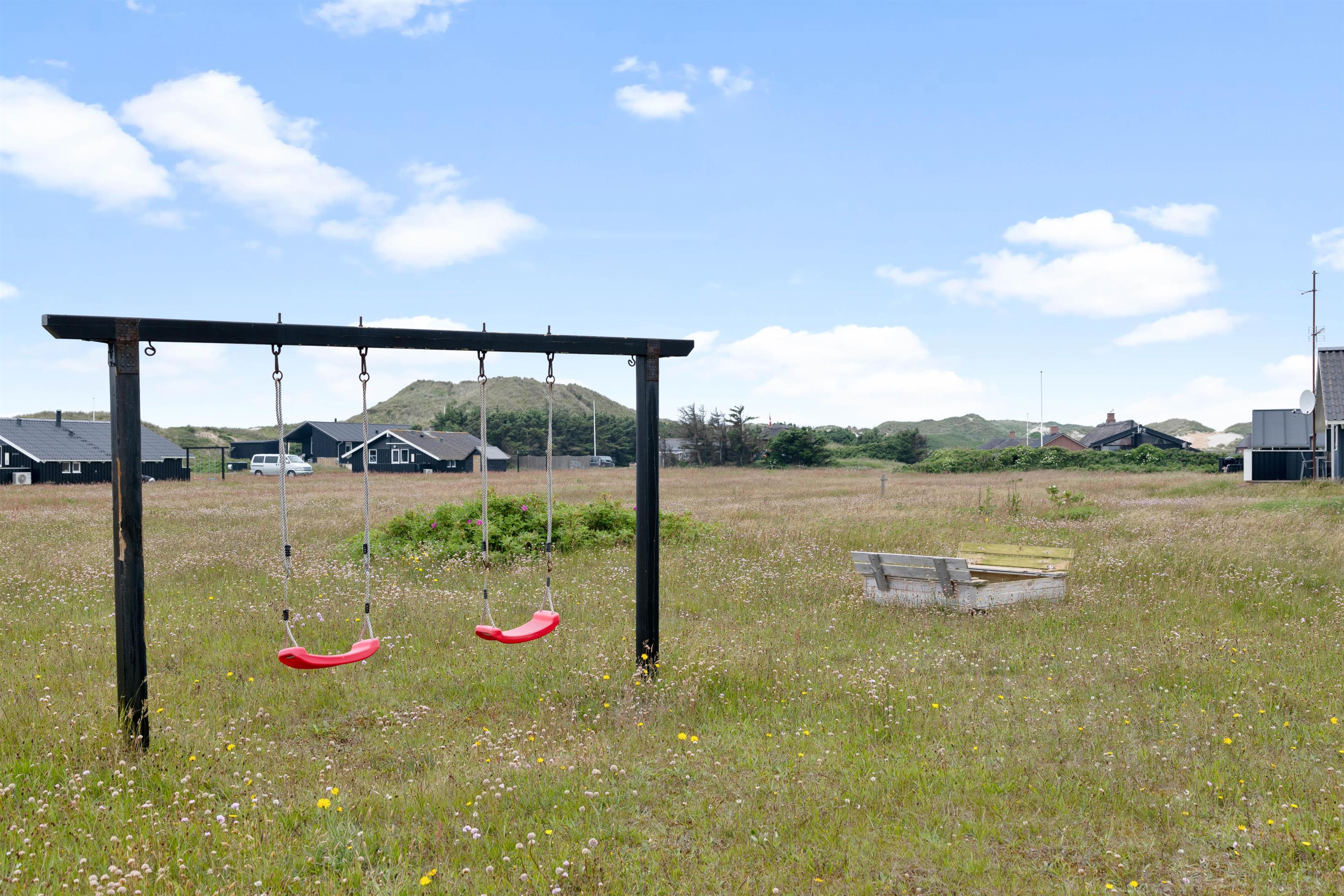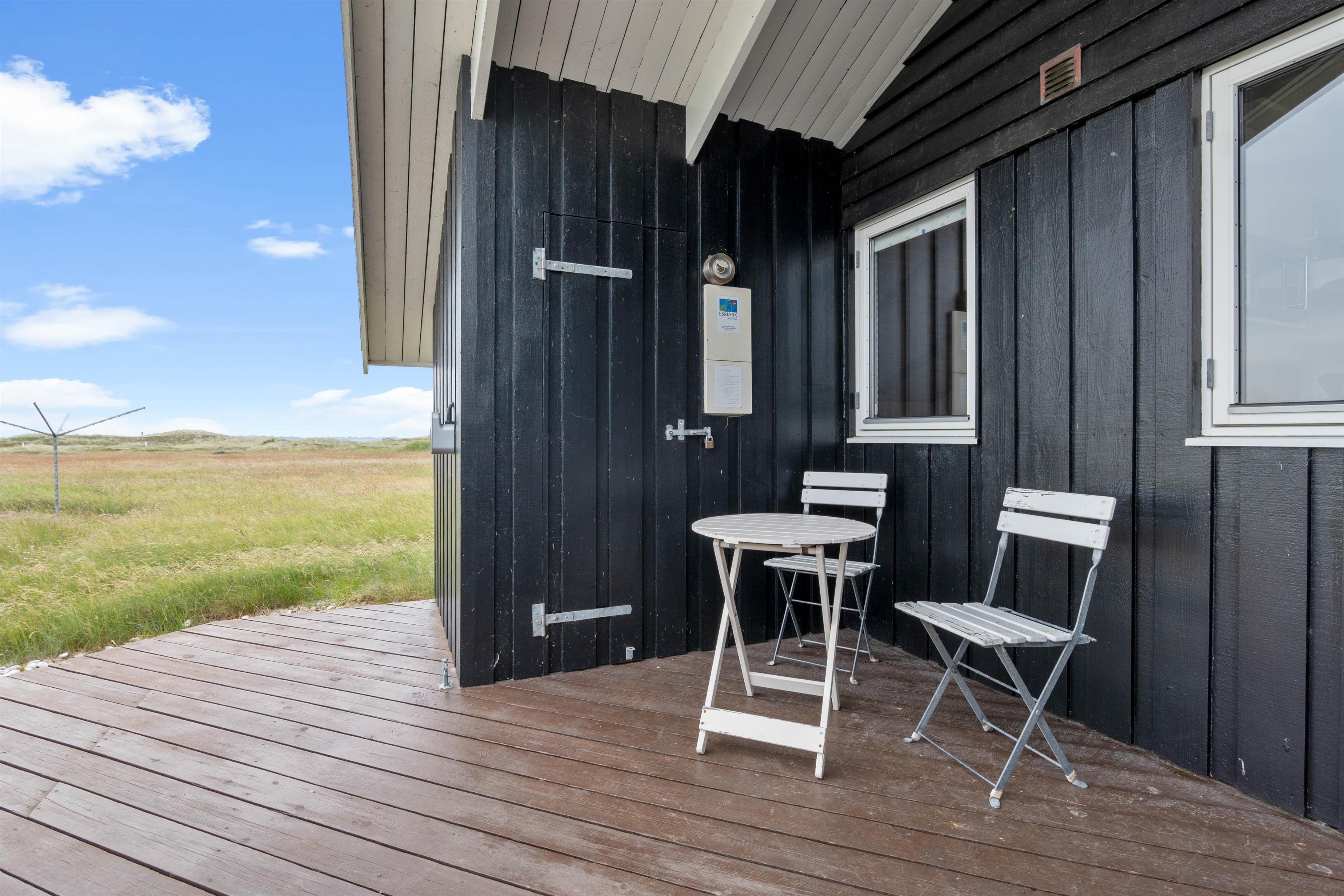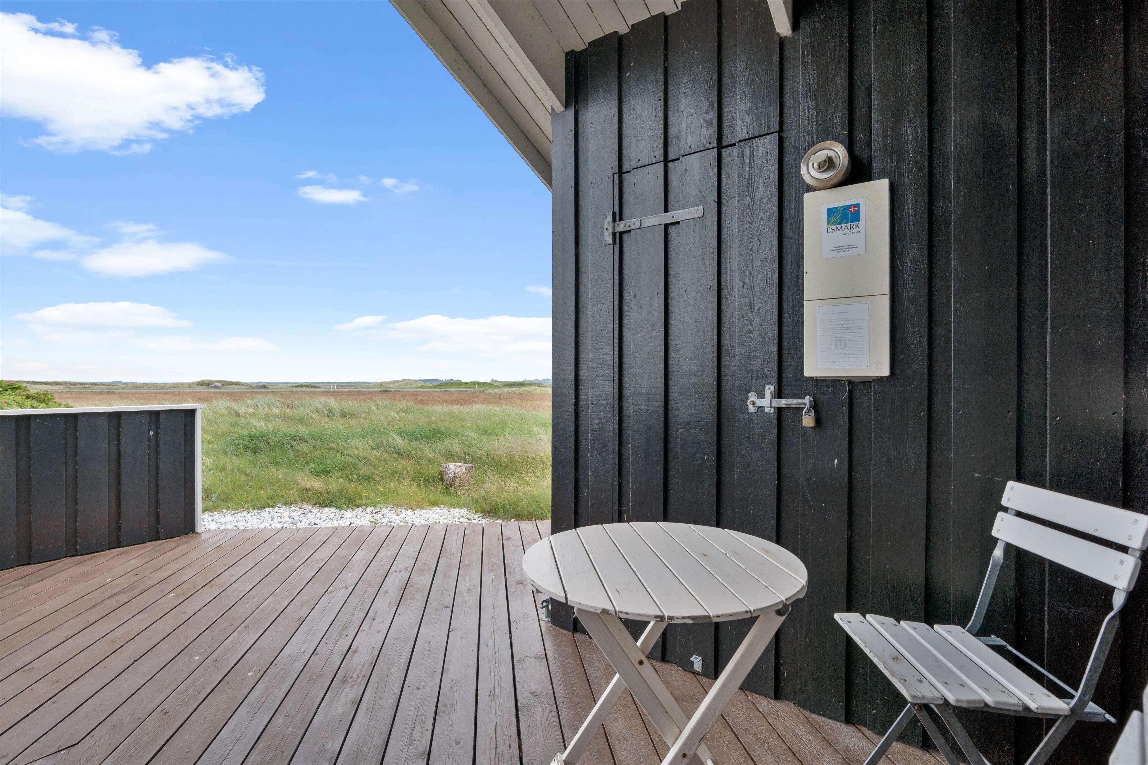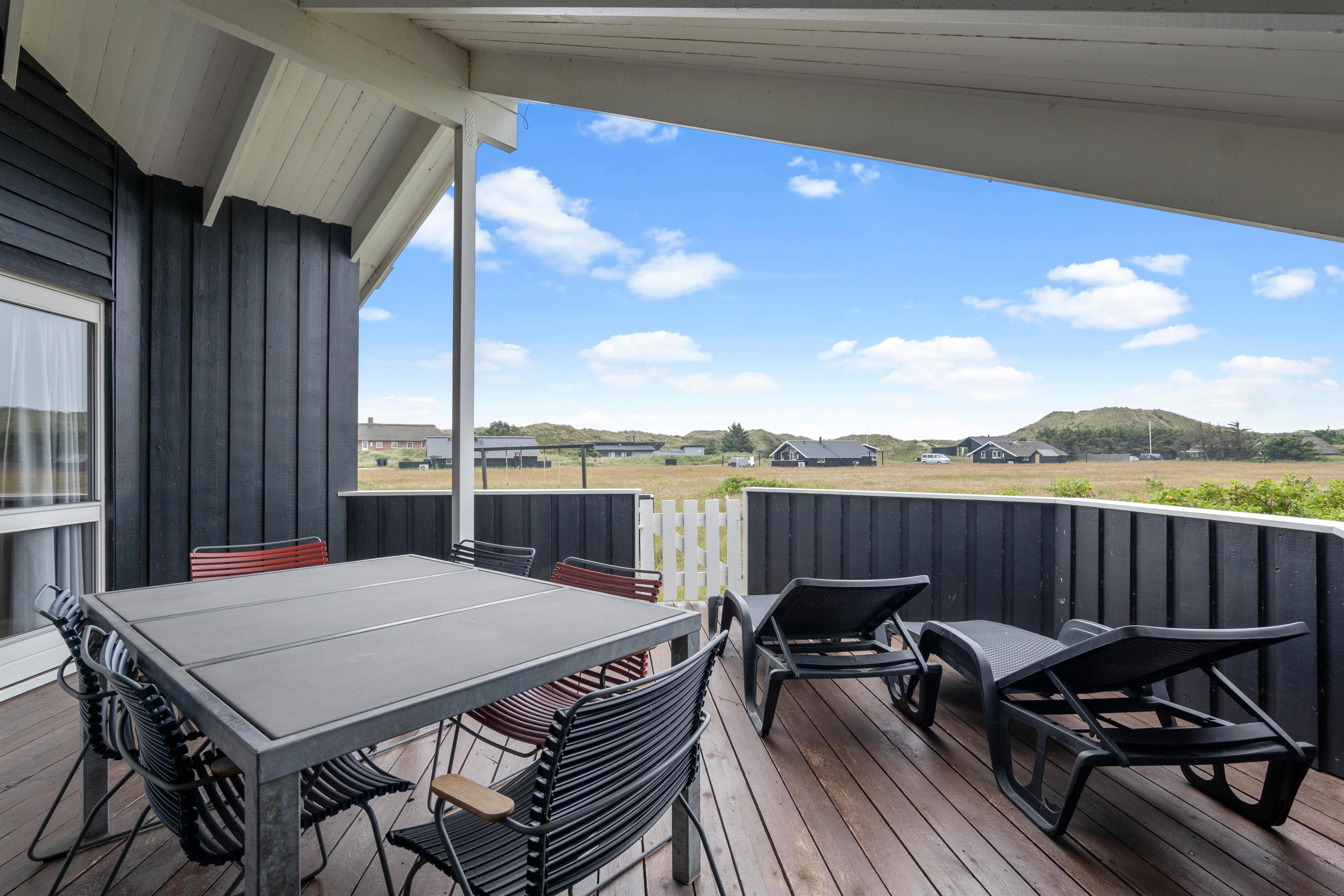 Gode terrasser er altid skønne, og dette hus har 2 af dem. Den sydvest vendte er lukket og delvist overdækket, og herfra er der en skøn udsigt over det smukke klitlandskab, og brusen og duften fra Vesterhavet er ubeskrivelig. Mod nordøst er der en skøn morgen terrasse. På naturgrunden er der en gynge og en sandkasse til de små, hvilket er garant for at skabe mange timers sjov og leg.