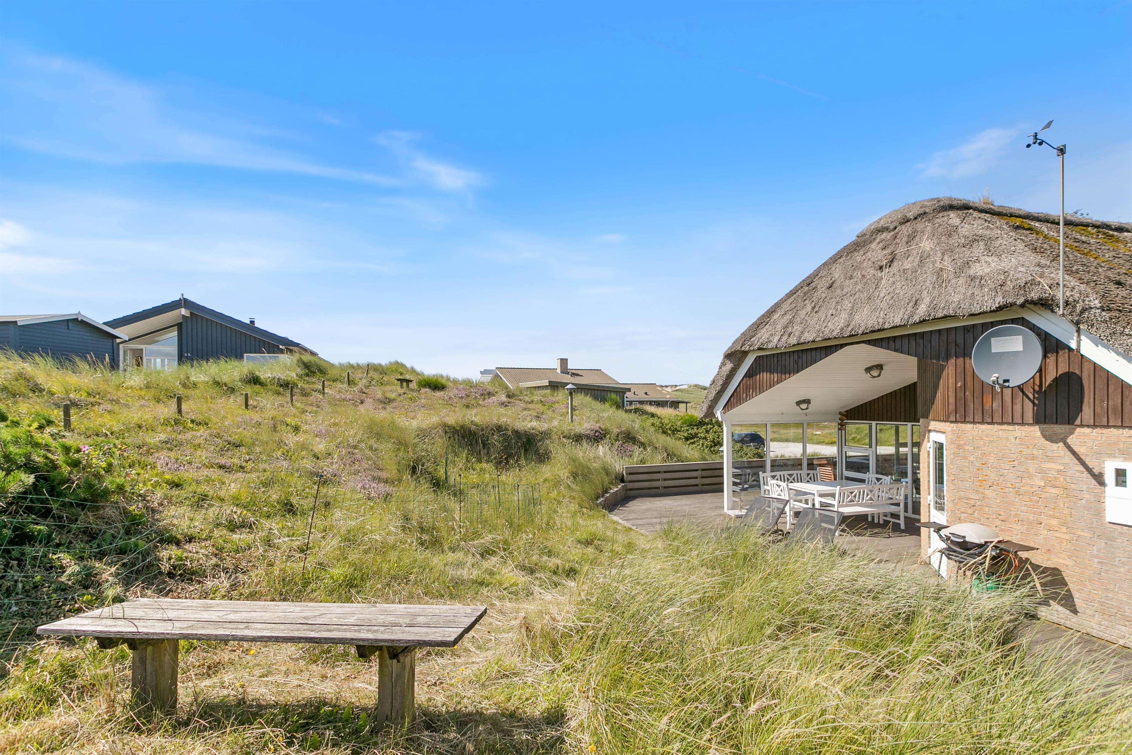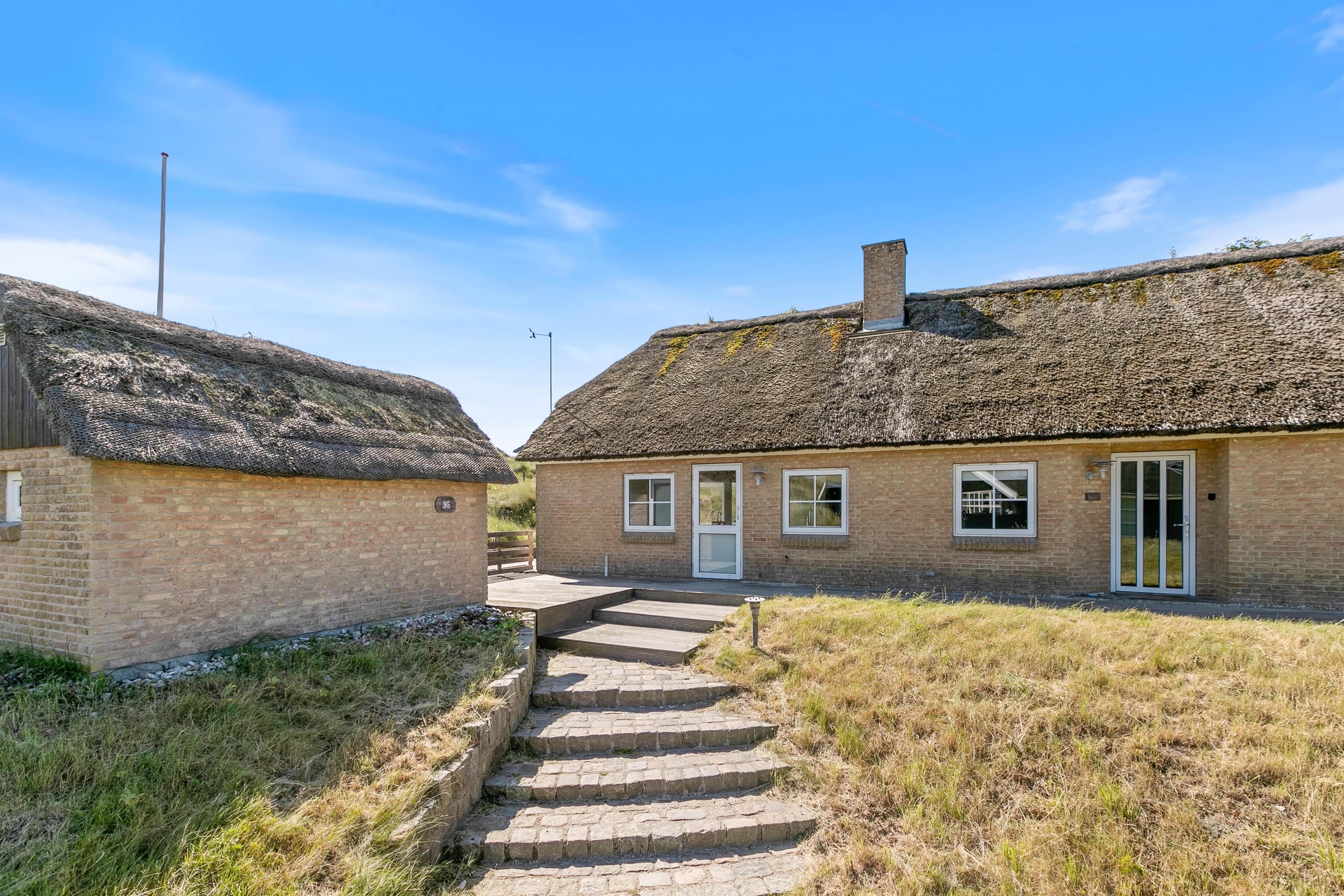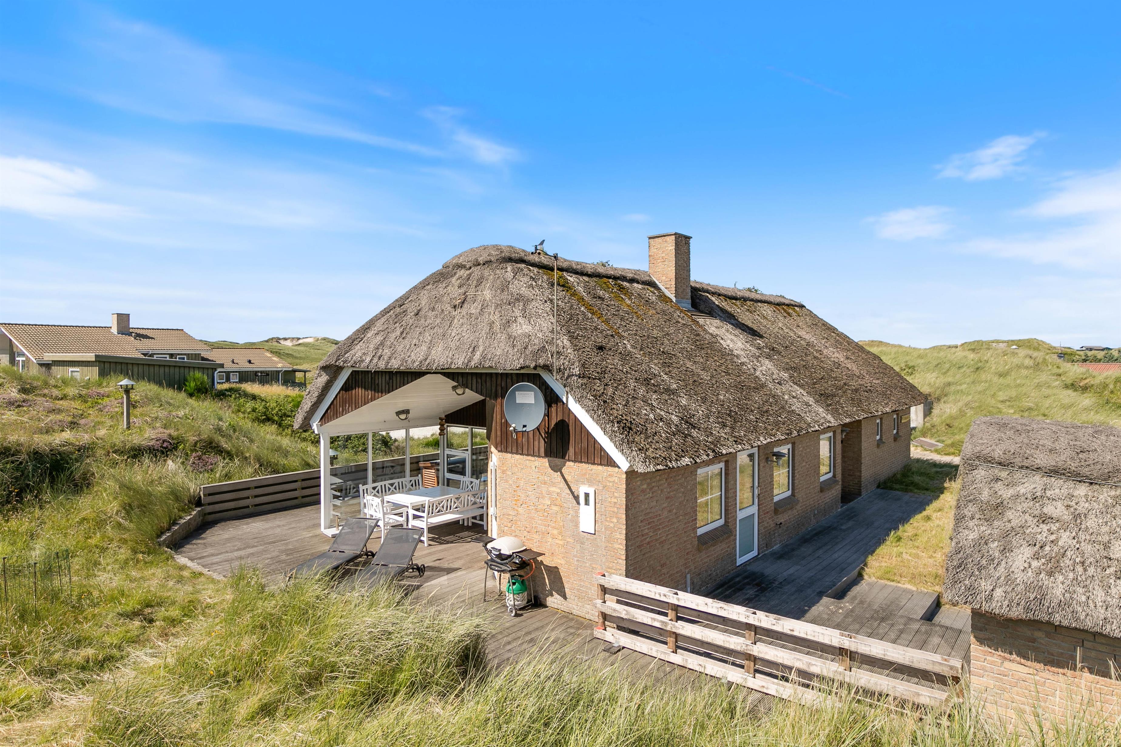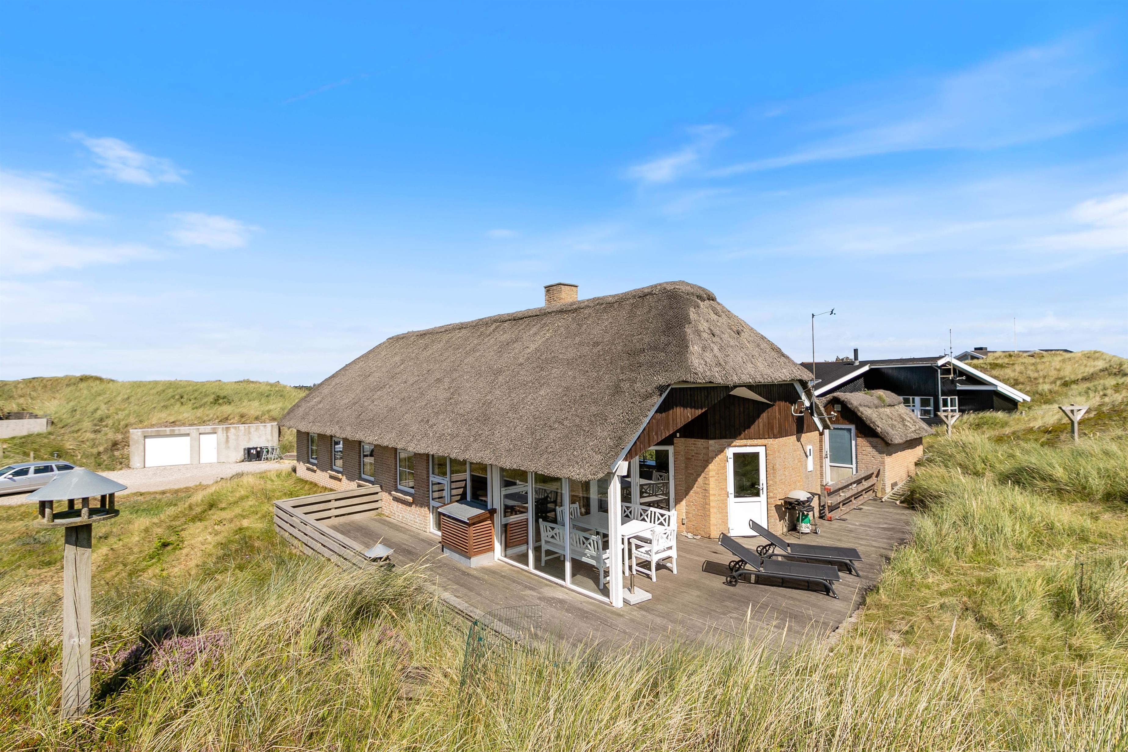 Klar til jeres ferie, højtbeliggende i et smukt lyng- og klitlandskab ligger dette dejlige stråtækte feriehus. Med en fantastisk beliggenhed kun 150 meter fra stranden og Vesterhavet er Klitdalen 95 det perfekte sted til både bade- og afslapningsferie med gåture og wellness i husets spa og sauna. Sommerhuset på Klitdalen 95 rummer plads til seks personer og en hund. Kort sagt, det helt oplagte valg til den den lille familie eller venneparret der ønsker at holde en uforglemmelg ferie ved Vestkysten.