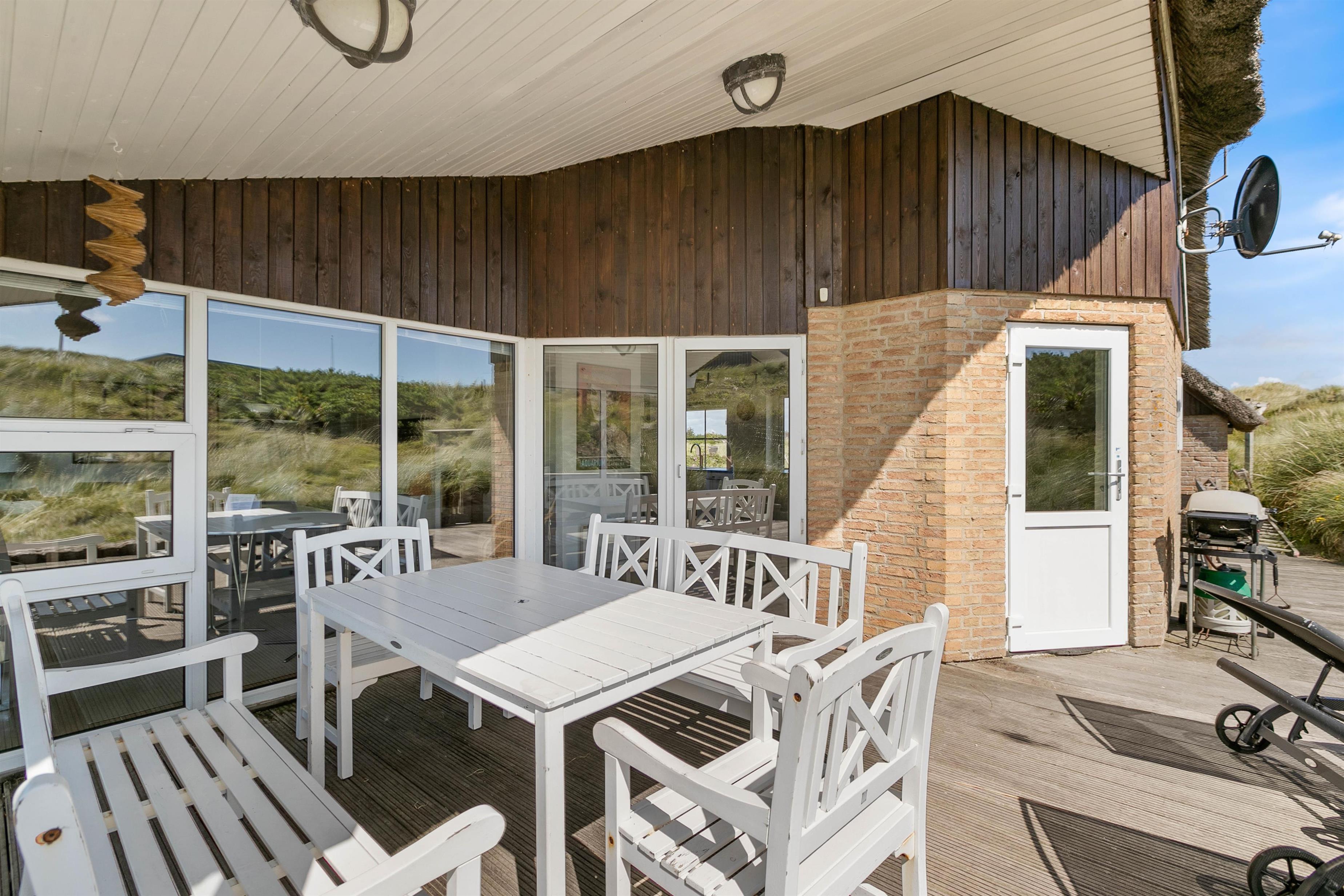 Køkken/alrummet har gode spisestuemøbler og direkte adgang til den store lækre overdækkede terrasse, hvor udsigten og solen kan nydes ganske ugeneret.
