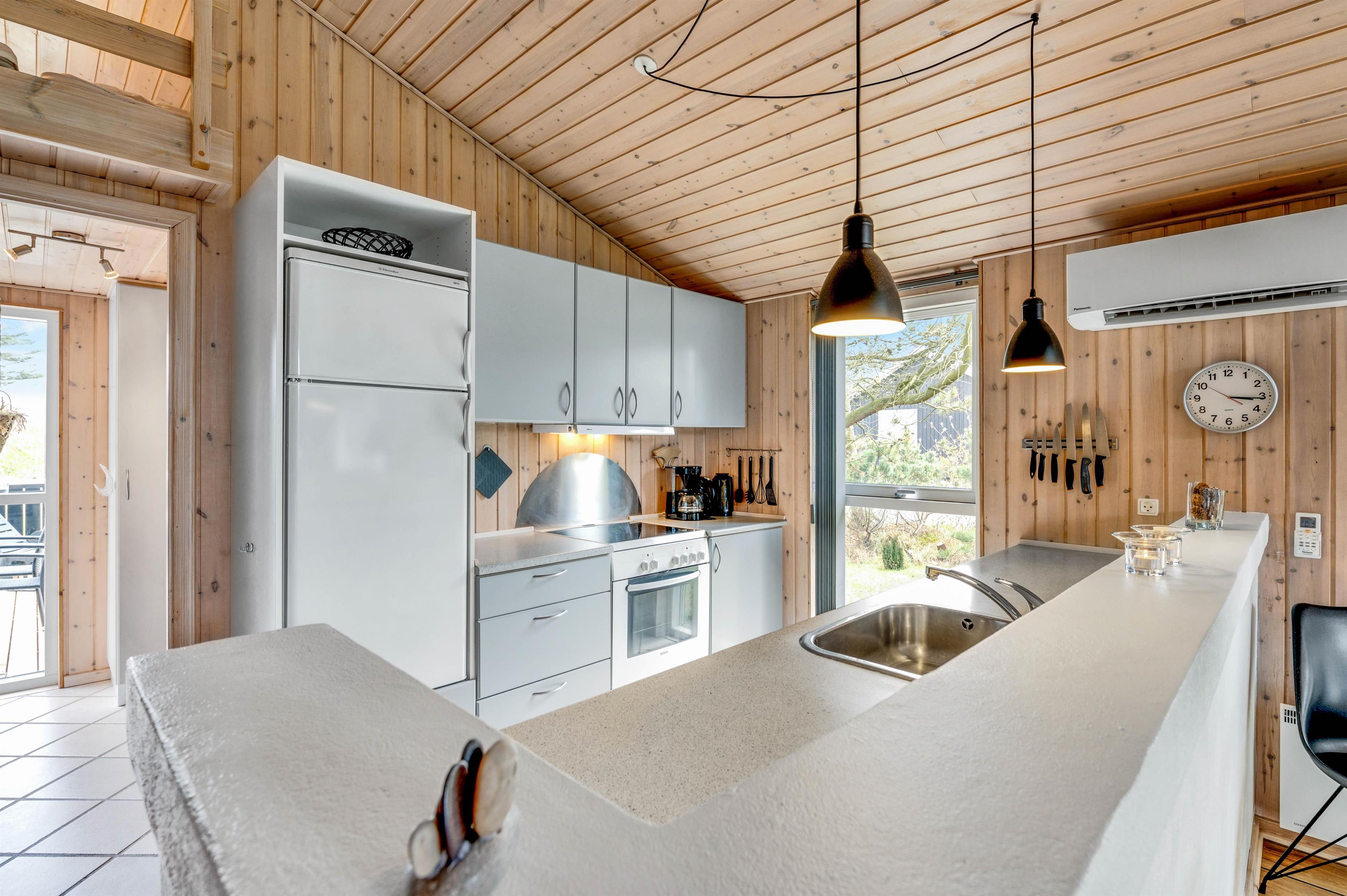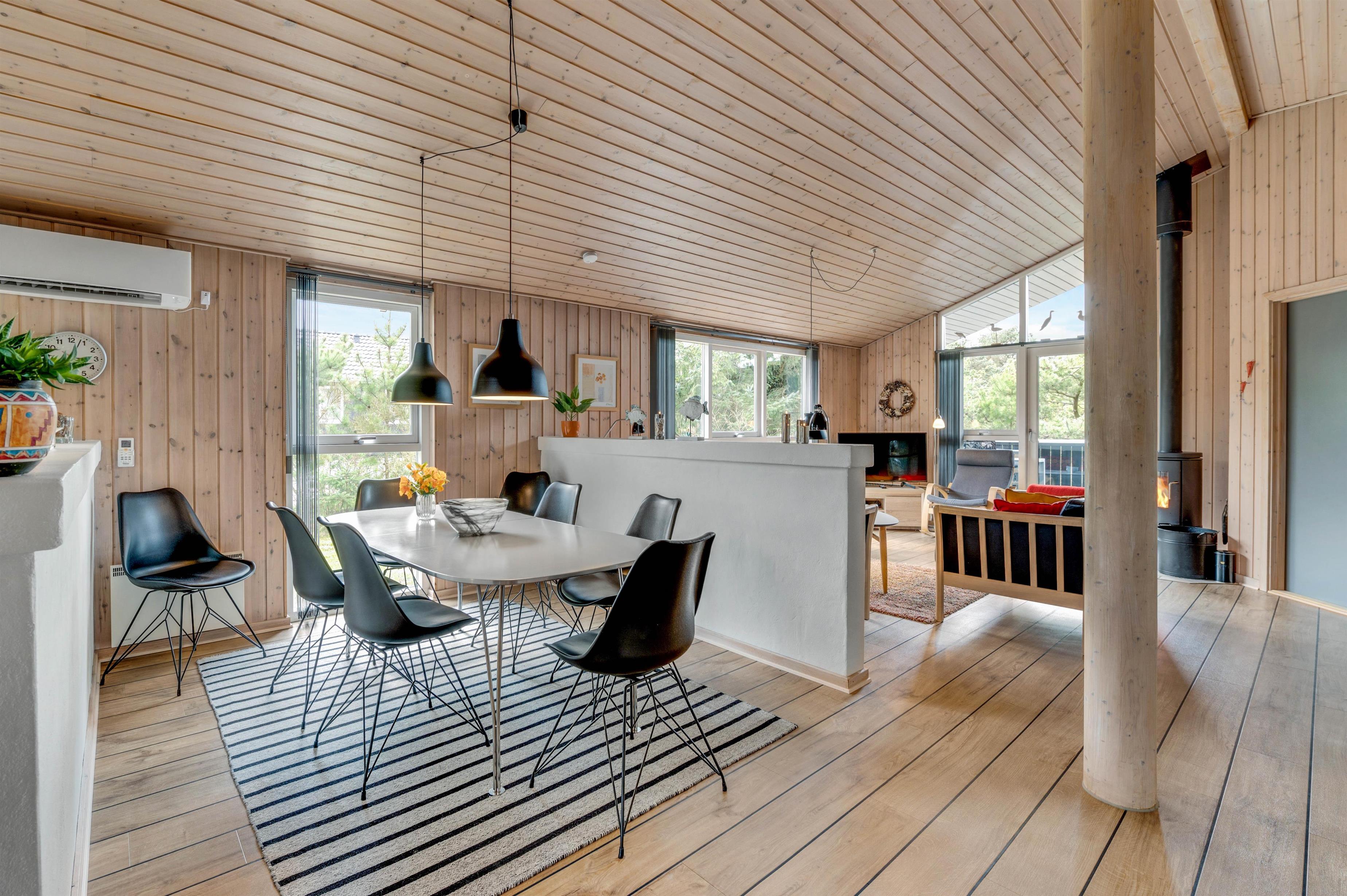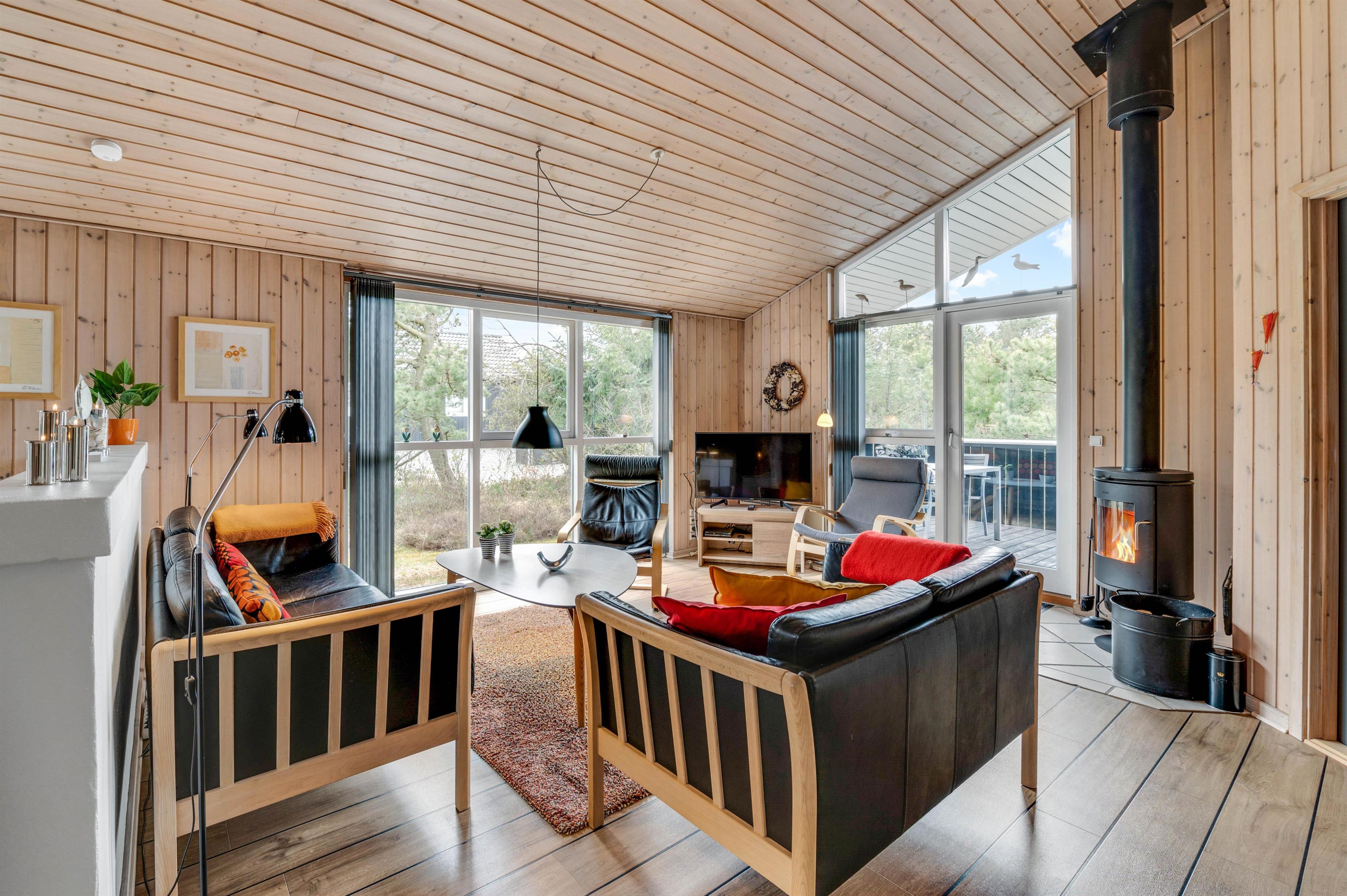 Brændovnen der både kan nydes fra stuen og køkkenet, sørger for en dejlig varme og hyggelig atmosfære i huset. Så hvorfor ikke sætte sig godt tilrette efter en dejlig dag ved Vesterhavet og nyde en god bog eller et spil med børnene mens brændeovnen knitrer? Hvis I kommer til huset med mindre børn, vil de helt sikkert nyde husets hems hvor børn kan lege helt uforstyrret og bygge hule.