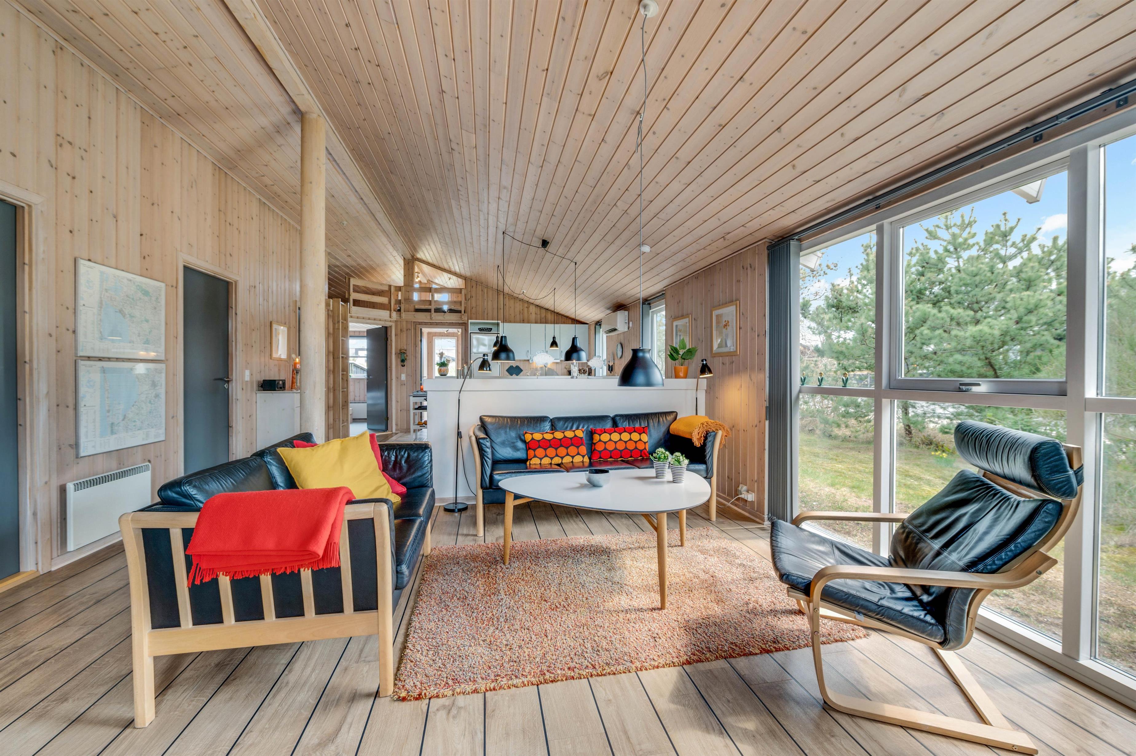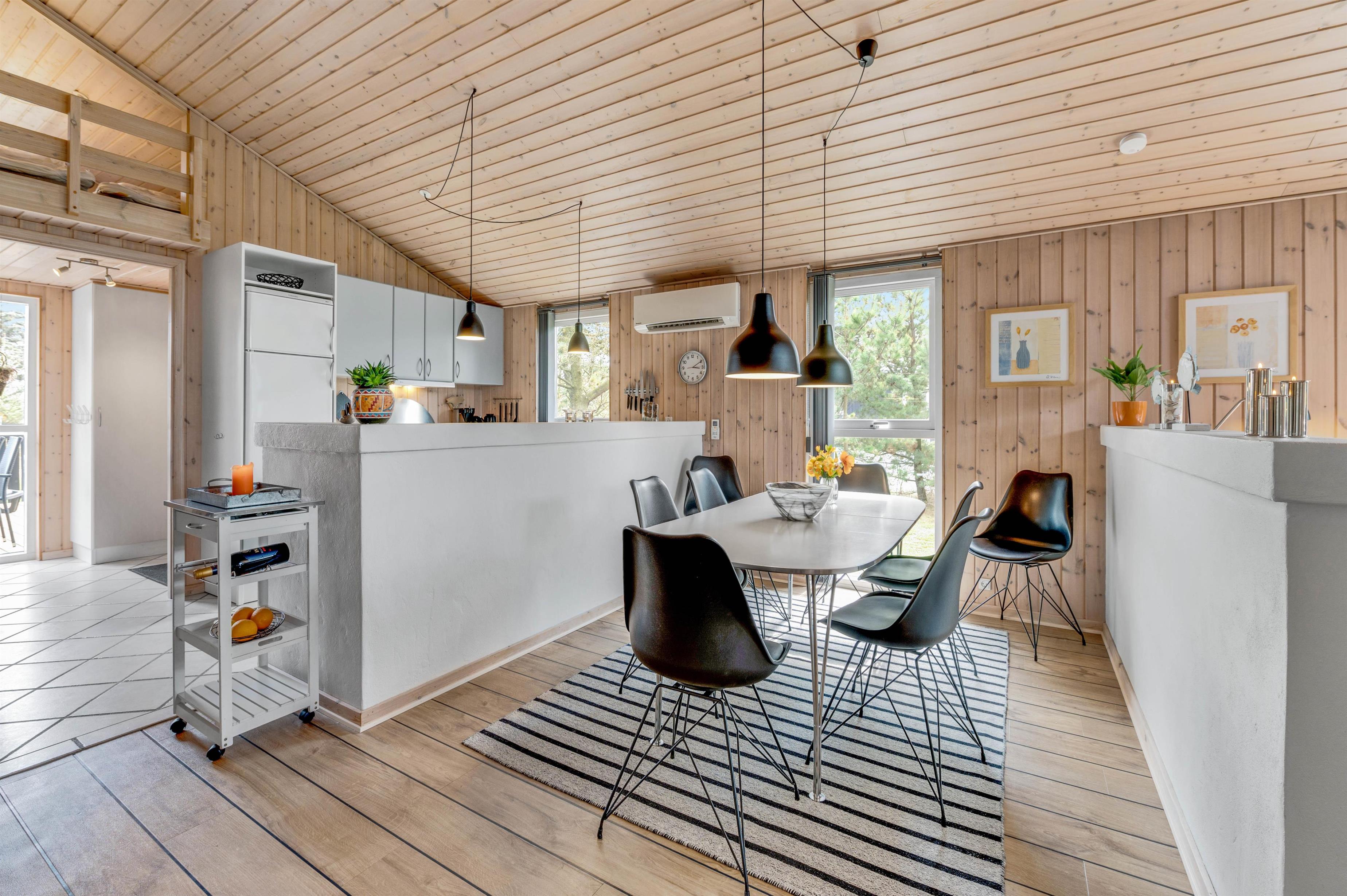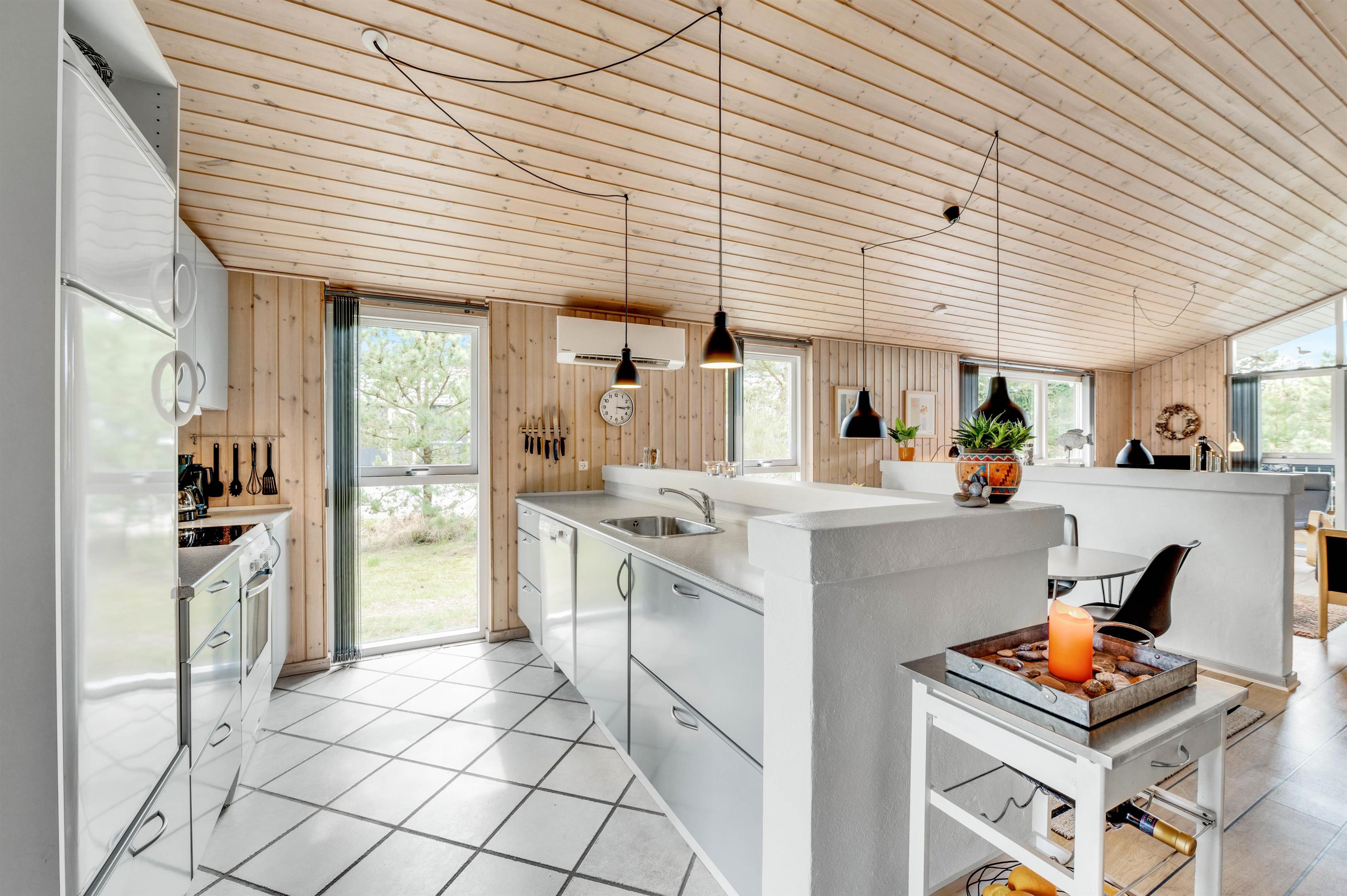 Brændovnen der både kan nydes fra stuen og køkkenet, sørger for en dejlig varme og hyggelig atmosfære i huset. Så hvorfor ikke sætte sig godt tilrette efter en dejlig dag ved Vesterhavet og nyde en god bog eller et spil med børnene mens brændeovnen knitrer? Hvis I kommer til huset med mindre børn, vil de helt sikkert nyde husets hems hvor børn kan lege helt uforstyrret og bygge hule.