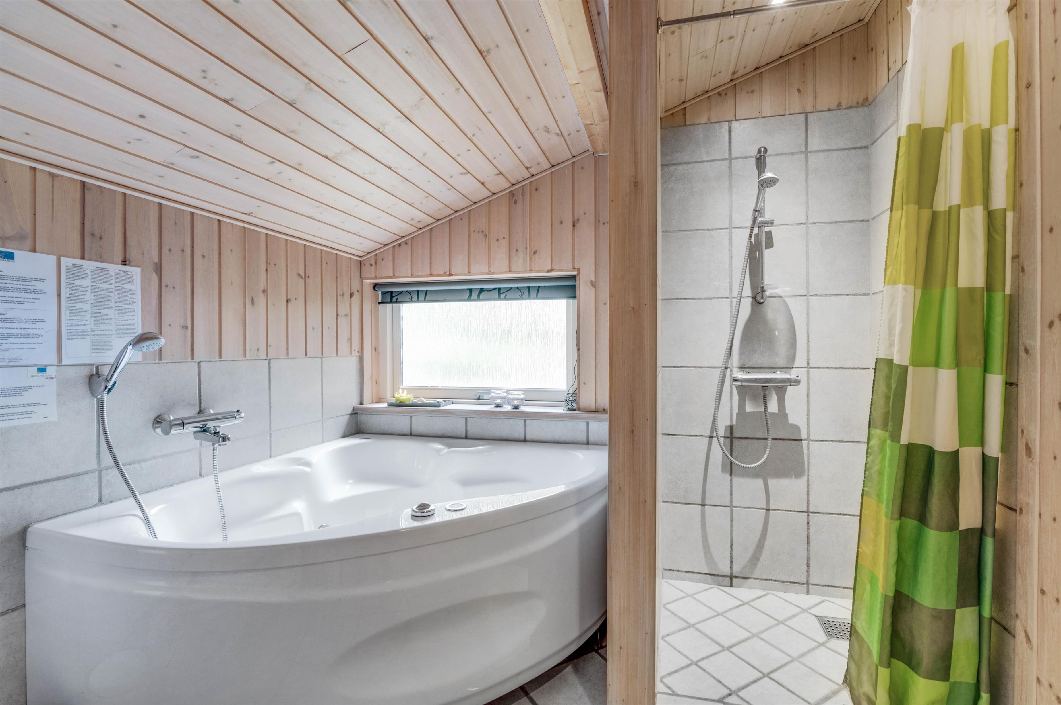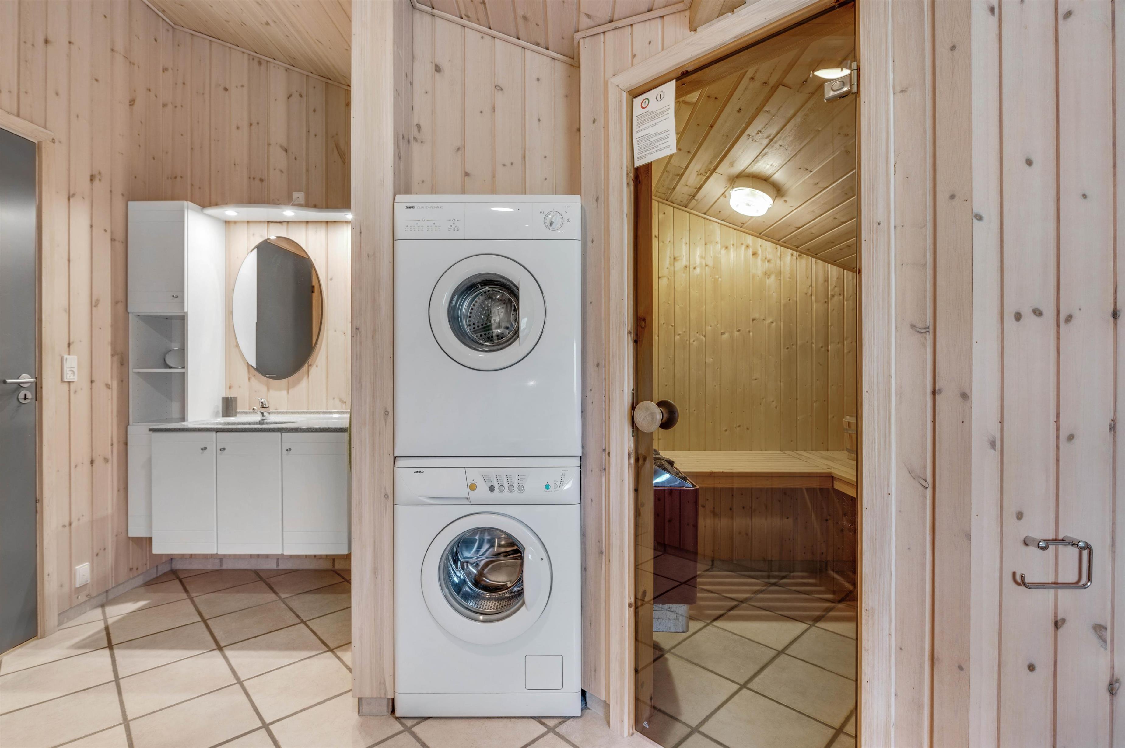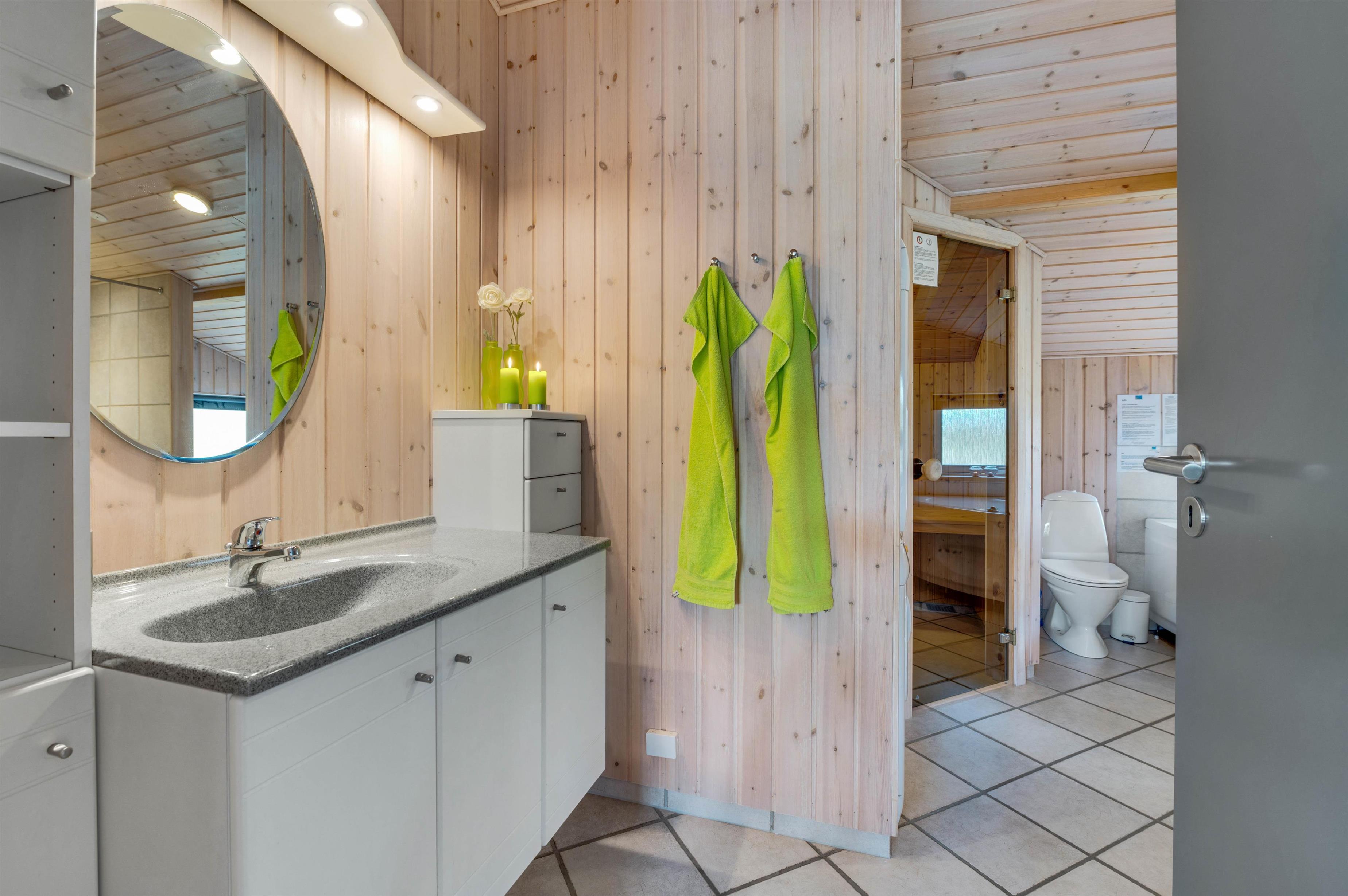 Sommerhusets ene badeværelse huser også over en dejlig lille wellnessafdeling med spabad og sauna, hvor der kan tilbringes mange timer med ren afslapning. Derudover er der et gæstetoilet med bruseniche, så her I sommerhuset det er slet ikke noget problem med lange køer til badeværelset.