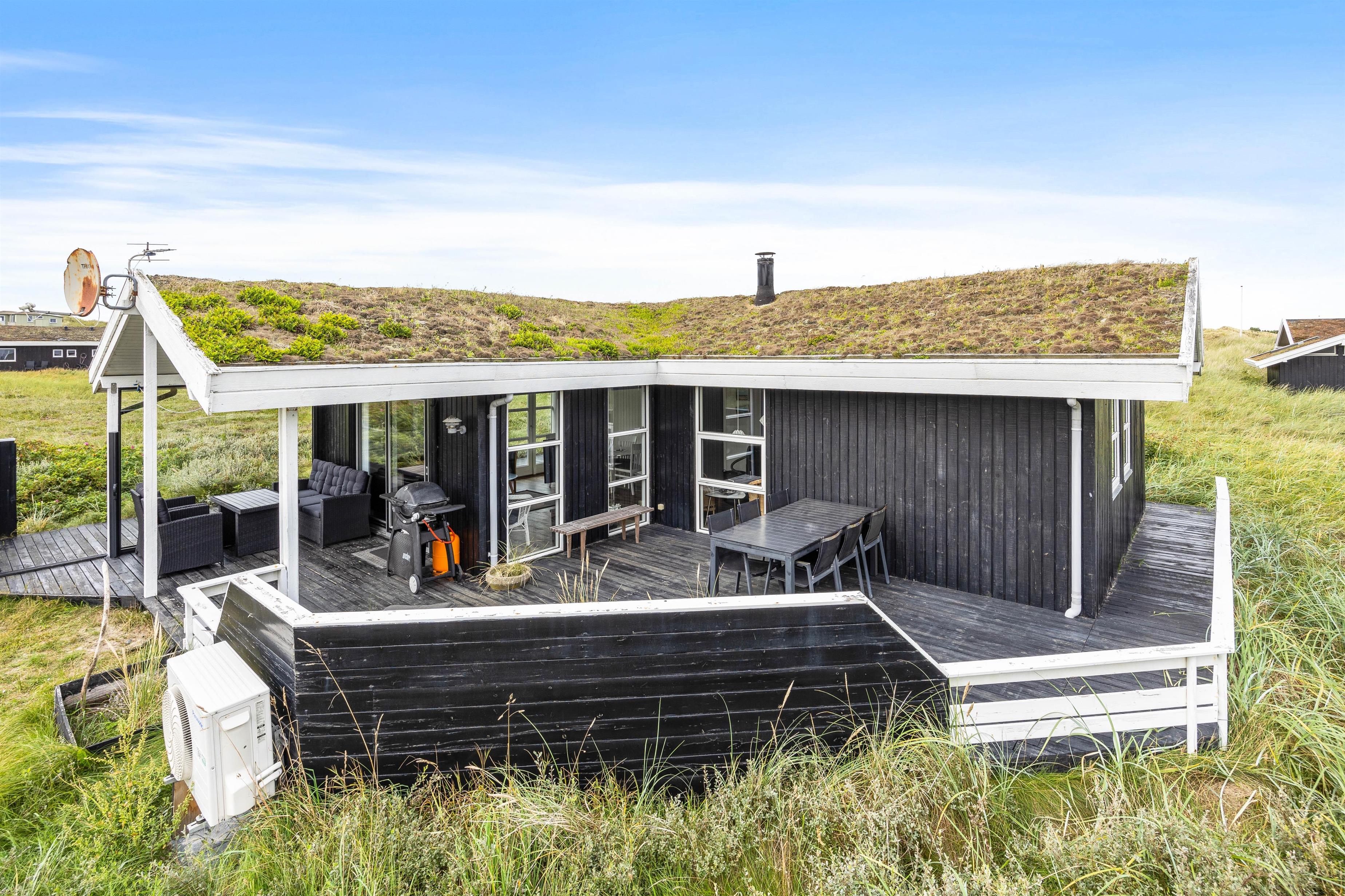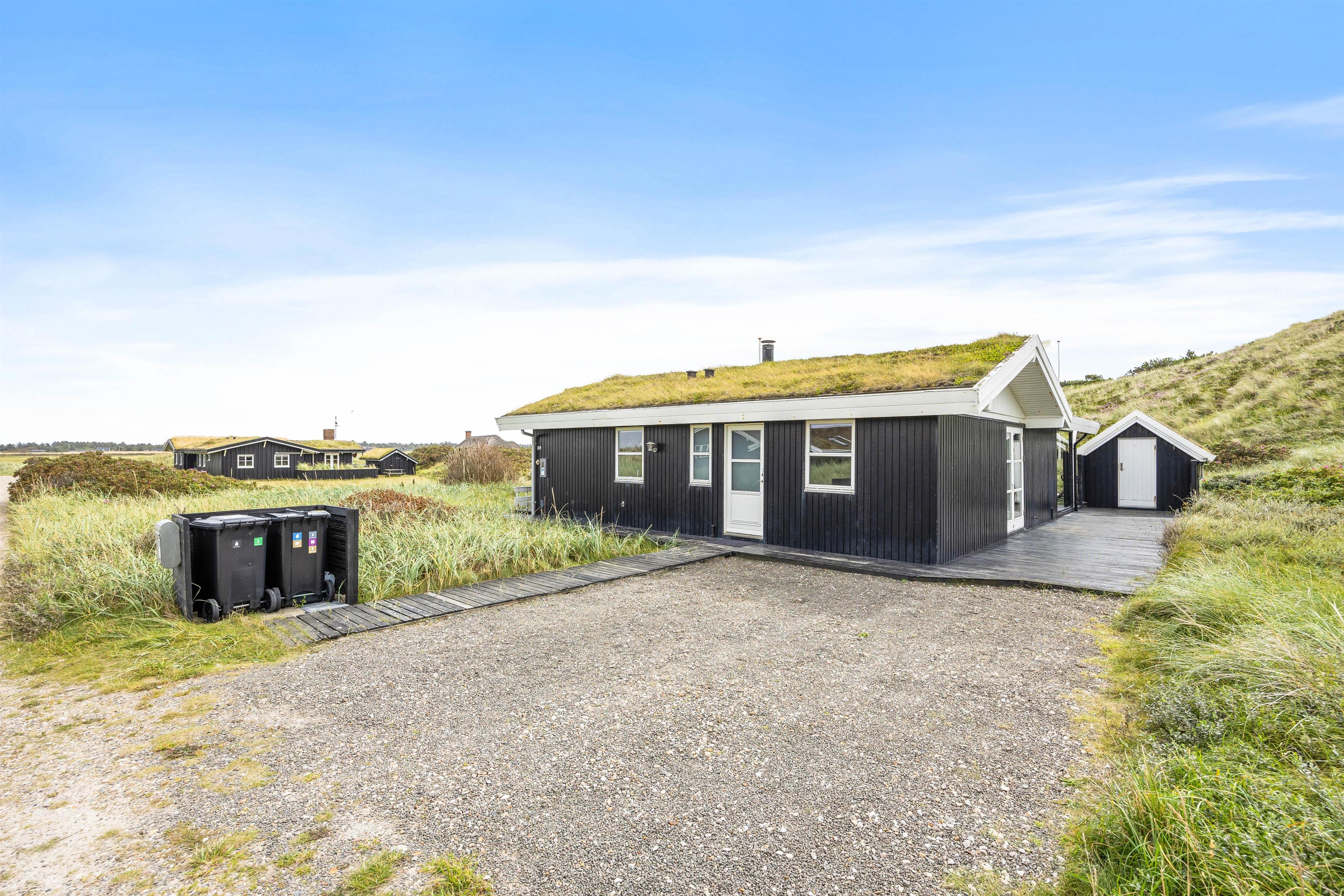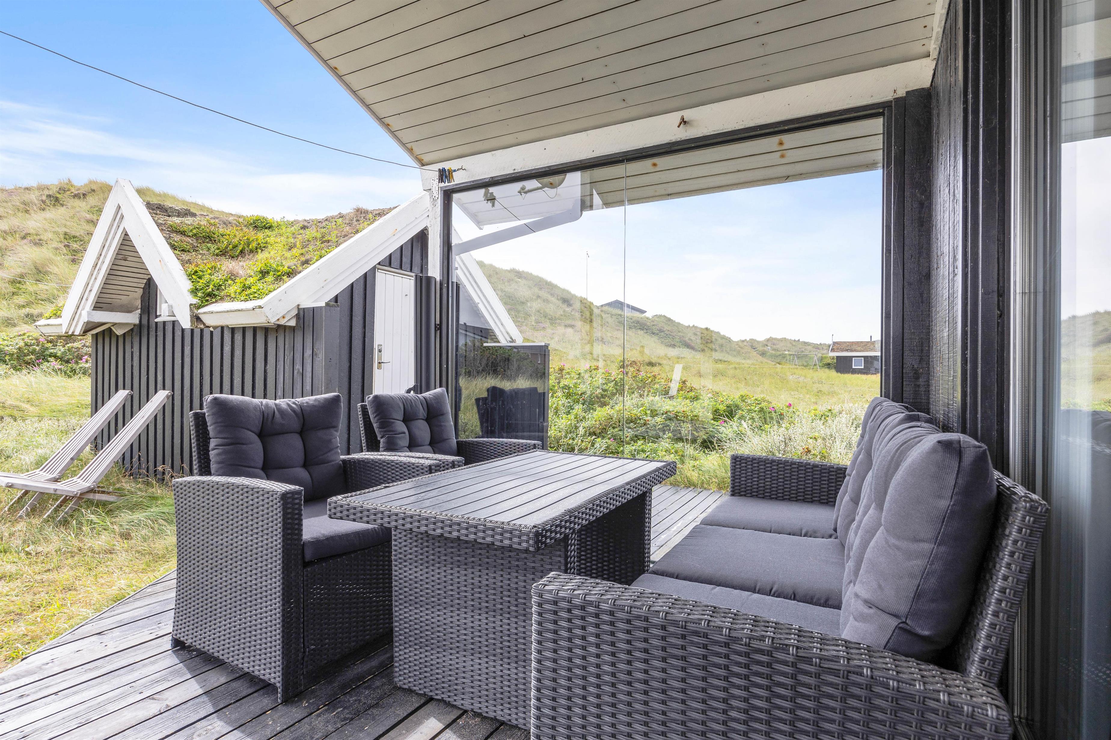 Sommerhuset har gode terrasser, som strækker sig omkring huset fra øst mod syd og mod vest. Terrassen er delvist lukket, delvist afskærmet, og mod syd er den delvist overdækket. Derfor er der gode forudsætninger for, at I kan nyde noget friskt luft. Der er et skur på grunden, som også danner læ på terrassen. Det er således muligt at finde både sol og læ på de fleste dage, så udsigten til klitlandskabet kan nydes.