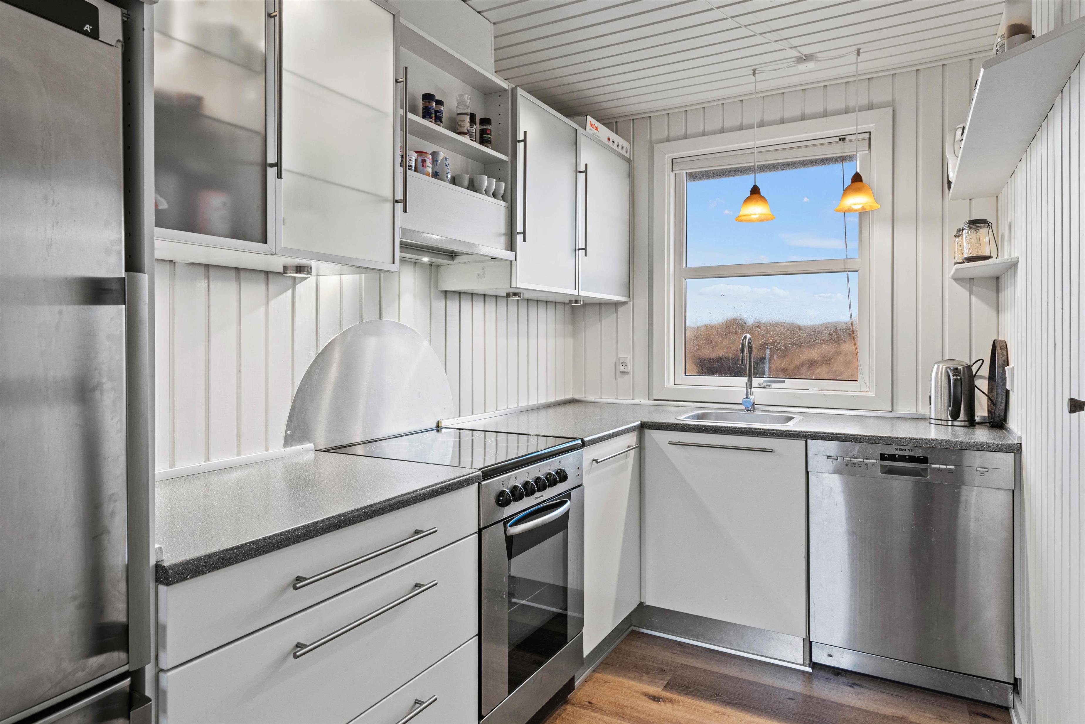 Dette sommerhus er beliggende i det charmerende Houvig ca. 4 km nord for Søndervig. Sommerhuset er velholdt og har 6 sovepladser fordelt på 3 soveværelser. Alle 3 værelserne har hver en dobbeltseng. Køkkenet er udstyret med en fryser på 60 L, en mikroovn og en opvaskemaskine. Stuen er hyggelig indrettet og det helt rigtige sted for afslapning med brændeovn, fladskærms-TV, parabol, DVD-afspiller, radio m/CD-afspiller og gratis trådløst internet. Den smukke udsigt over klitlandskabet fra stuen fuldender sommerhusstemingen.