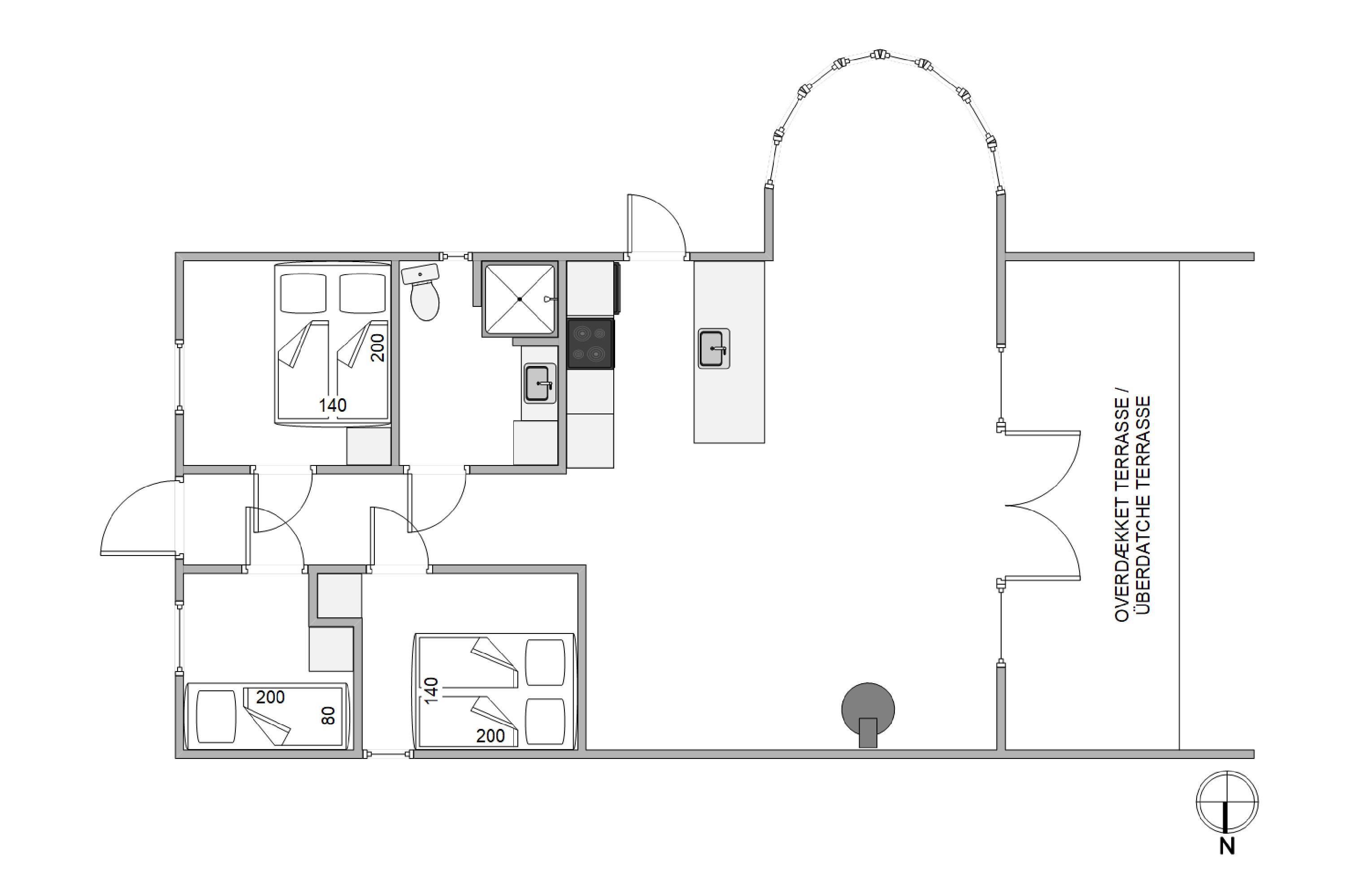 Feriehuset er både hyggeligt og moderne indrettet med stor åben stue og køkken, god spiseplads og udgang fra stuen til den dejlige træterrasse. Huset er lyst og godt indrettet med 3 værelser - hvor 2 er med dobbeltseng og et værelse med enkeltmandssenge - perfekt til familiens børn. Derudover har feriehuset et dejligt badeværelse med gulvarme.